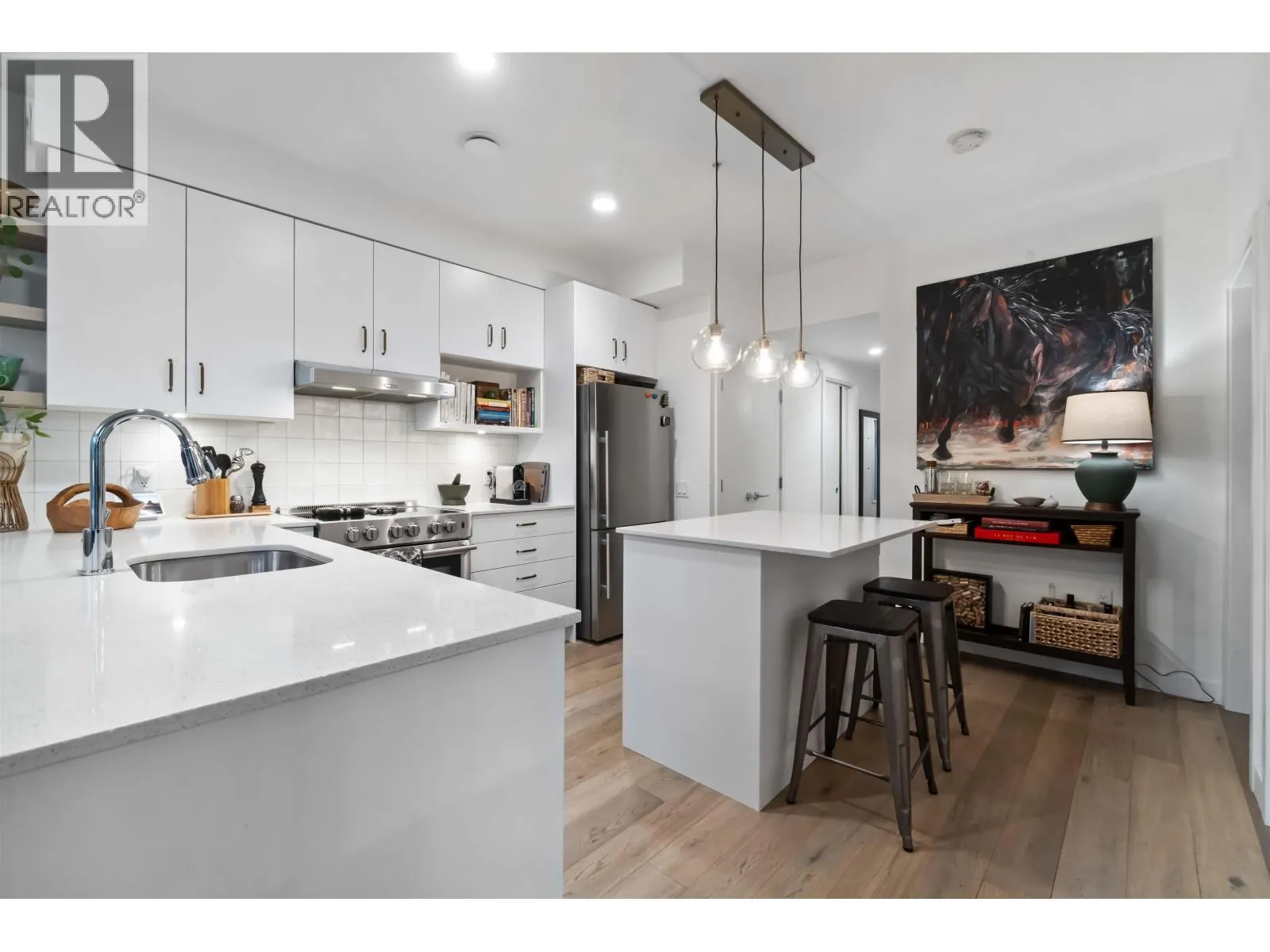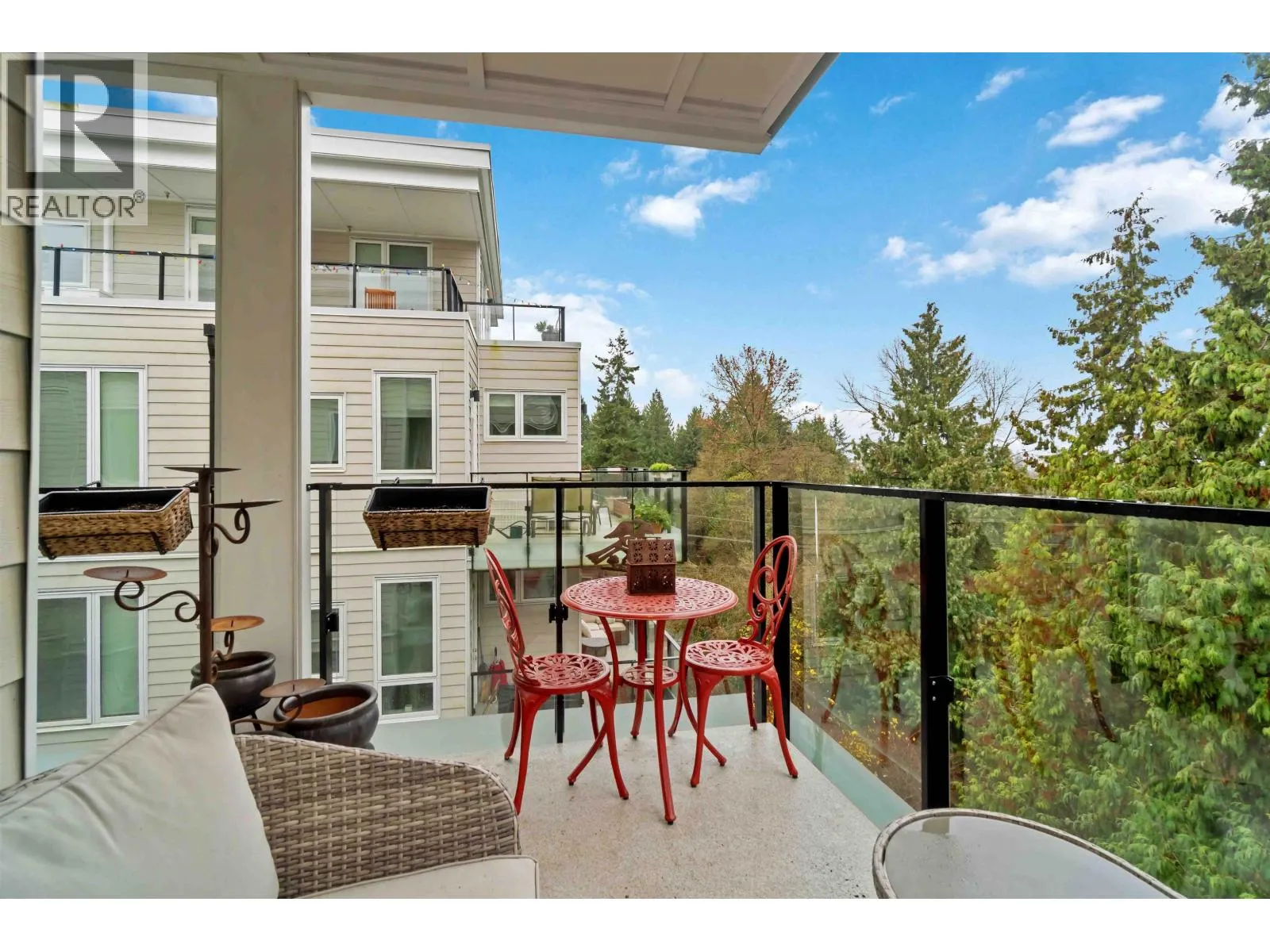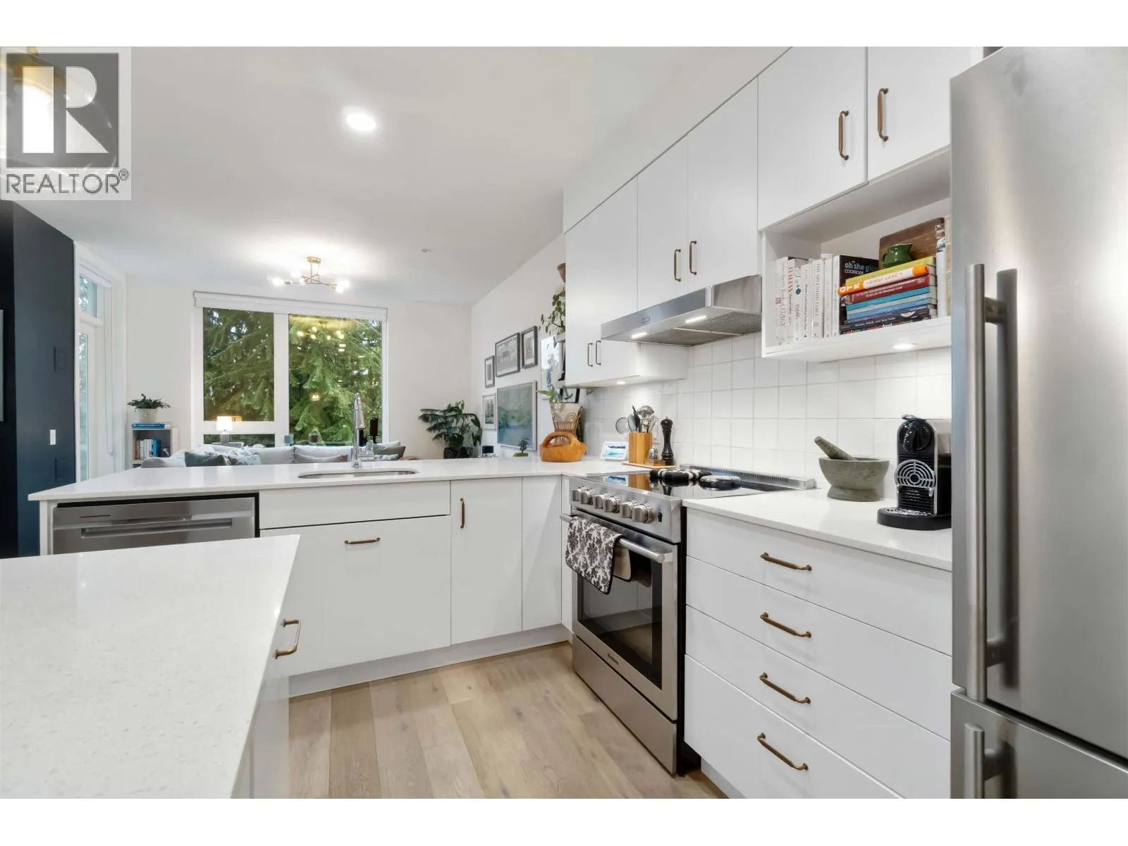 Community-focused living at Driftwood Village in central Lonsdale. This upper corner unit on quiet side of building has 2 bedrooms and 1 bath, with a balcony overlooking Wagg Creek Park. Peaceful forest views, a babbling brook and glimpses of Lions gate bridge. Stone countertops, stainless steel appliances with induction range, in floor heating, triple glazed windows and in- suite laundry HOOKUPS as well as shared laundry option. EV charging options. Enjoy shared amenities like a rooftop deck, amenities room, playroom for kids, bike room & workshop, community kitchen and community garden. Partial 2-5-10 Warranty. This unit is also level 2 wheelchair assessable. Includes 1 parking and 1 locker OPEN HOUSE SAT April 4th, 2026 2:00-3:30 (id:27476)