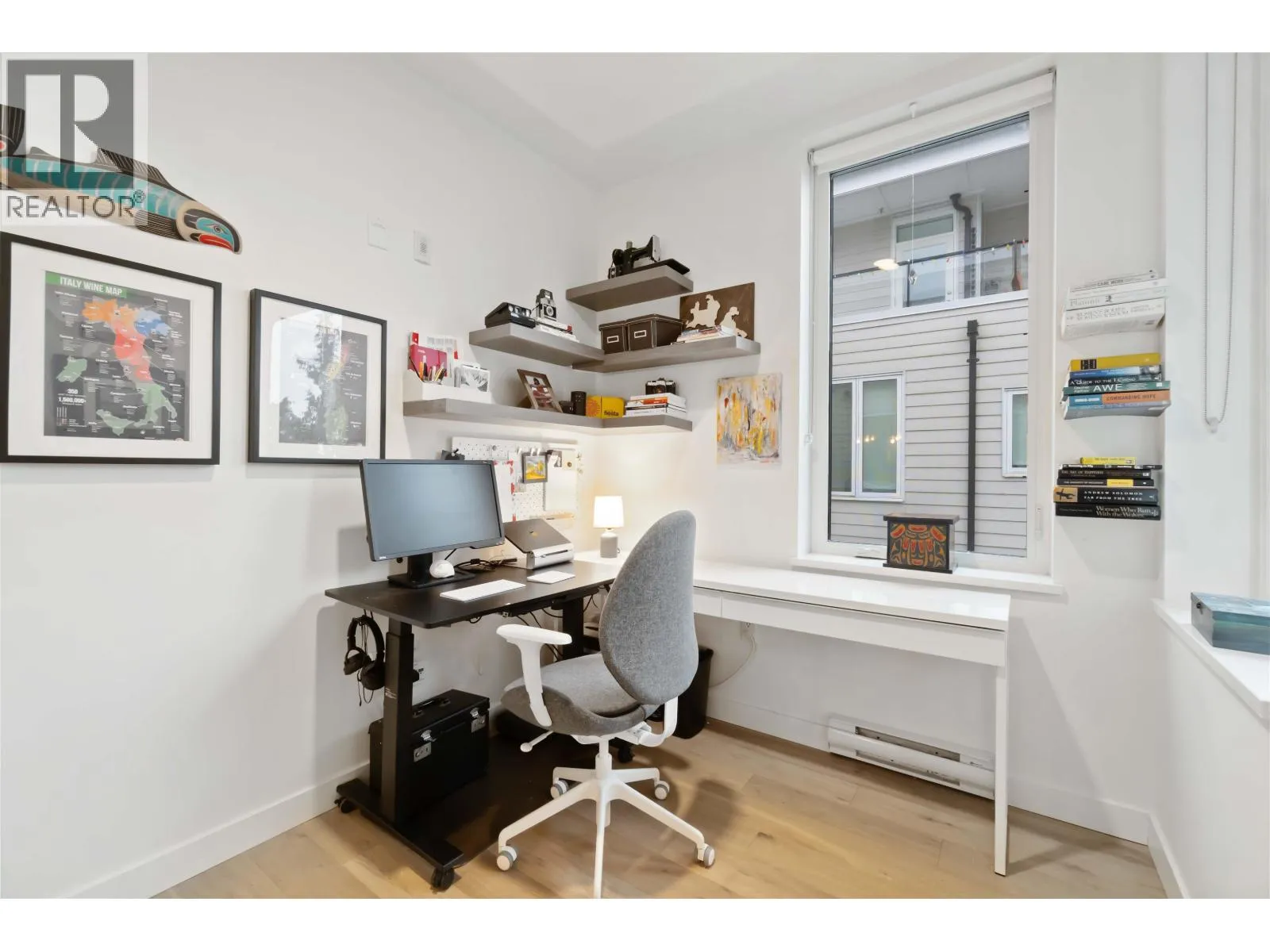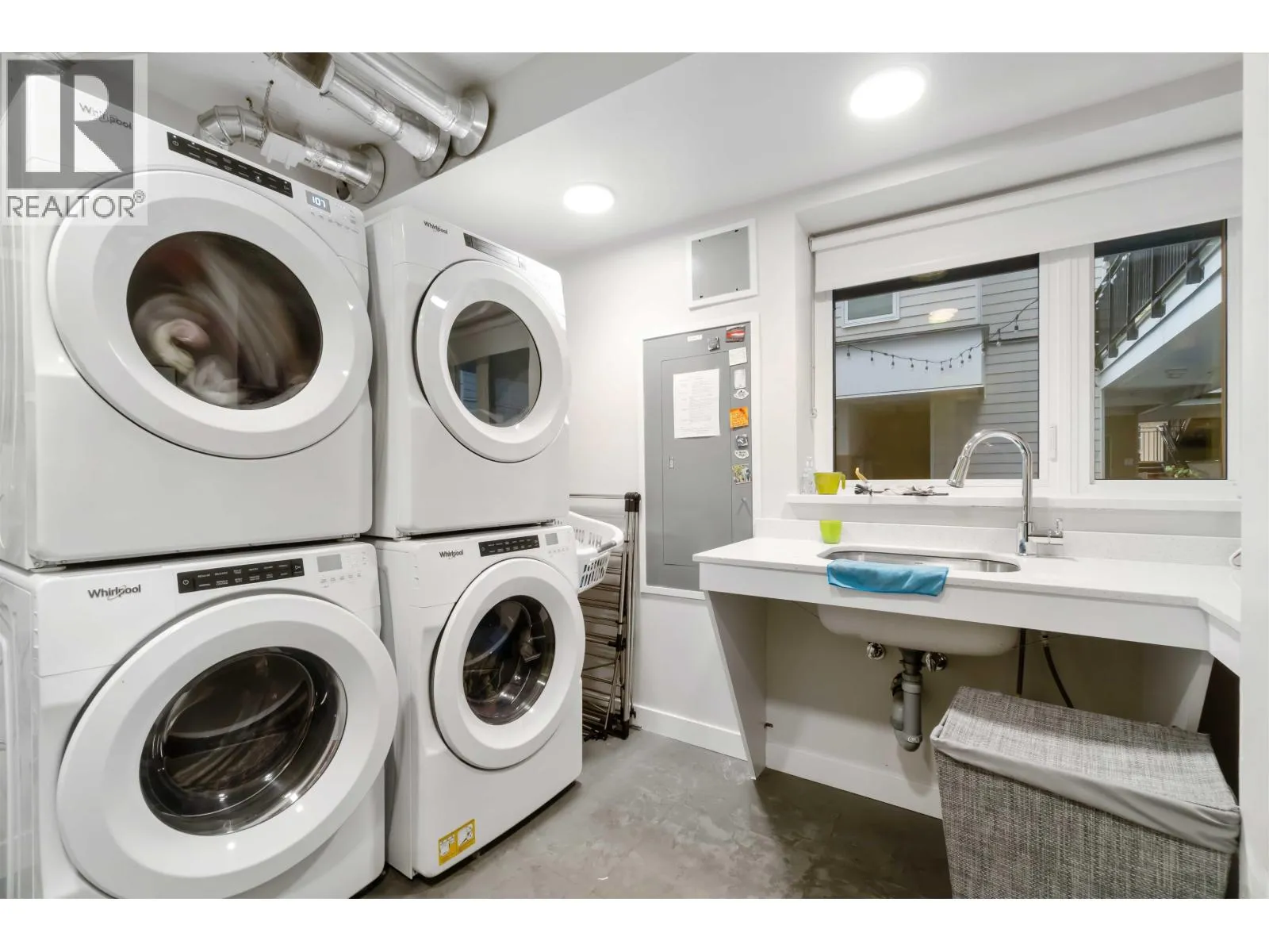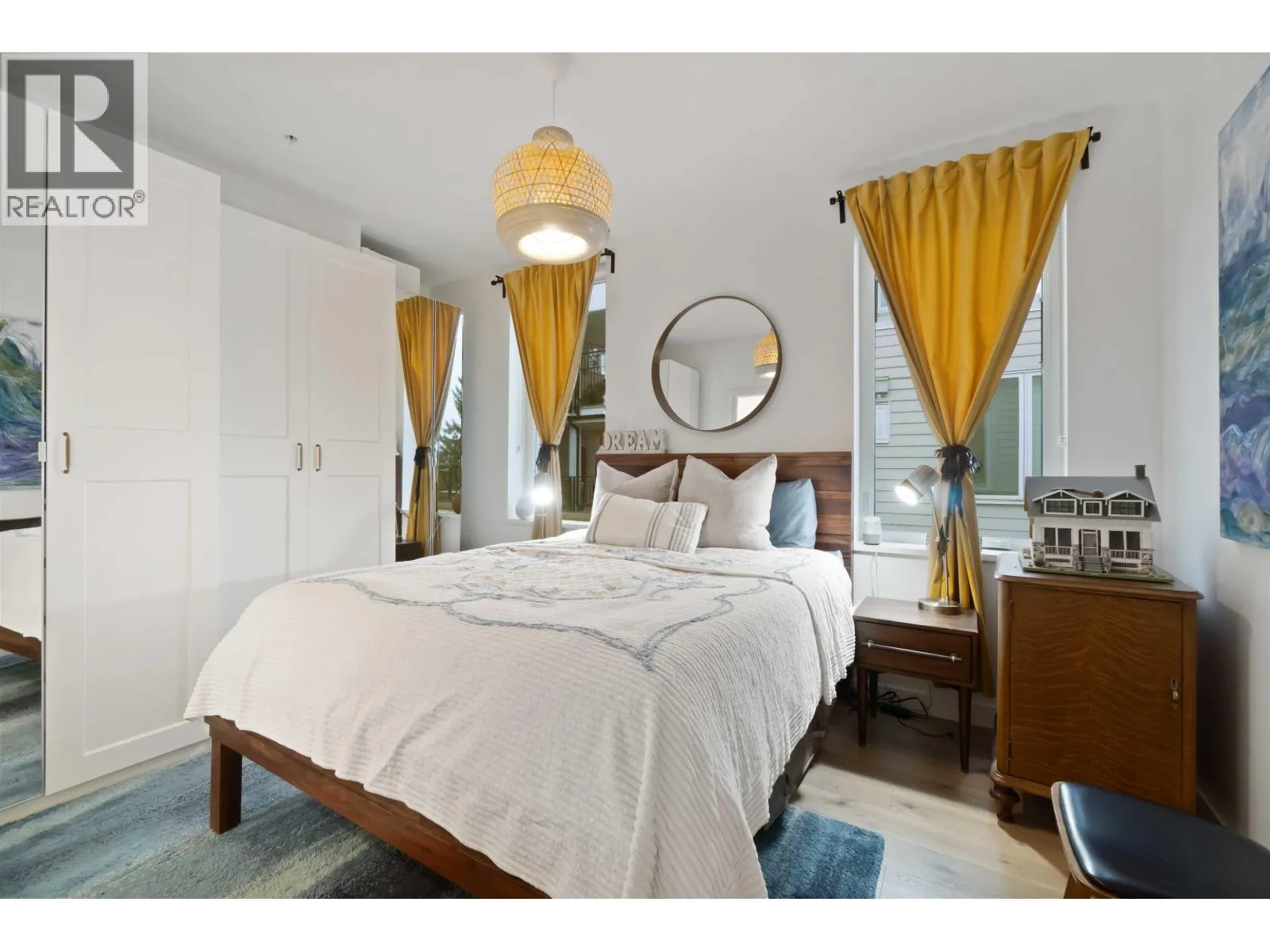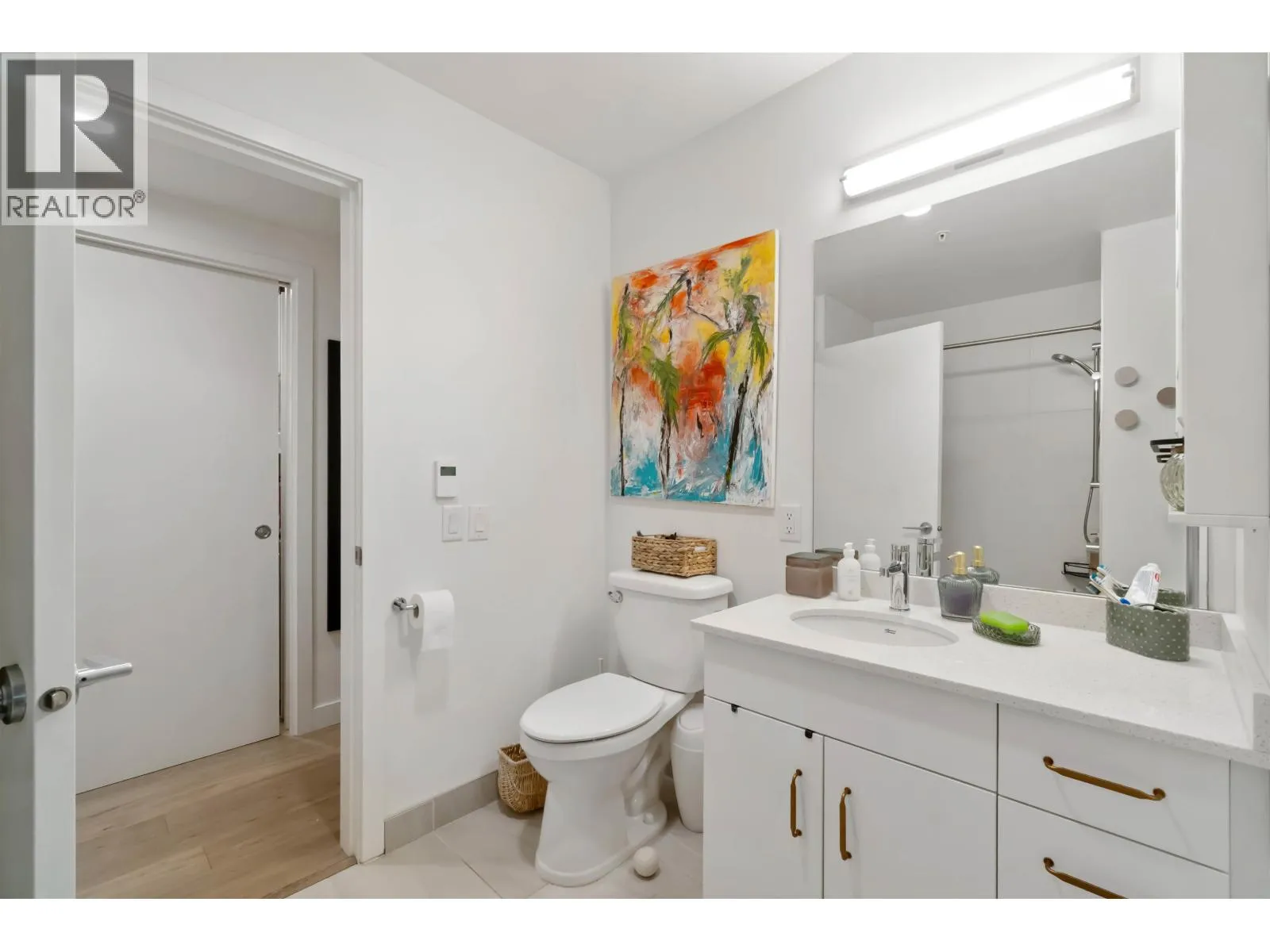 Community-focused living at Driftwood Village in central Lonsdale. This upper corner unit on quiet side of building has 2 bedrooms and 1 bath, with a balcony overlooking Wagg Creek Park. Peaceful forest views, a babbling brook and glimpses of Lions gate bridge. Stone countertops, stainless steel appliances with induction range, in floor heating, triple glazed windows and in- suite laundry HOOKUPS as well as shared laundry option. EV charging options. Enjoy shared amenities like a rooftop deck, amenities room, playroom for kids, bike room & workshop, community kitchen and community garden. Partial 2-5-10 Warranty. This unit is also level 2 wheelchair assessable. Includes 1 parking and 1 locker OPEN HOUSE SAT April 4th, 2026 2:00-3:30 (id:27476)