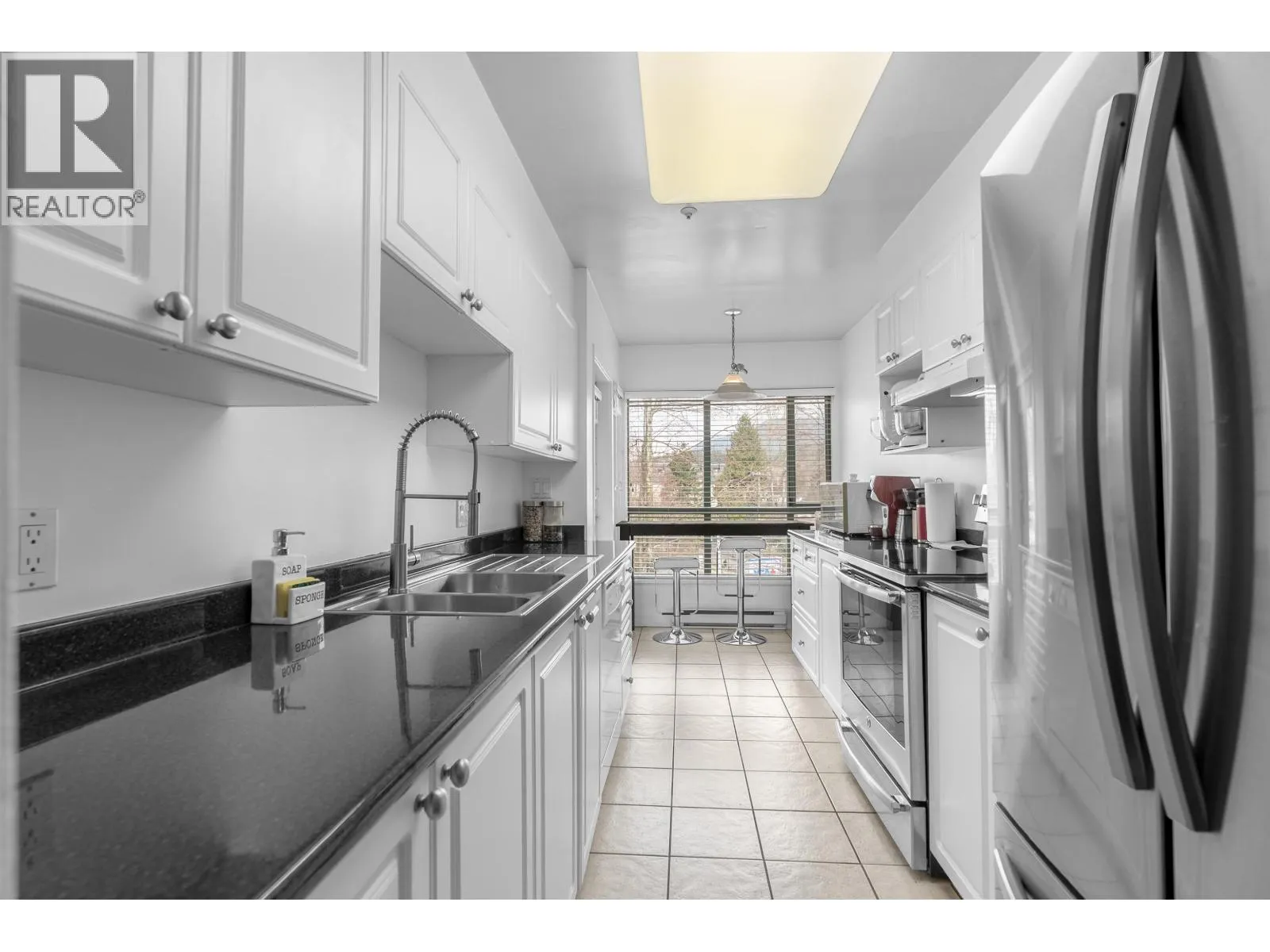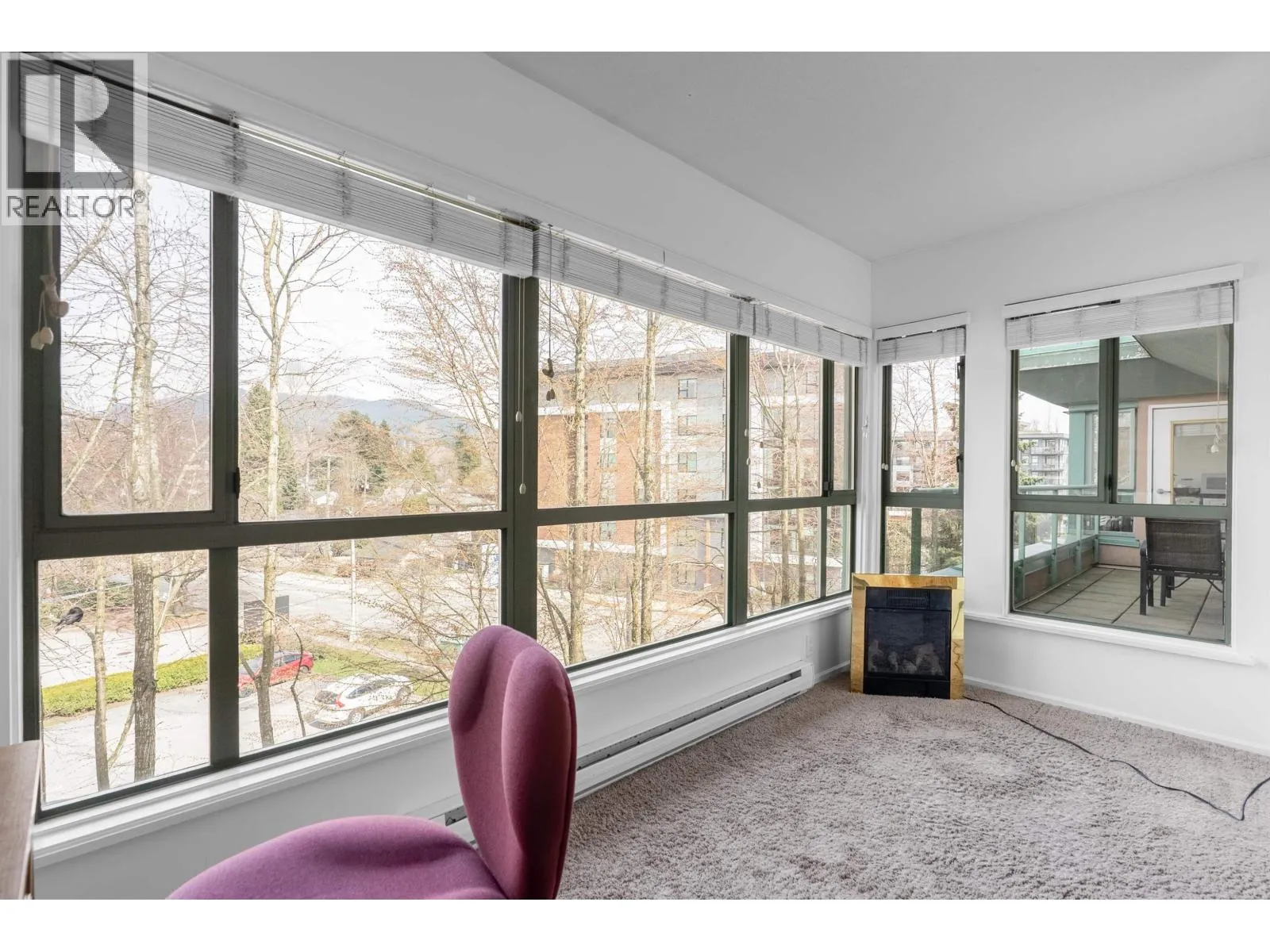 TOP FLOOR PENTHOUSE WITH BREATHTAKING VIEWS! This well-designed 2 bedroom home offers a functional living layout and features a huge balcony with multiple access points. Floor-to-ceiling windows capture ever-changing scenery from spring blooms to summer greenery, vibrant fall colours, and snow-covered mountain peaks in winter. Stylishly updated with contemporary finishes throughout. The primary bedroom offers a private ensuite and generous closet space, while a cozy gas fireplace adds warmth to the living area. Ideal for entertaining, the outdoor space showcases North Vancouver´s natural surroundings. Building upgrades include a new roof and updated plumbing. Includes secure parking and storage. Pet-friendly with rentals permitted. Close to everything! (id:27476)