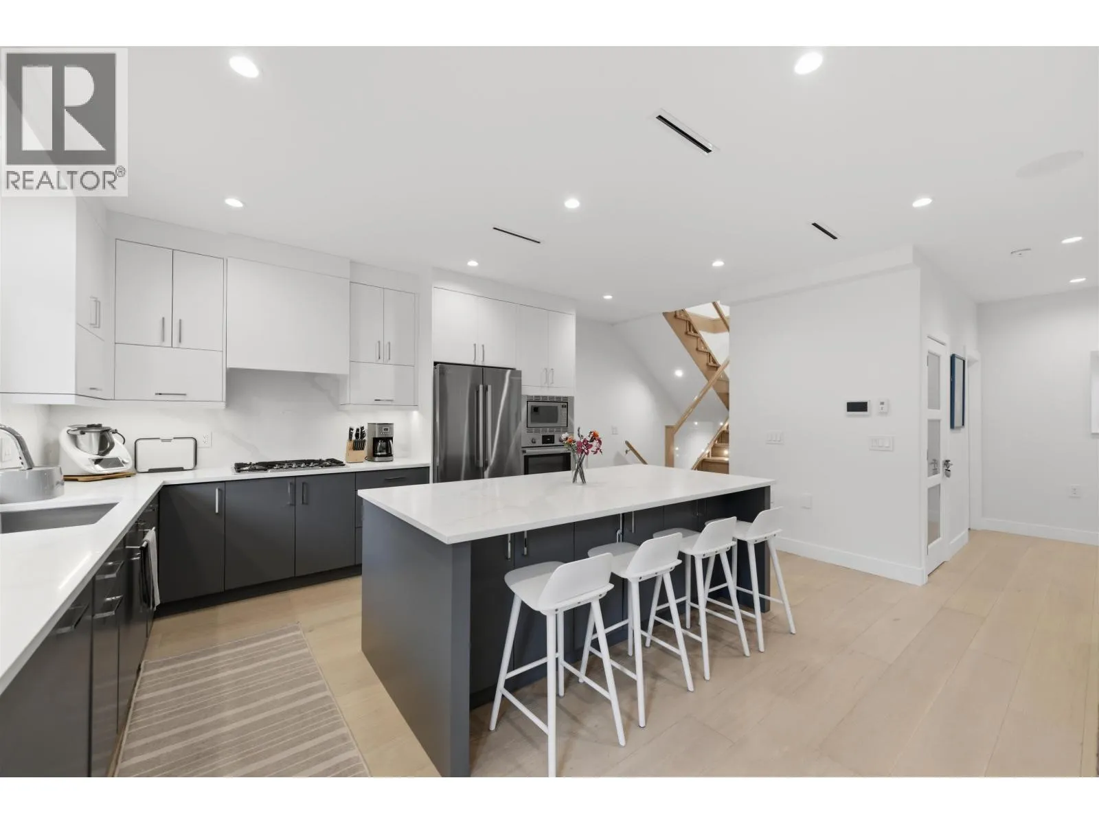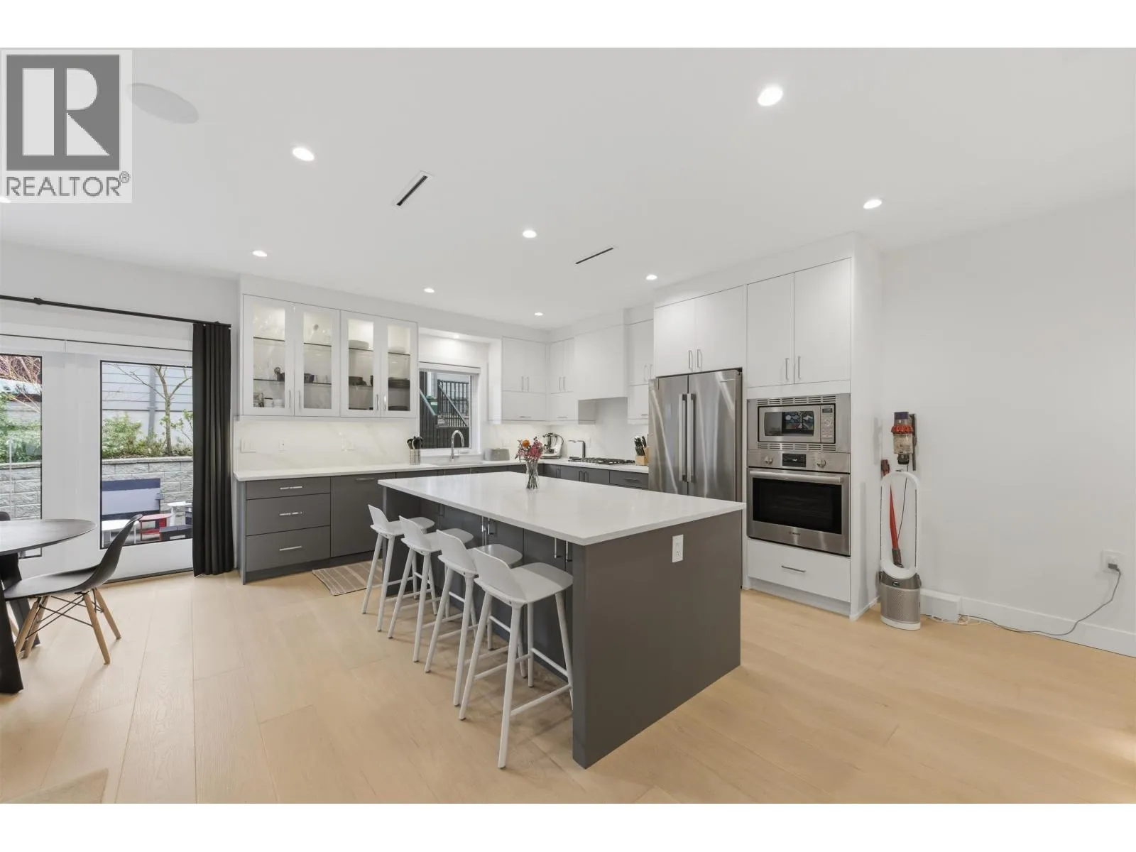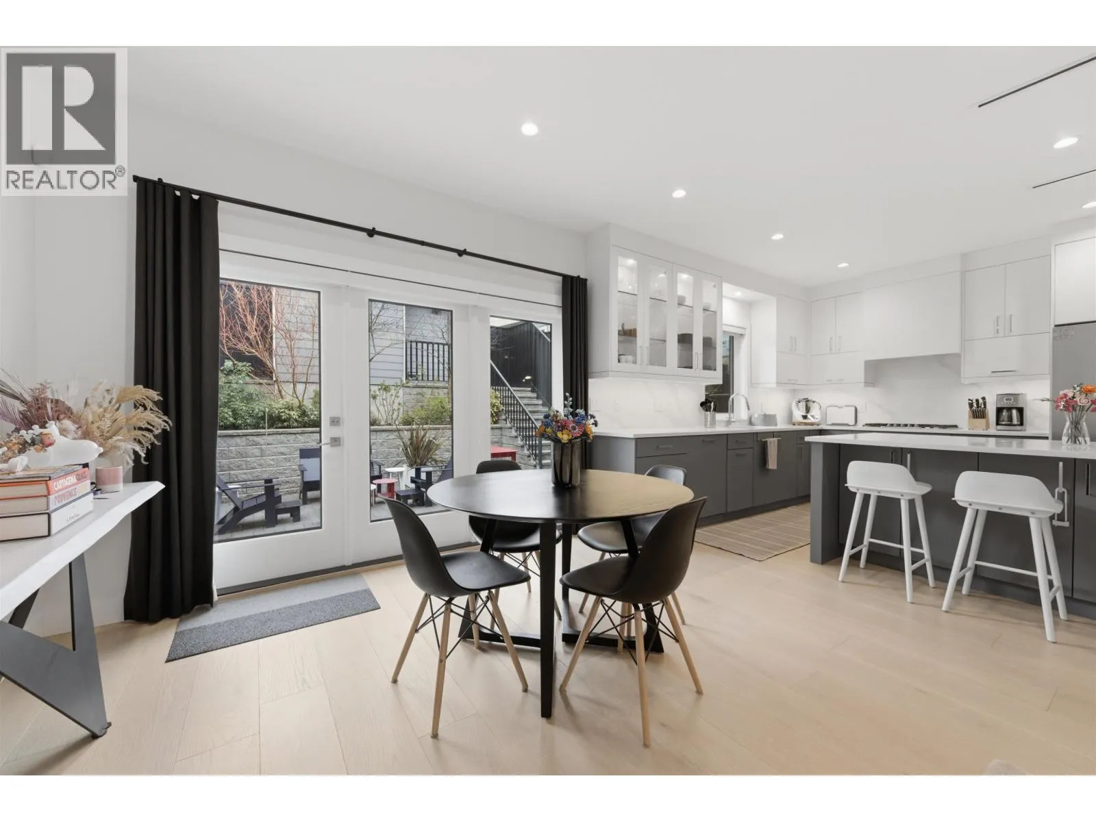 Spectacular City Home with panoramic rooftop views! Boasting an open concept, sleek design, radiant floor heating, AC, & HRV systems. The main floor impresses with a custom open kitchen, quartz countertops, dining area, & a chic powder room plus great outdoor terrace off main living perfect for BBQ & entertaining. Upstairs boasts 3 bedrooms, including primary suite with a marble ensuite. Top floor you´ll find a great den / office deck with terrific roof deck ideal for a glass of wine against the mountain backdrop. The lower level presents a spacious rec room, wet bar, laundry, bath, & ample storage. Situated in the sought-after Central Lonsdale area, this city home is a short distance from amenities, complete with single garage & storage locker. Beautiful home! (id:27476)