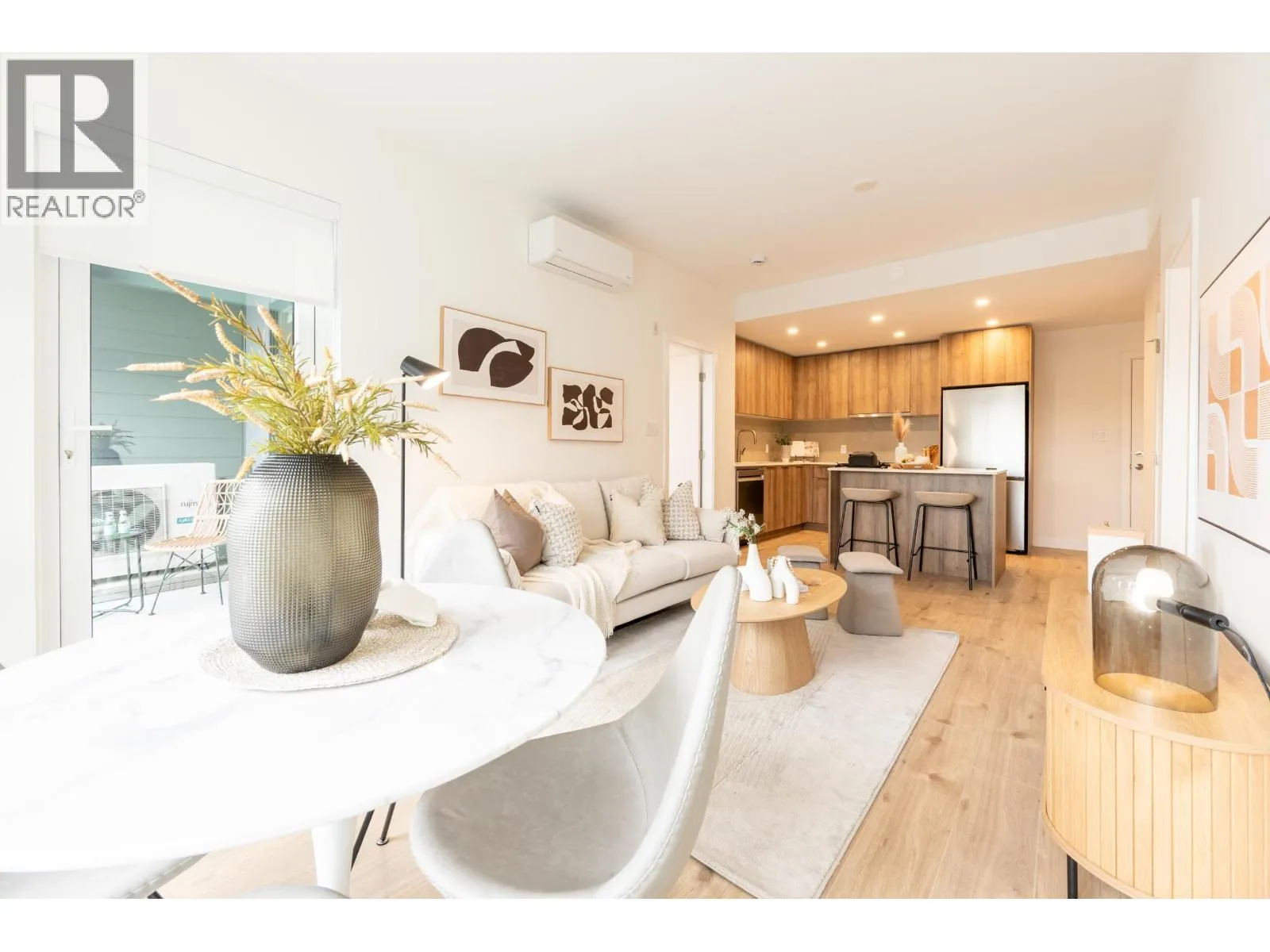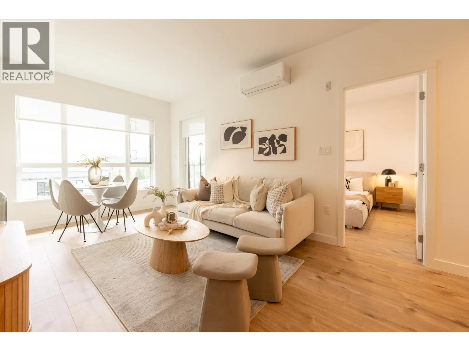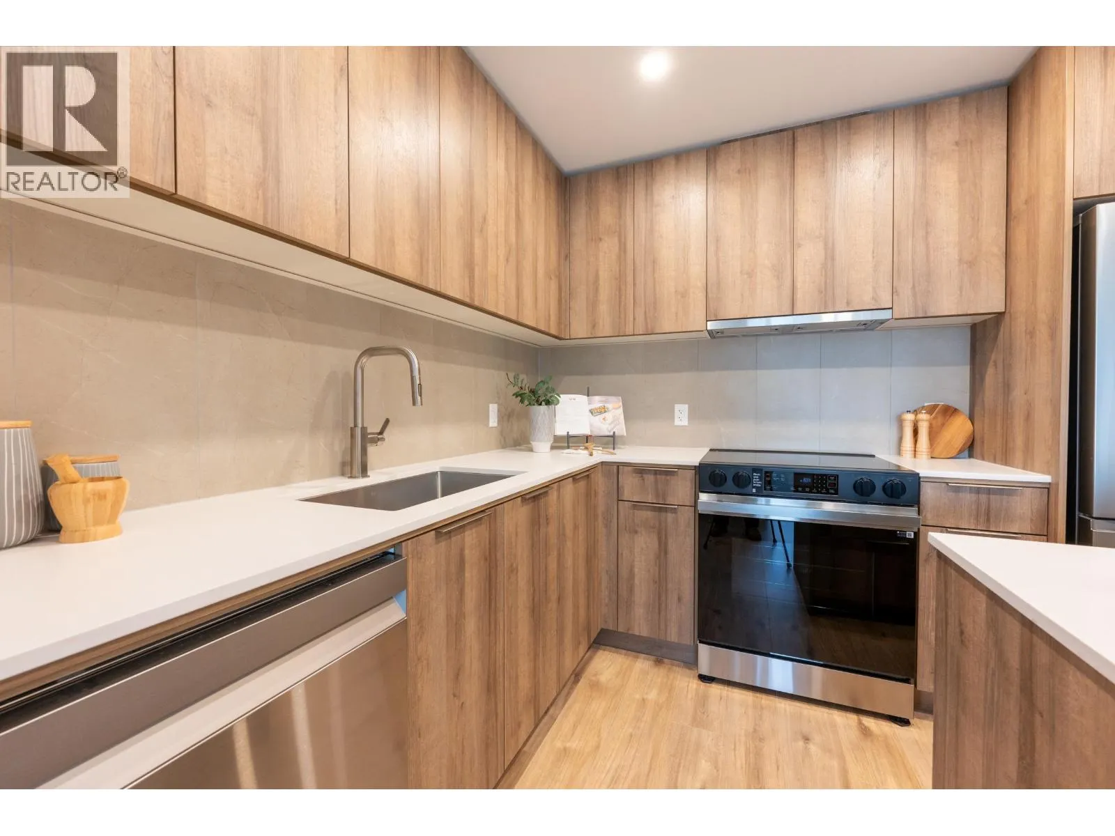 Brand new, with A/C and EV charging! 2 bed, 2 bath home at Lupine Walk in Raven Woods, the latest addition to this popular Seymour community close to Deep Cove. Bright southern exposure, overheight ceilings and a thoughtful floorplan with bedrooms on opposite sides. Custom millwork, solid surface counters, stainless appliances, custom tilework, etc. A large, deep covered patio overlooking the courtyard with forest and mountain views. A/C, EV parking spot, & 1 storage locker included. On site fitness centre and lounge. Great balance of forested nature and walkable convenience-walk to Parkgate Village, Sherwood Park Elementary, Cates Park, and Garibaldi Park. Minutes by bike or car to Northwoods Village, Ron Andrews Community Centre, Capilano University, all types of trails, and skiing. East-side access to Second Narrows streamlines downtown commutes. OPEN HOUSE: Sunday April 19th 1pm-3pm. (id:27476)