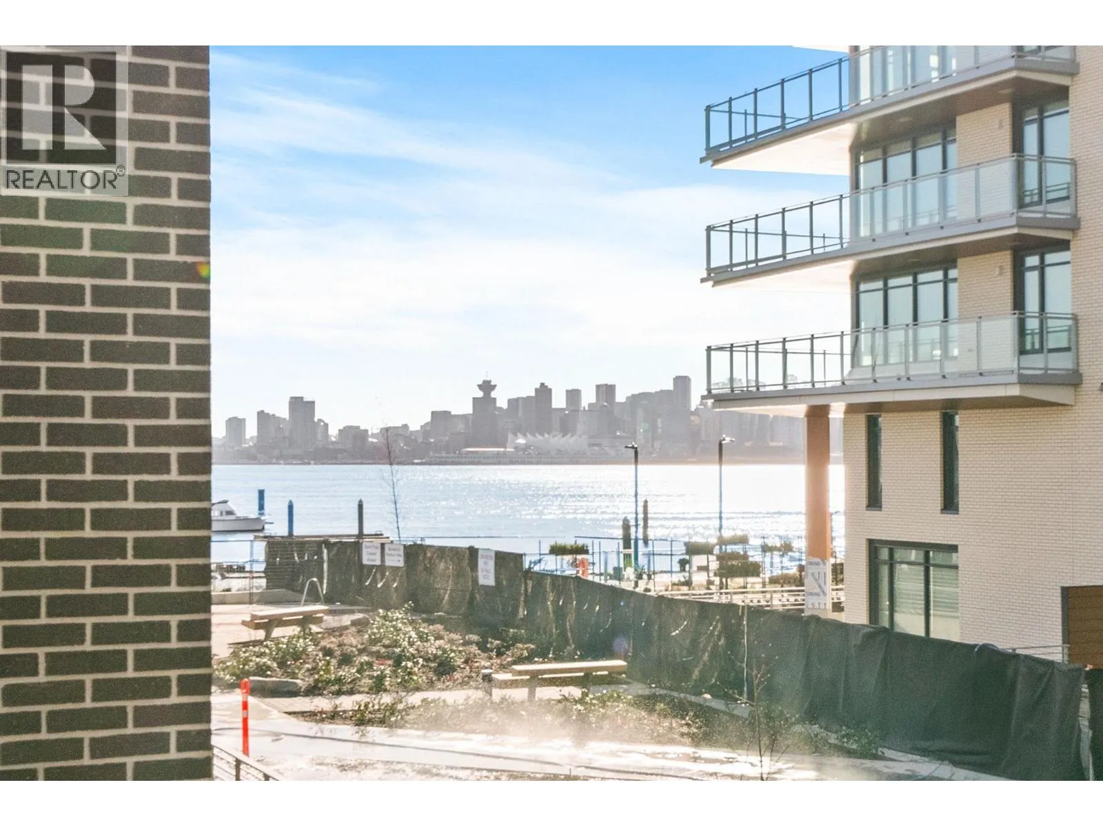 Luxury living in this brand new, never lived in waterfront concrete townhome at North Vancouver´s newest waterfront community, North Harbour. This ground floor home with private entry offers over 1,300 sf of thoughtfully designed living space plus a 200+ sf patio with water views. The main level features an open-concept kitchen, dining, and living area with a powder room, ideal for everyday living and entertaining. Upstairs are two well-sized bedrooms, each with its own bathroom. Ample storage throughout. Includes 1 oversized parking stall and 1 external storage locker. Building amenities include a well-equipped gym, rooftop terrace with BBQ and garden, rooftop lounge and study area, concierge service, and overnight security. Move in ready! https://youtu.be/WlyuccM0Mcs (id:27476)
