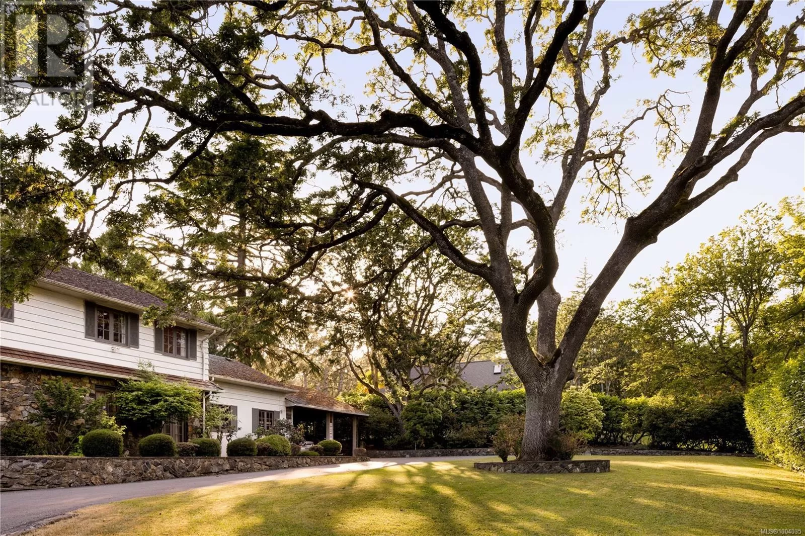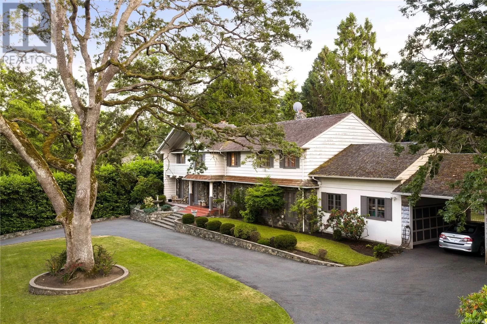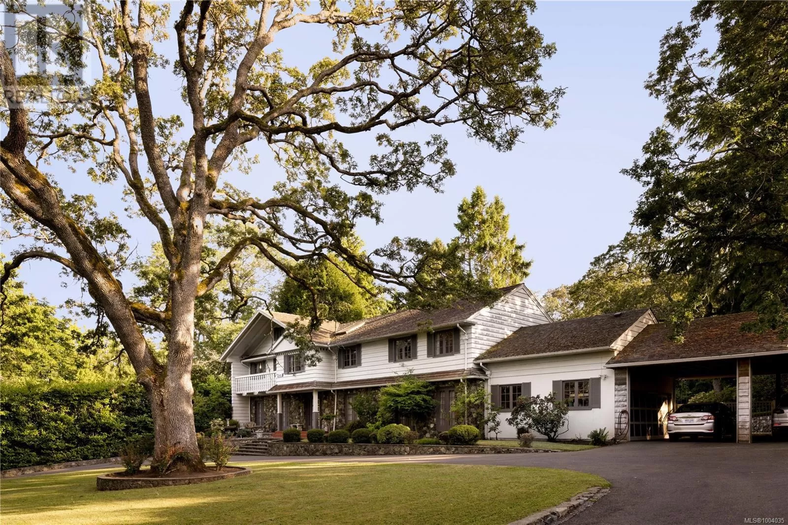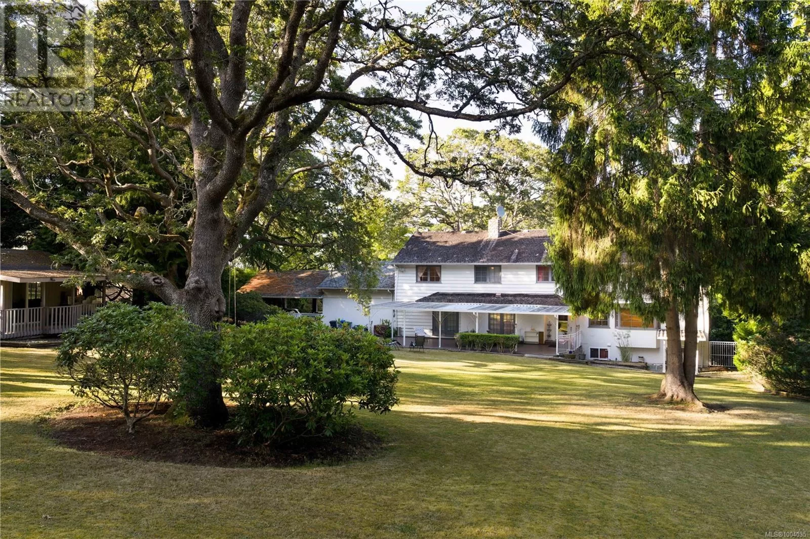 Tucked behind a canopy of mature trees on nearly an acre in the prestigious Uplands, 3460 Beach Drive is a legacy property with timeless appeal. This stately 5-bed, 3-bath home offers over 4,600 sqft of finished living space across 3 levels. Gracious principal rooms feature wood-beamed ceilings, oversized windows, and rich character details throughout. Designed for entertaining, the main floor opens to an expansive 42' covered patio overlooking lush, park-like grounds. Upstairs, the spacious primary suite features a private balcony, while the lower level boasts media room, sauna, and large rec room. The property also features a double garage, carport, treehouse, and garden bedsâblending function & charm. A detached studio provides flexible space, ideal for an art studio, home gym, or private office. Located just moments from the Royal Victoria Yacht Club, Uplands Park, and the stunning shoreline, this is an exceptional opportunity in one of Victoriaâs most sought-after neighbourhoods. (id:27476)