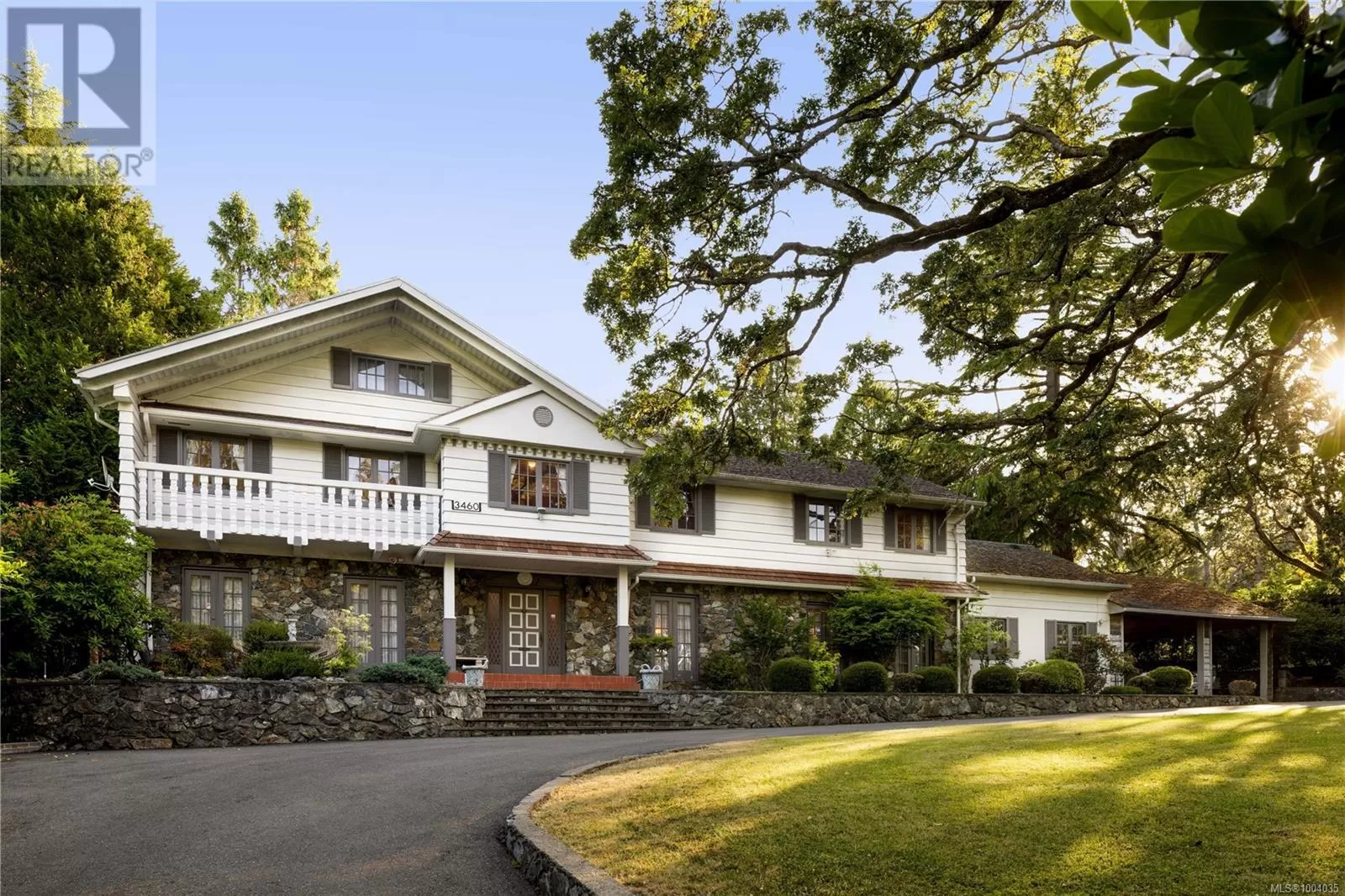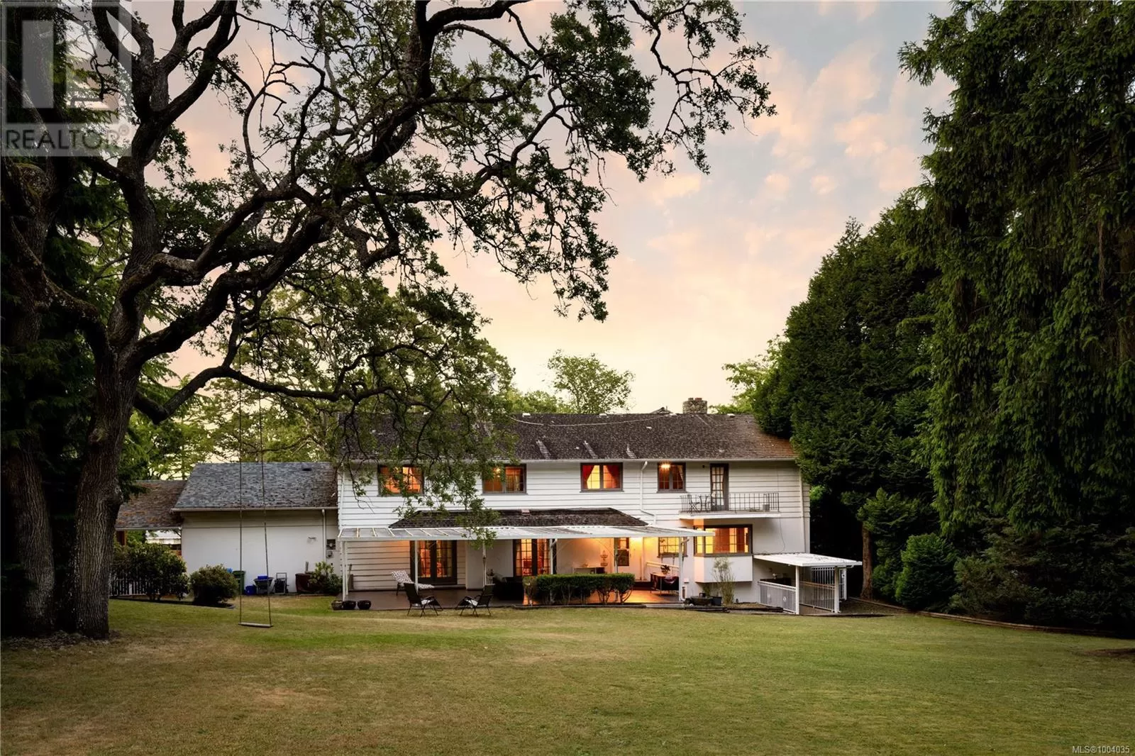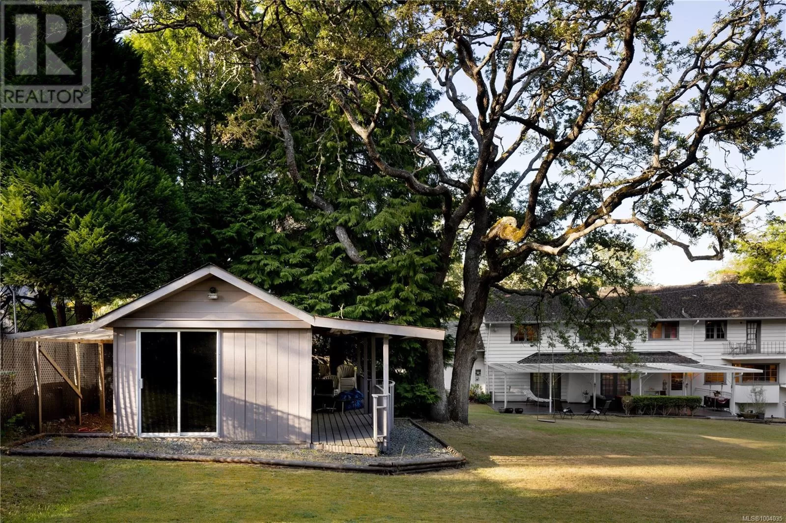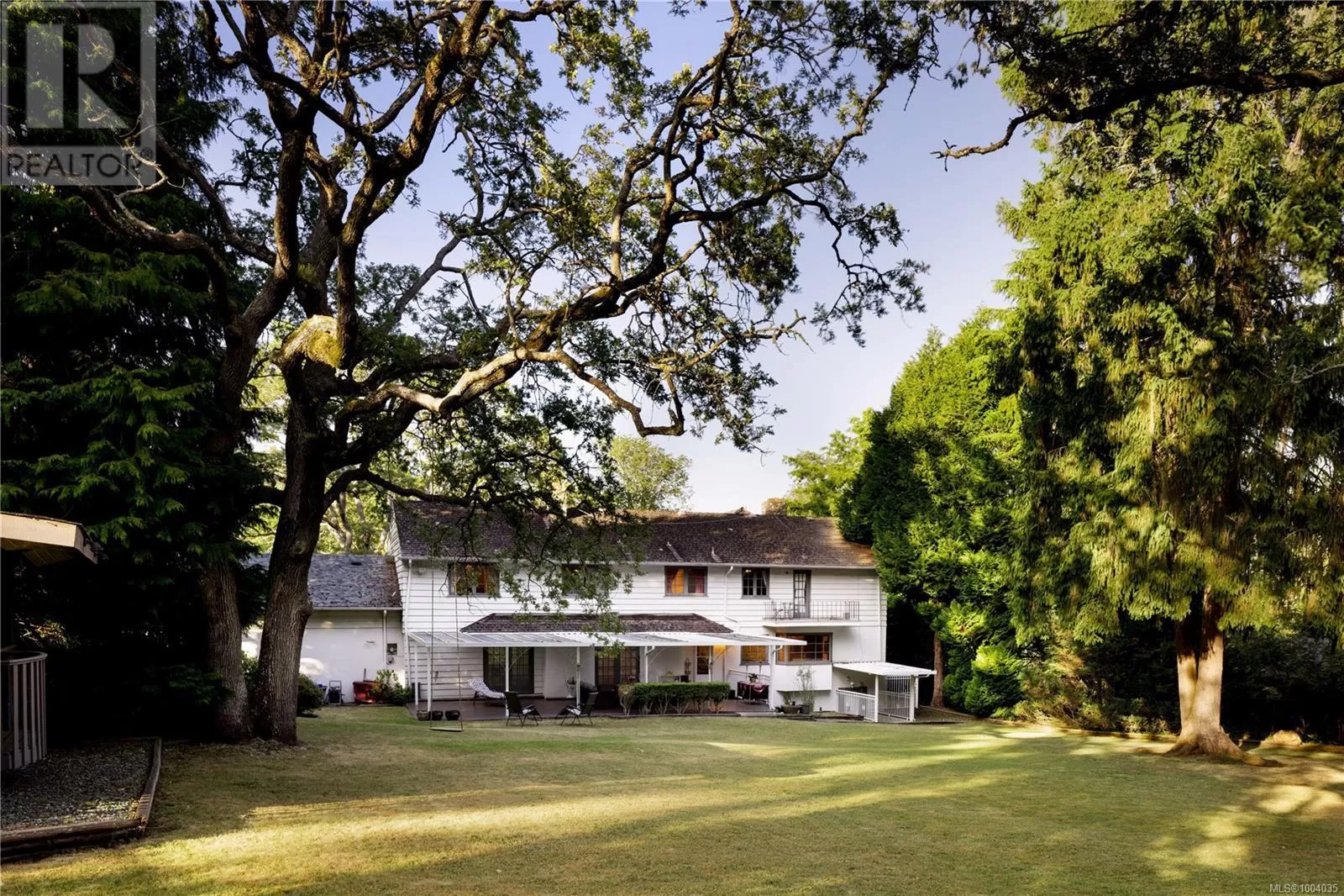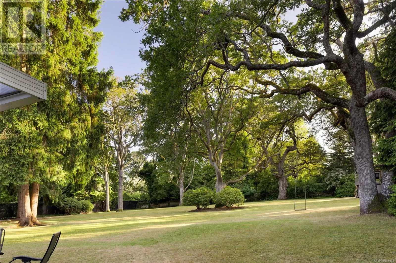 Tucked behind a canopy of mature trees on nearly an acre in the prestigious Uplands, 3460 Beach Drive is a legacy property with timeless appeal. This stately 5-bed, 3-bath home offers over 4,600 sqft of finished living space across 3 levels. Gracious principal rooms feature wood-beamed ceilings, oversized windows, and rich character details throughout. Designed for entertaining, the main floor opens to an expansive 42' covered patio overlooking lush, park-like grounds. Upstairs, the spacious primary suite features a private balcony, while the lower level boasts media room, sauna, and large rec room. The property also features a double garage, carport, treehouse, and garden bedsâblending function & charm. A detached studio provides flexible space, ideal for an art studio, home gym, or private office. Located just moments from the Royal Victoria Yacht Club, Uplands Park, and the stunning shoreline, this is an exceptional opportunity in one of Victoriaâs most sought-after neighbourhoods. (id:27476)
