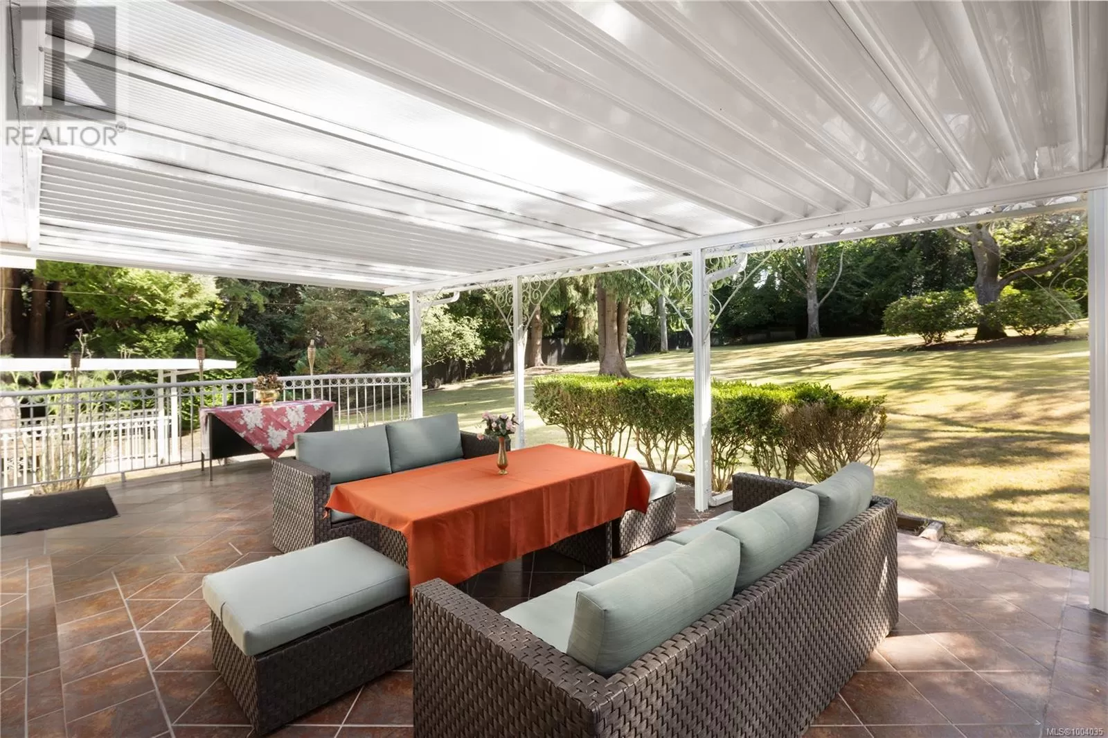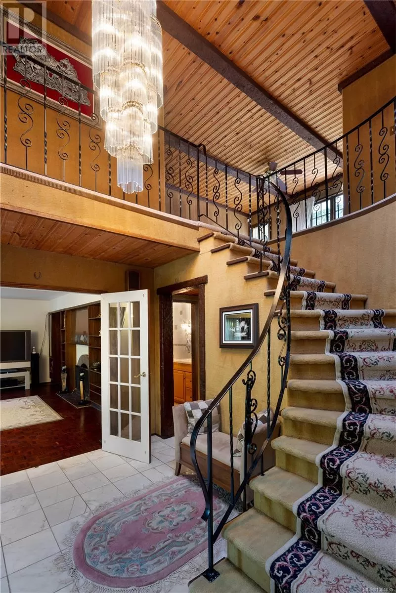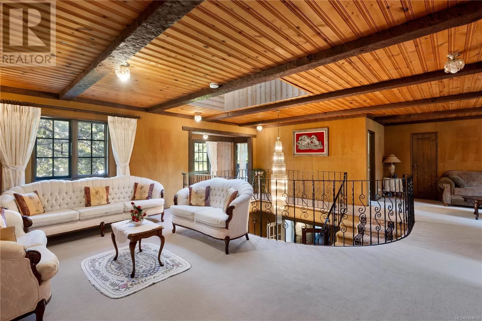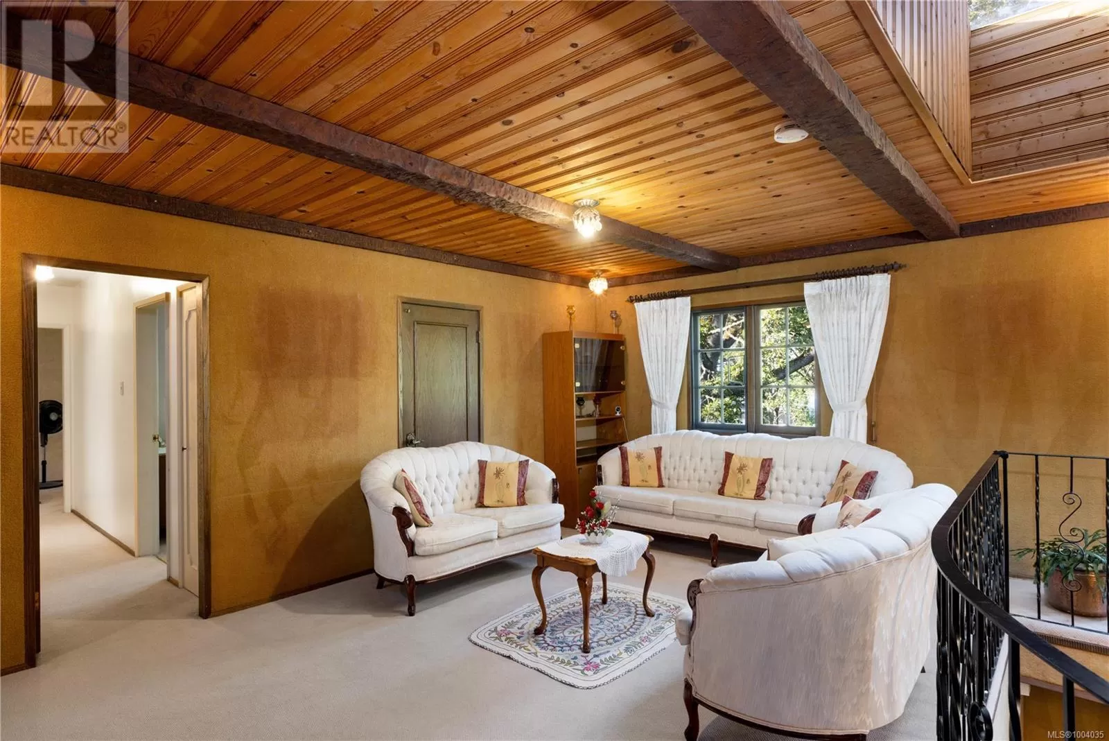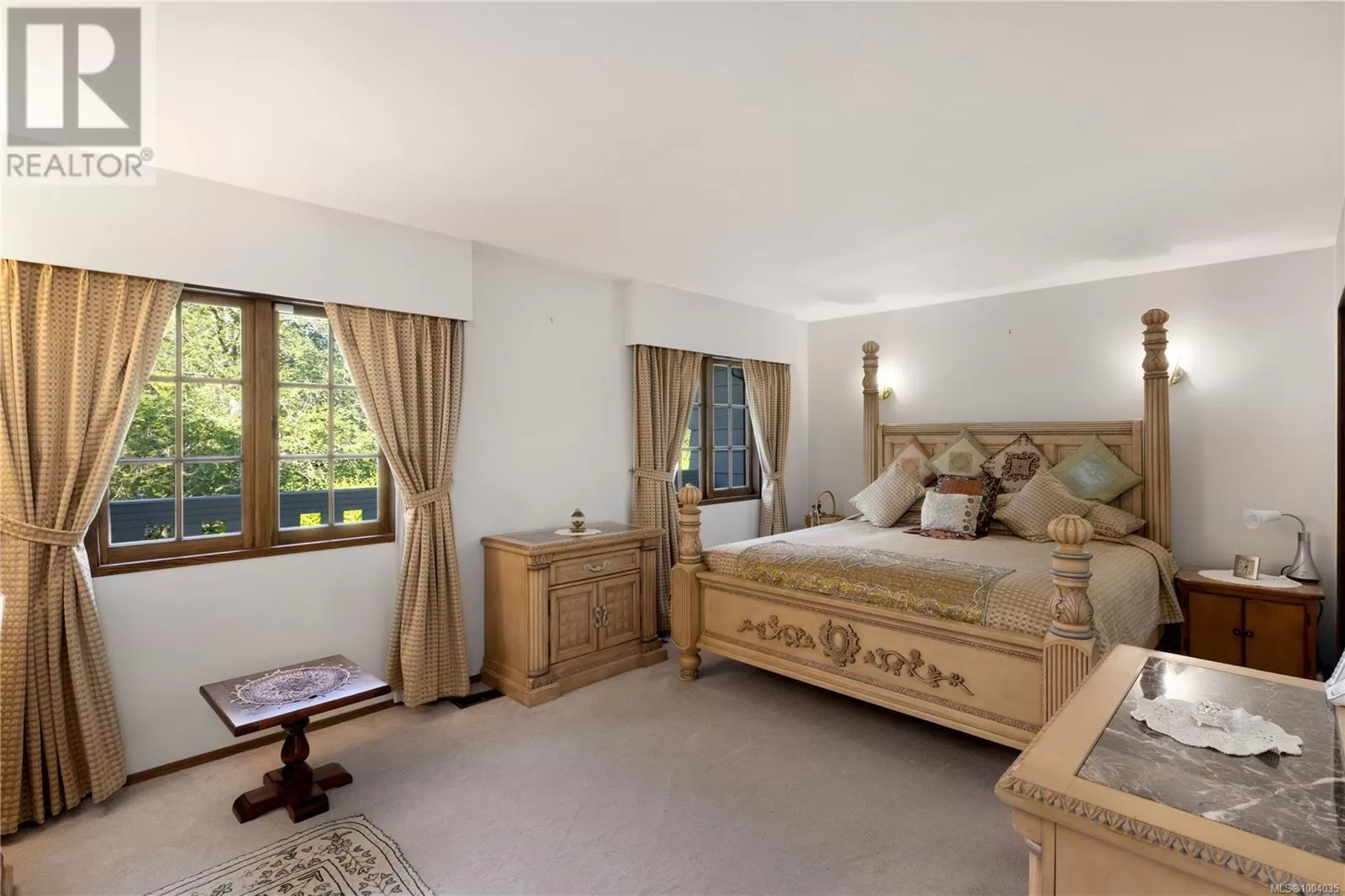 Tucked behind a canopy of mature trees on nearly an acre in the prestigious Uplands, 3460 Beach Drive is a legacy property with timeless appeal. This stately 5-bed, 3-bath home offers over 4,600 sqft of finished living space across 3 levels. Gracious principal rooms feature wood-beamed ceilings, oversized windows, and rich character details throughout. Designed for entertaining, the main floor opens to an expansive 42' covered patio overlooking lush, park-like grounds. Upstairs, the spacious primary suite features a private balcony, while the lower level boasts media room, sauna, and large rec room. The property also features a double garage, carport, treehouse, and garden bedsâblending function & charm. A detached studio provides flexible space, ideal for an art studio, home gym, or private office. Located just moments from the Royal Victoria Yacht Club, Uplands Park, and the stunning shoreline, this is an exceptional opportunity in one of Victoriaâs most sought-after neighbourhoods. (id:27476)
