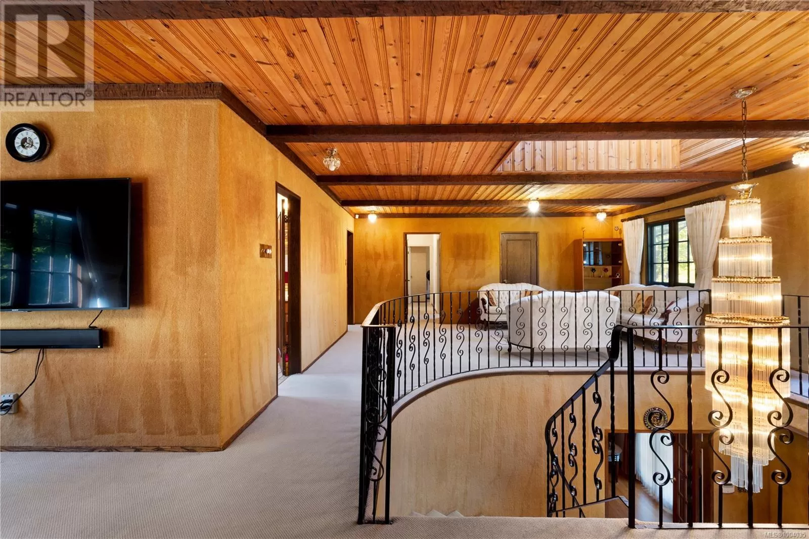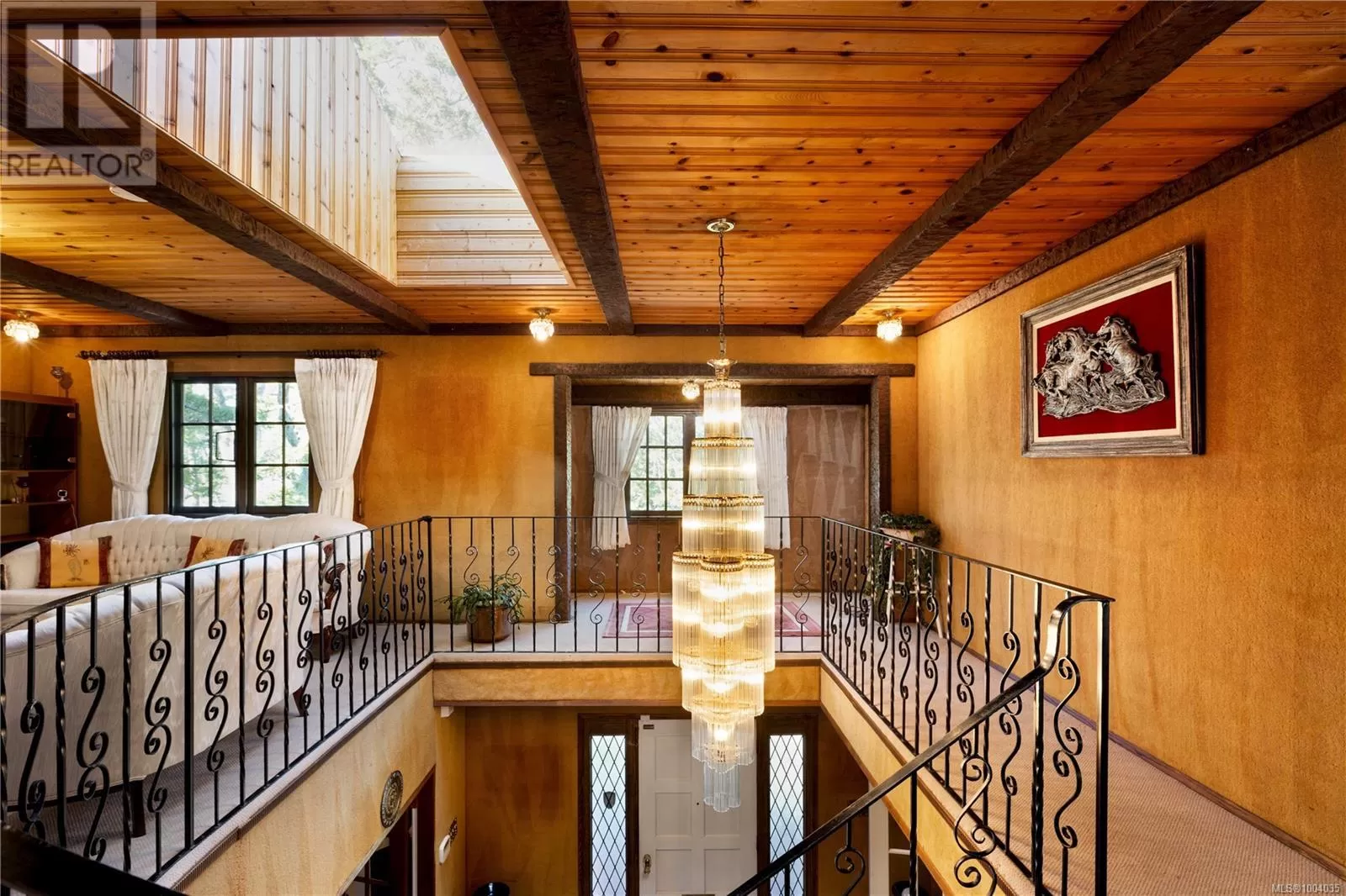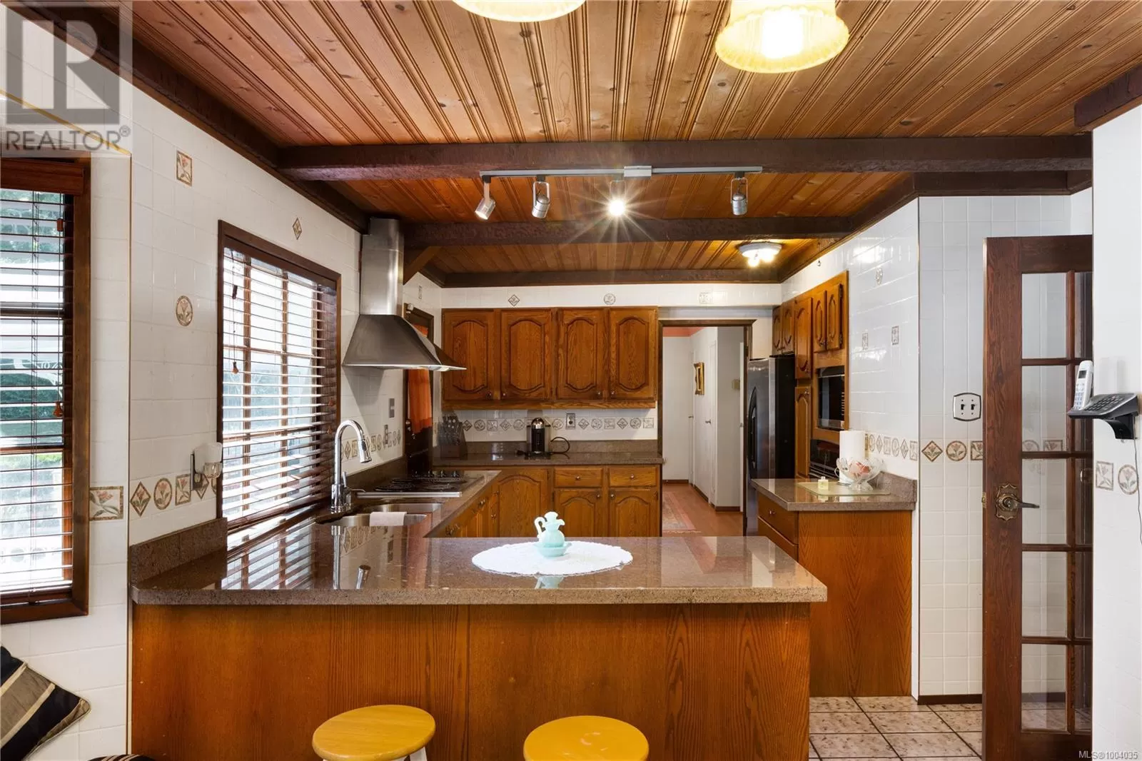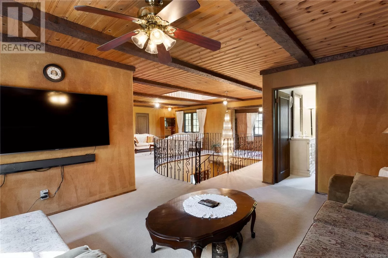 Tucked behind a canopy of mature trees on nearly an acre in the prestigious Uplands, 3460 Beach Drive is a legacy property with timeless appeal. This stately 5-bed, 3-bath home offers over 4,600 sqft of finished living space across 3 levels. Gracious principal rooms feature wood-beamed ceilings, oversized windows, and rich character details throughout. Designed for entertaining, the main floor opens to an expansive 42' covered patio overlooking lush, park-like grounds. Upstairs, the spacious primary suite features a private balcony, while the lower level boasts media room, sauna, and large rec room. The property also features a double garage, carport, treehouse, and garden bedsâblending function & charm. A detached studio provides flexible space, ideal for an art studio, home gym, or private office. Located just moments from the Royal Victoria Yacht Club, Uplands Park, and the stunning shoreline, this is an exceptional opportunity in one of Victoriaâs most sought-after neighbourhoods. (id:27476)