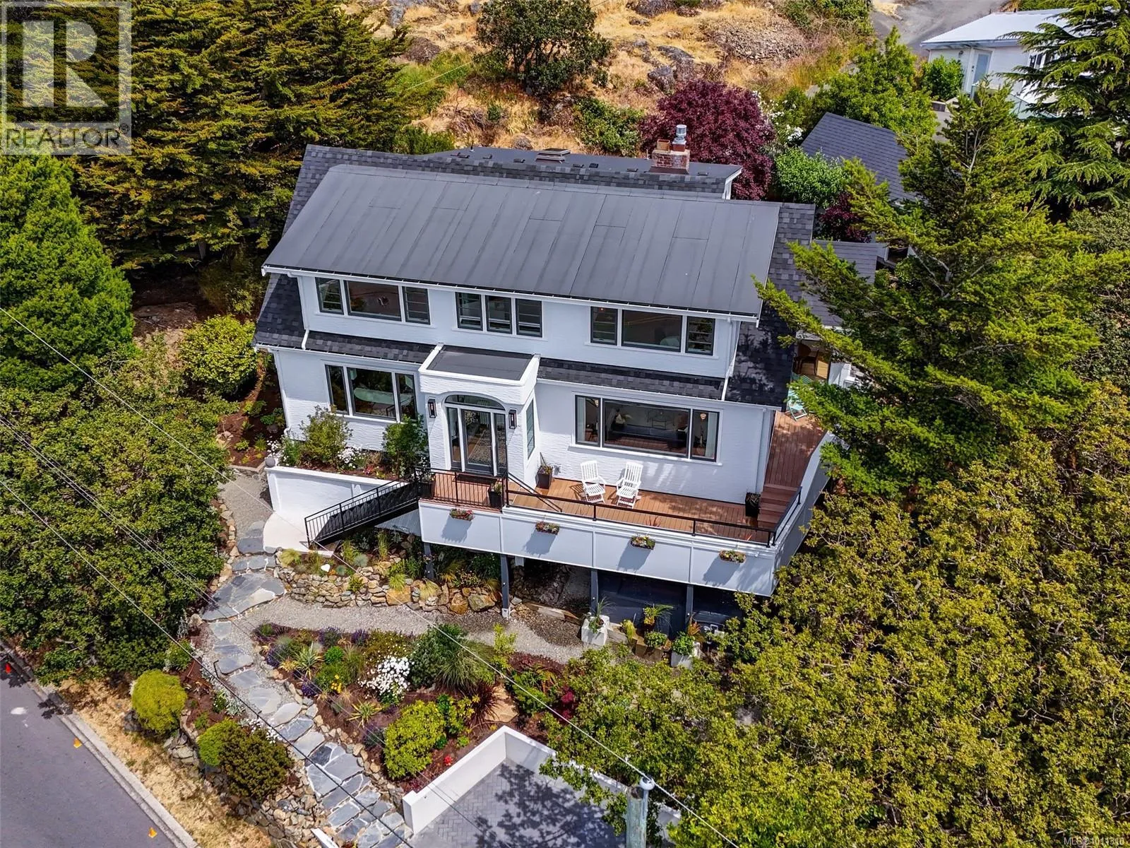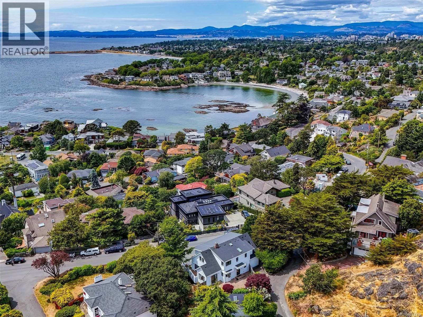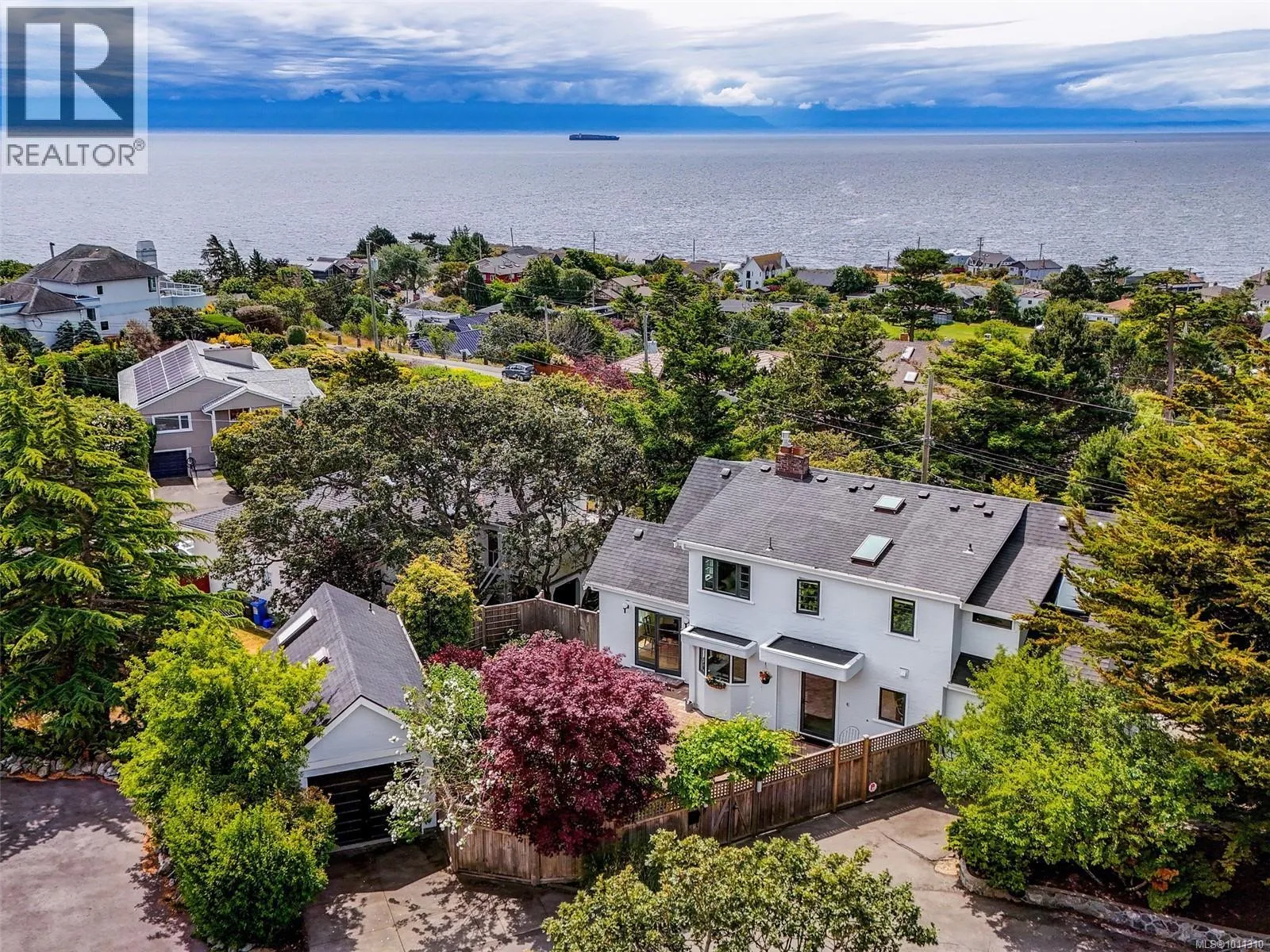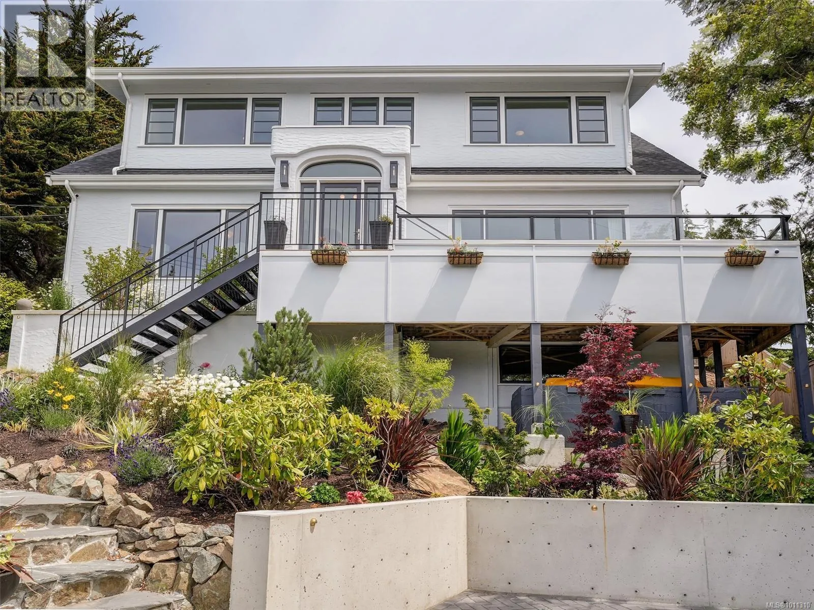 With panoramic views over the Juan de Fuca Strait and Olympic mountains, this remarkable home offers a rare combination of modern luxury, architectural character, and sought-after location. Exquisitely and thoroughly upgraded by the current owners, the new design blends timeless charm with modern elegance. The custom kitchen by Douglas Grant features marble counters, top of the line appliances and herringbone oak floors. The master suite has vaulted ceilings and a multi-room ensuite with views. French doors link the main living spaces to an ocean view deck as well as to the warm south facing rear patio garden, nestled beneath Walbran Park that naturally extends the private backyard. Tech systems include an integrated UNIFI WiFi network with âsmartâ components, privacy-focused security and weather-aware irrigation. A short walk to Gonzales beach, this home is part of the diverse and family-focused Harling Point neighbourhood, a peaceful retreat in a world class recreational oasis. (id:27476)