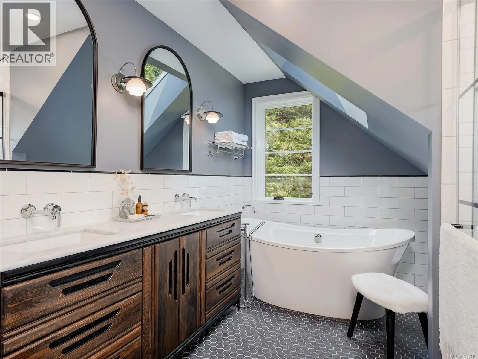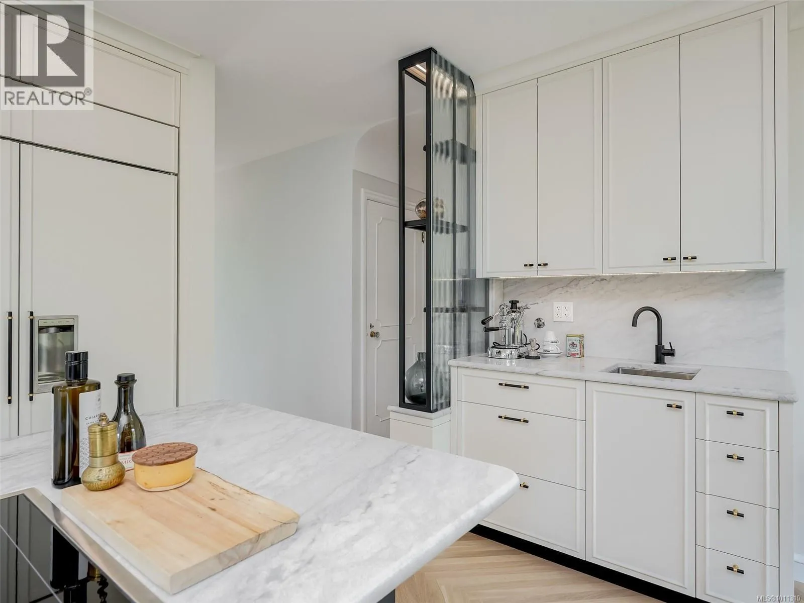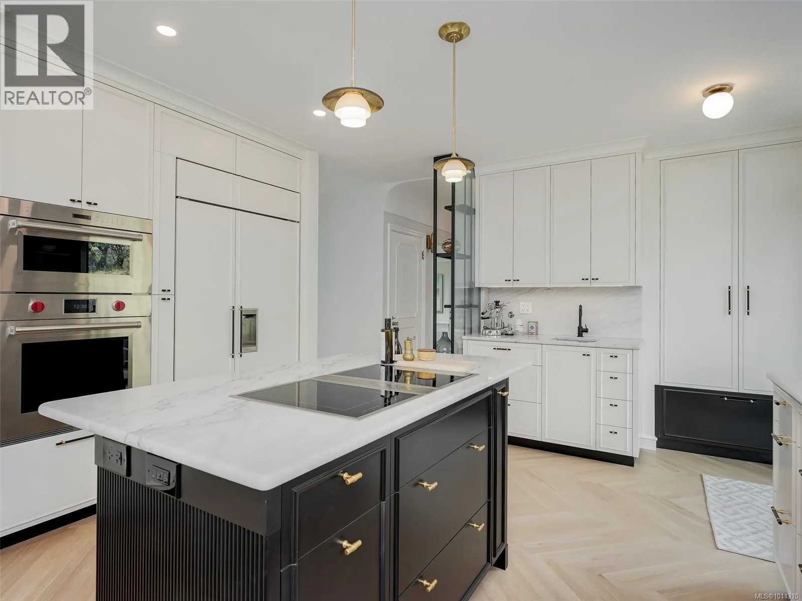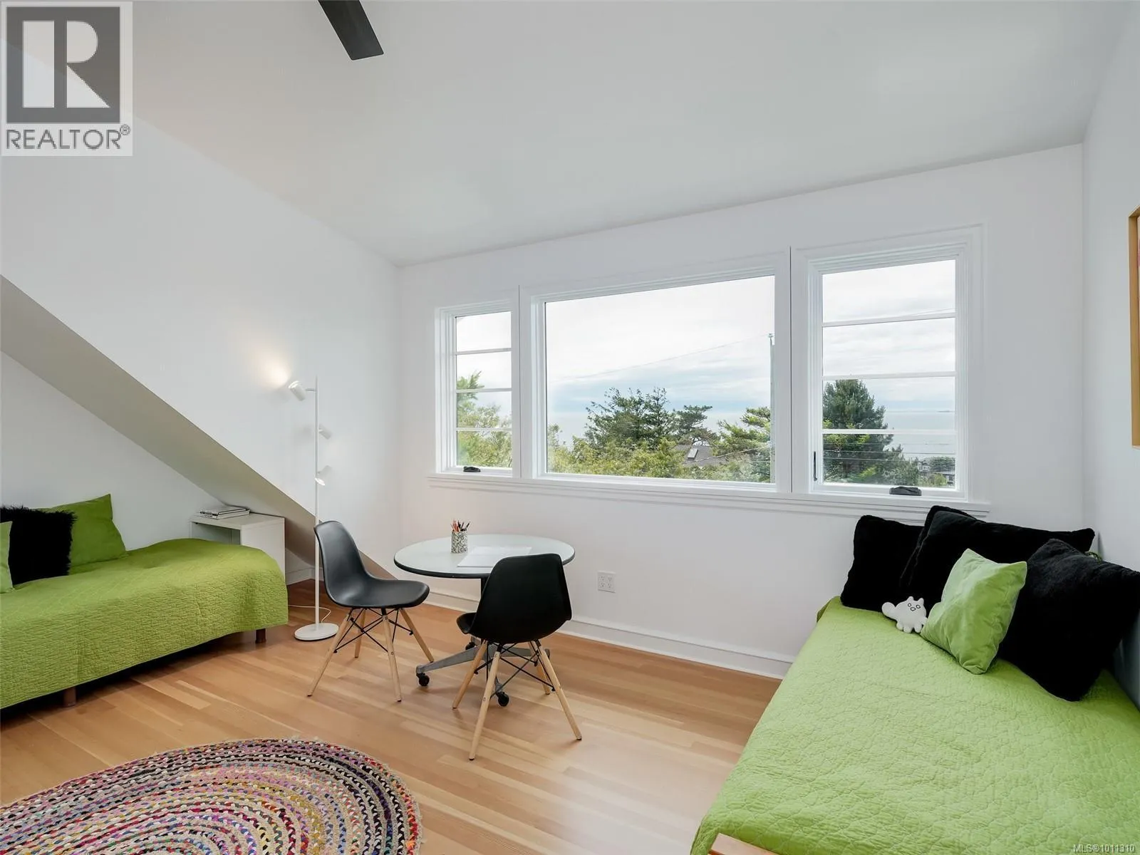 With panoramic views over the Juan de Fuca Strait and Olympic mountains, this remarkable home offers a rare combination of modern luxury, architectural character, and sought-after location. Exquisitely and thoroughly upgraded by the current owners, the new design blends timeless charm with modern elegance. The custom kitchen by Douglas Grant features marble counters, top of the line appliances and herringbone oak floors. The master suite has vaulted ceilings and a multi-room ensuite with views. French doors link the main living spaces to an ocean view deck as well as to the warm south facing rear patio garden, nestled beneath Walbran Park that naturally extends the private backyard. Tech systems include an integrated UNIFI WiFi network with âsmartâ components, privacy-focused security and weather-aware irrigation. A short walk to Gonzales beach, this home is part of the diverse and family-focused Harling Point neighbourhood, a peaceful retreat in a world class recreational oasis. (id:27476)