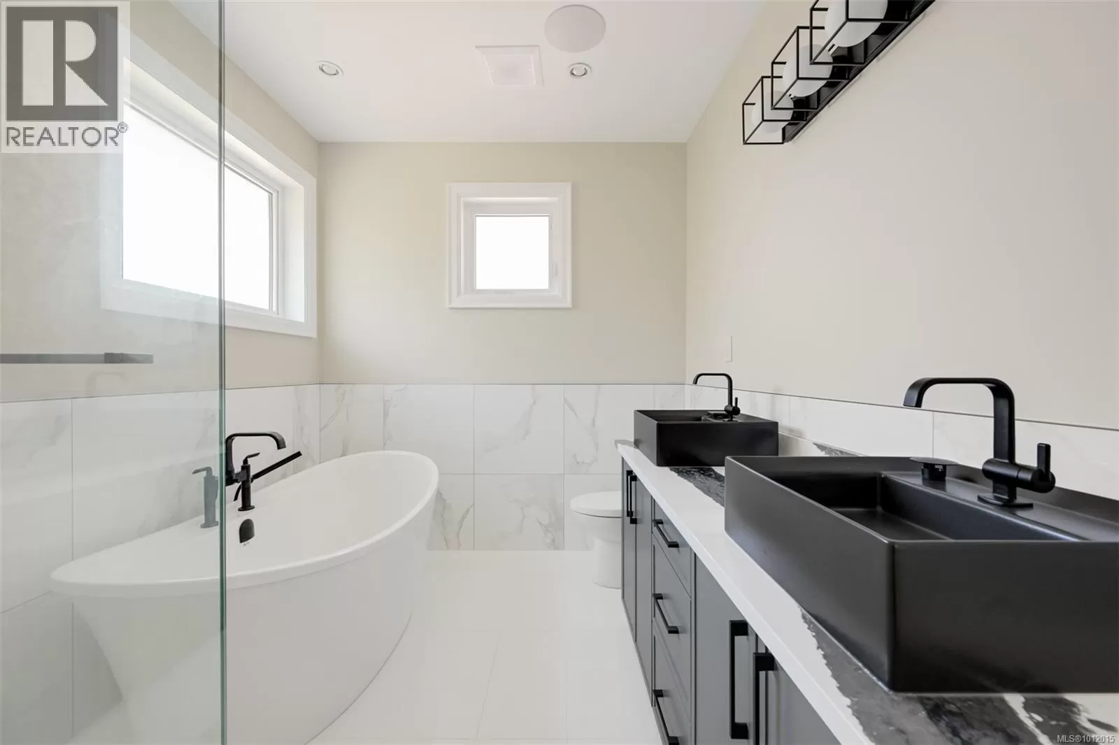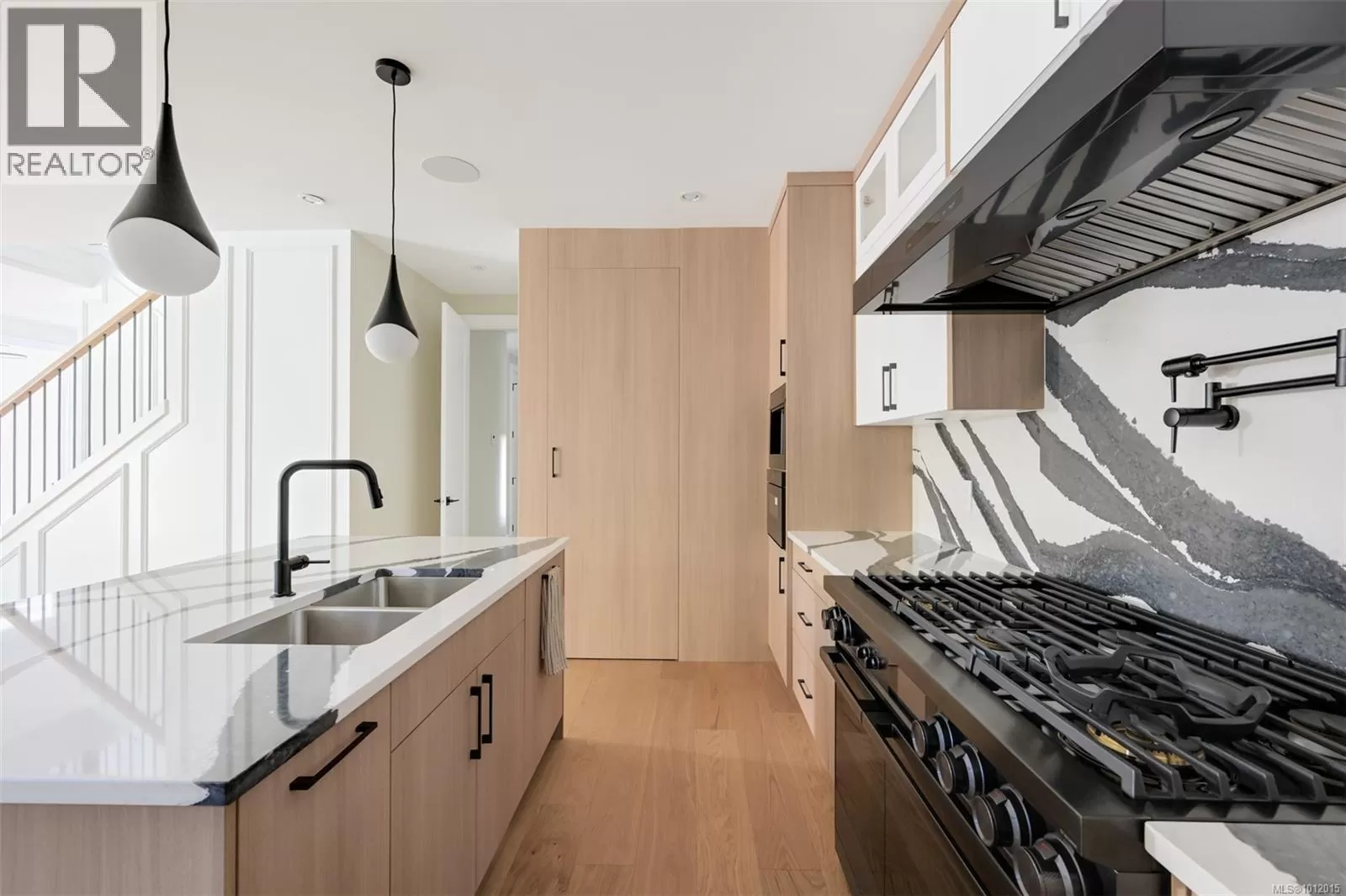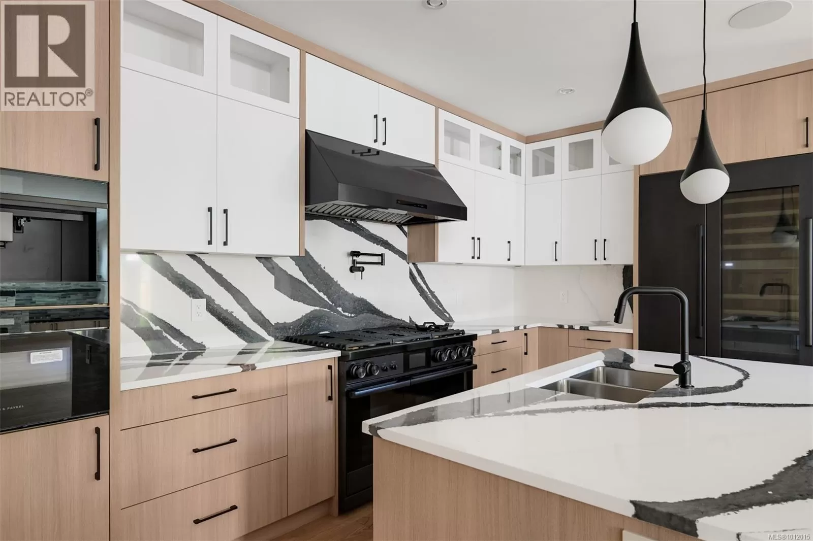 In the heart of South Oak Bay, this newly built 3,528 sq.ft. residence offers contemporary elegance on a landscaped 6,215 sq.ft. lot. Soaring windows, clean architectural lines, and seamless indoor-outdoor flow define this homeâs design.The main floor centers around a stunning kitchen with marble surfaces, a large island, walk-in pantry, and custom wine display. Open dining and living areas with gas fireplace create an inviting atmosphere, complemented by a private office, laundry, and powder room. Direct access to a double garage and paved drive adds convenience.Upstairs, the primary suite features a spa-inspired 5-piece ensuite and walk-in closet, joined by two additional bedrooms, one with its own walk-in. The lower level provides a media room, family lounge, two bedrooms, two full baths, and ample storage.A fenced backyard with patio and manicured front garden offer tranquil outdoor living. Steps to excellent schools, shops, and Oak Bay Village, this home delivers modern luxury. (id:27476)