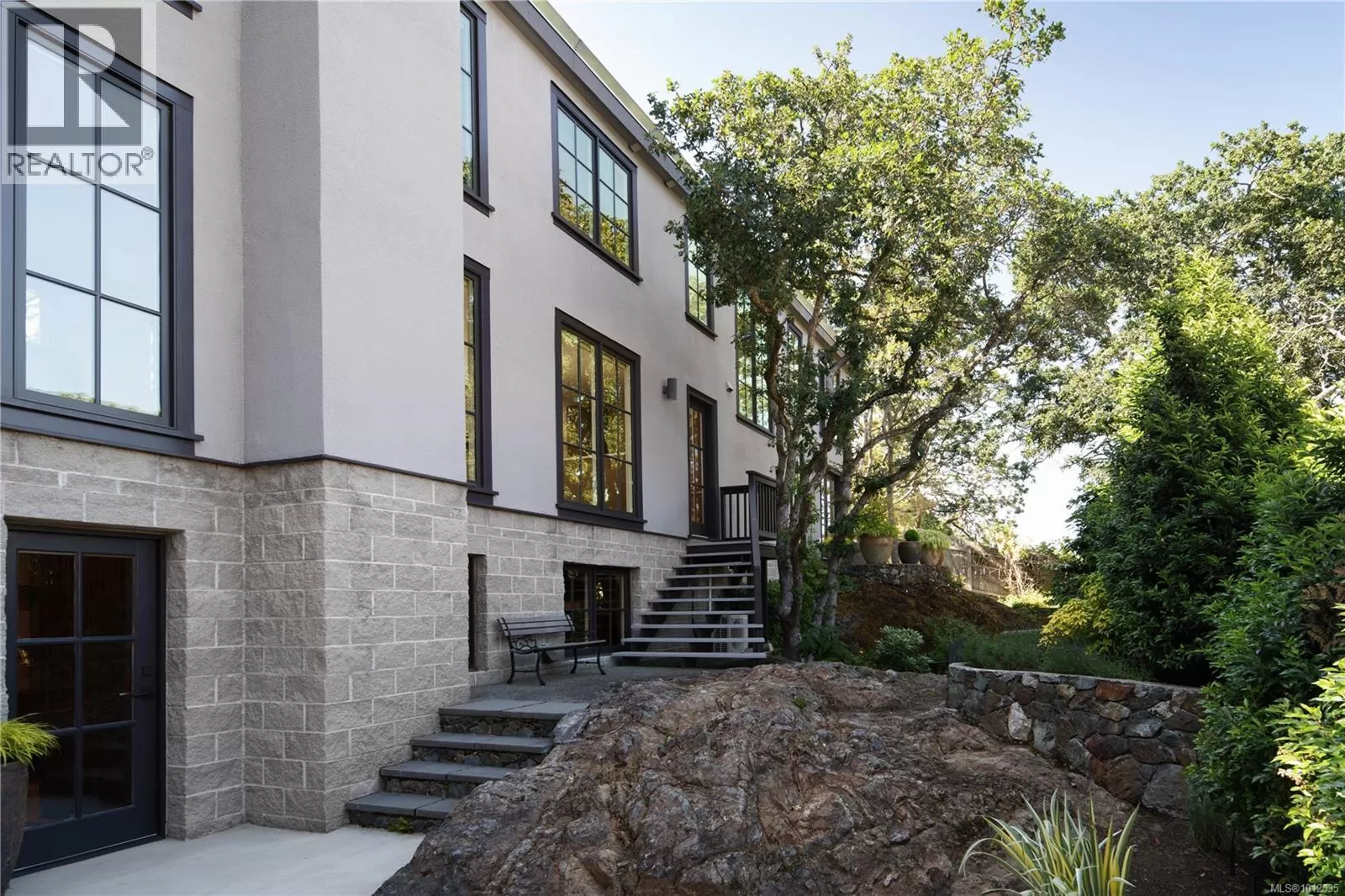 Situated in the heart of Oak Bay, 2175 Granite presents over 2,500 sqft of elegantly reimagined living space across 3 levels. Meticulously renovated in 2022, this 3BD 4BA home harmonizes modern systems w/ timeless luxury. The open-concept main floor framed by expansive Loewen wood windows & west-facing French doors invites abundant natural light & fresh air. Rich hardwood floors w/ radiant in-floor hydronic heating & a gas fireplace ensure year-round comfort. The gourmet kitchen, appointed with a Fisher & Paykel refrigerator, Wolf oven and induction cooktop and large pantry, is ideal for the culinary enthusiast. Upstairs, the serene primary suite offers a 5-piece ensuite, large WIC & tranquil tree-top views, accompanied by a second bedroom w/ 3pc ensuite. The lower level media room featuring Bose surround sound system is perfect for entertaining or a relaxing evening in. Minutes away from beaches, parks, schools, this is a rare opportunity in today's market. (id:27476)