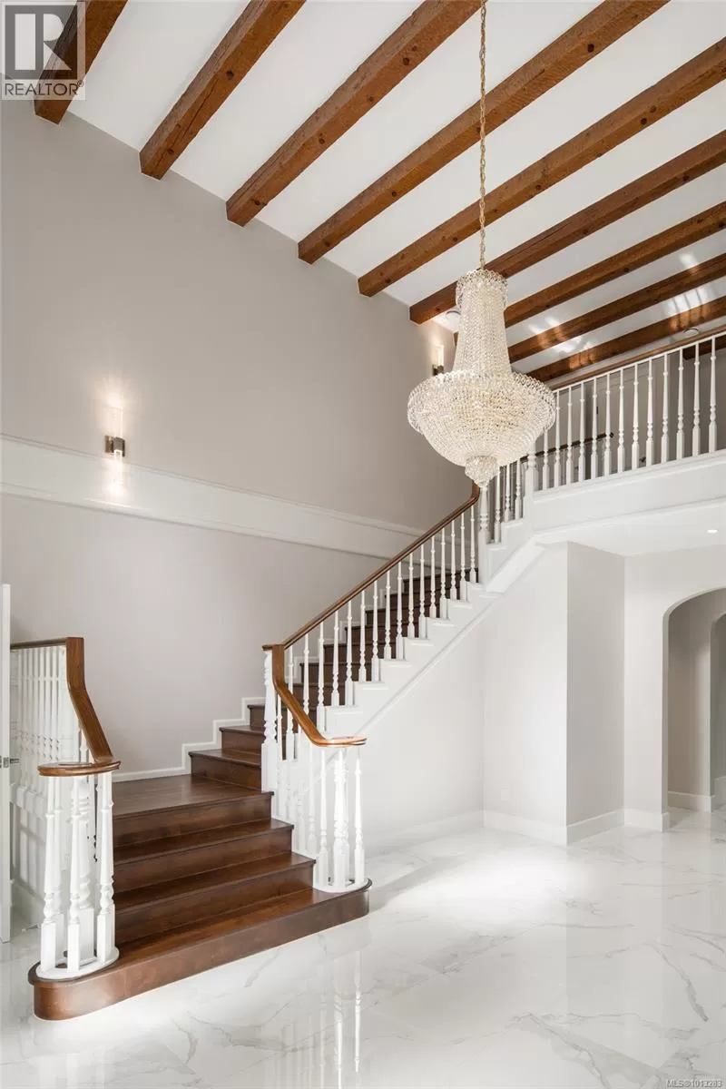 Located in the coveted South Oak Bay community, this grand residence offers nearly 4,800 square feet of elegant living space on three levels, set on a beautifully landscaped and private 0.33-acre lot. A striking foyer with an 18-foot ceiling sets the tone and leads to an oversized kitchen and dining area with soaring 14-foot ceilings, perfect for gatherings. The impressive 30x17-foot formal living room, designed for entertaining, features a stately fireplace, one of three throughout the home. Upstairs, there are three spacious bedrooms along with a bonus room that has its own separate exterior entrance above the double garage. This space is ideal for guests, a studio, or a home office. The home is move-in ready and showcases quality craftsmanship and thoughtful design, while also offering the potential for those who wish to update or personalize the décor to suit their style. The flat east-facing backyard and large south-facing patio off the kitchen provide inviting spaces to enjoy sunny afternoons and quiet evenings. The mature and well-tended landscaping enhances the beauty and privacy of the property. This distinguished home presents an exceptional opportunity to live in one of Victoriaâs most desirable neighbourhoods, by Anderson Hill Park and just steps from the Victoria Golf Club. The Oak Bay Marina, scenic Beach Drive, and the charming shops and cafés of Oak Bay Village are also close at hand. (id:27476)