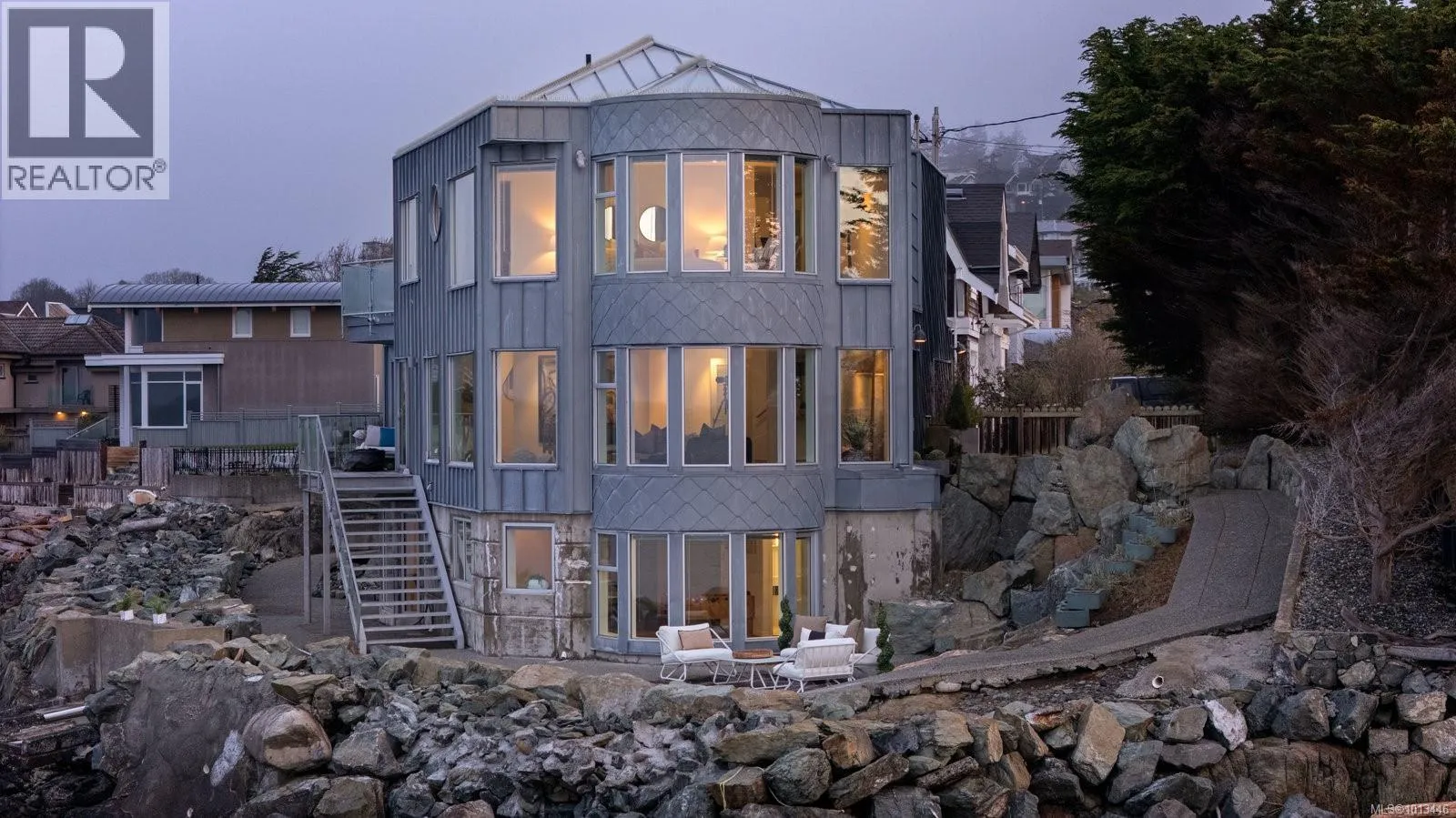 2179 Crescent is truly one of the most unique homes on southern Vancouver Island. Perched at the end of a quiet cul-de-sac, this incredible southwest-facing oceanfront home offers jaw-dropping 270° views, and incredible proximity to the ocean. This modern property is designed for effortless coastal living; the sun-drenched interior features an open-concept great room, wide-plank French oak floors, custom contemporary cabinetry, as well as upscale appliances in the kitchen. Upstairs youâll find the primary suite which feels like a luxury retreat (with a WI closet and a beautiful ensuite with ocean views from every angle), as well as two additional bedrooms. The walk-out lower level offers an enormous games room, office, and media room providing flexible living. This home is nearly maintenance-free with an entirely zinc exterior, lpe decking, and aluminum railings. With over 160 feet of waterfront, in an ever-desirable corner of the city, this is a spectacular home which canât be missed. (id:27476)