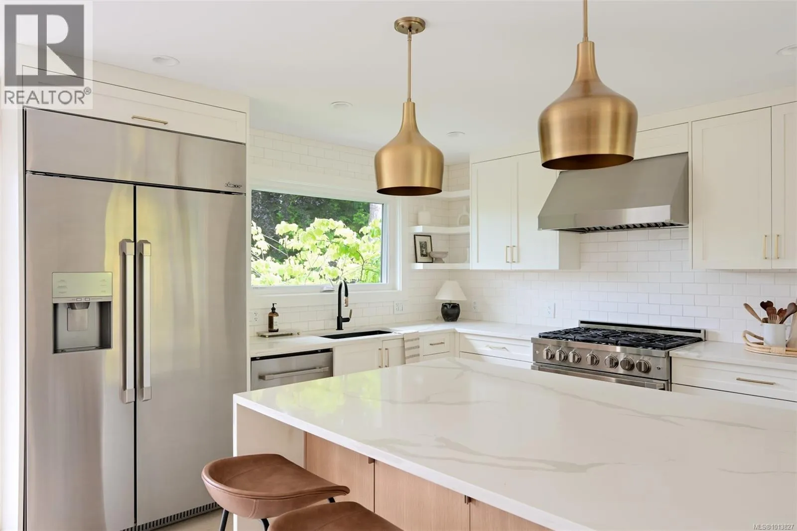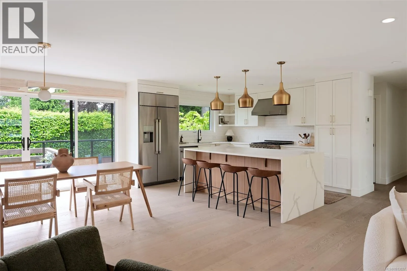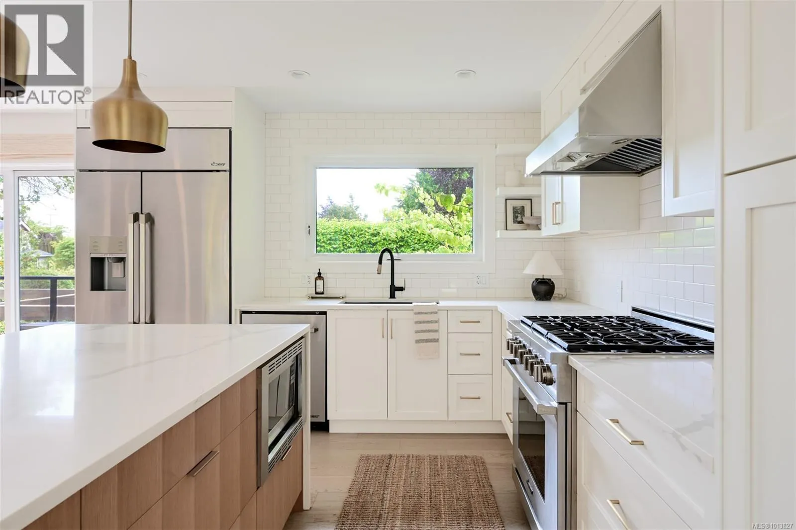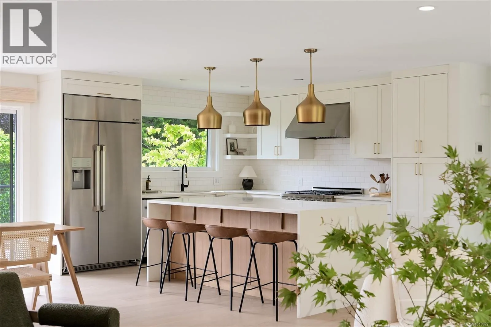 Located in the heart of Oak Bay, this beautifully updated five-bedroom, three-bathroom home offers the perfect blend of design, function, and lifestyle. Set on a peaceful cul-de-sac just moments from top-rated schools, beaches, and the charming boutiques and cafés of Oak Bay Village, this residence delivers true walkable luxury. The expansive floorplan flows seamlessly into a massive south-facing backyardâideal for hosting family and friends. A generous double garage, stunning new gas fireplace surrounded by custom white oak cabinetry, and curated designer lighting throughout add to the homeâs elevated appeal. Designed by award-winning Raubyn Rothschild of Rothschild West and featured in Spruce Magazine, every inch of this home reflects thoughtful craftsmanship and timeless style. Downstairs, the flexible lower level offers a media room and either a guest suite or a 1â2 bedroom in-law or nanny spaceâperfect for multigenerational living. With recent updates complete, this move-in-ready home is your opportunity to enjoy the best of Oak Bay living with nothing left to do but settle in. (id:27476)