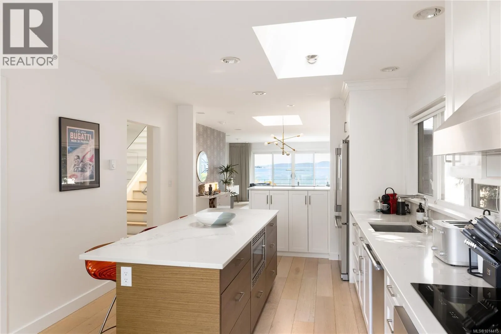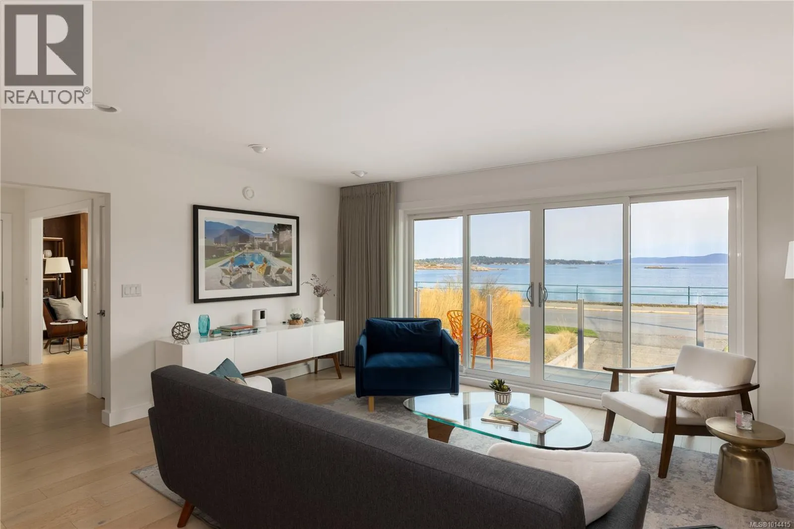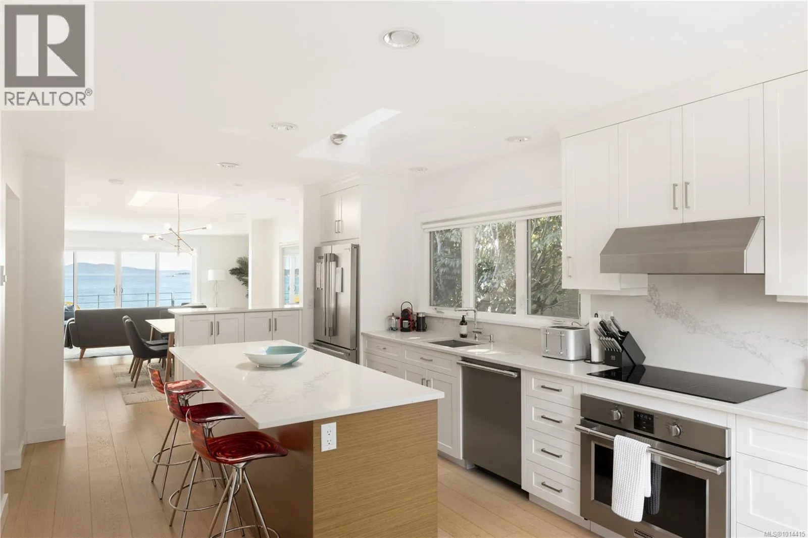 Experience oceanfront living at its finest with this fully reimagined Zebra Design residence on iconic Beach Drive. Encompassing over 3,100 sq. ft., this home showcases panoramic water views from all principal rooms. The main level offers an open-concept living, dining, and kitchen space bathed in natural light, complemented by wide-plank floors, skylights, and floor-to-ceiling sliders opening to the oceanview patio. Two bedrooms, a full bath, and laundry complete the level. Upstairs, the primary retreat features vaulted ceilings, dual walk-in closets, spa-inspired ensuite, and a private sitting area with sweeping views, perfect for a home office or enjoying a quiet moment. The lower level provides versatility with a self-contained 1-bedroom suite, and abundant storage. Outdoors, enjoy a west-facing backyard oasis with lush landscaping and a pergola for private entertaining. A double tandem garage plus lane access ensures ample parking. Steps to Oak Bay Marina, Victoria Golf Club, and Oak Bay Beach Hotel, this is a rare coastal offering. (id:27476)