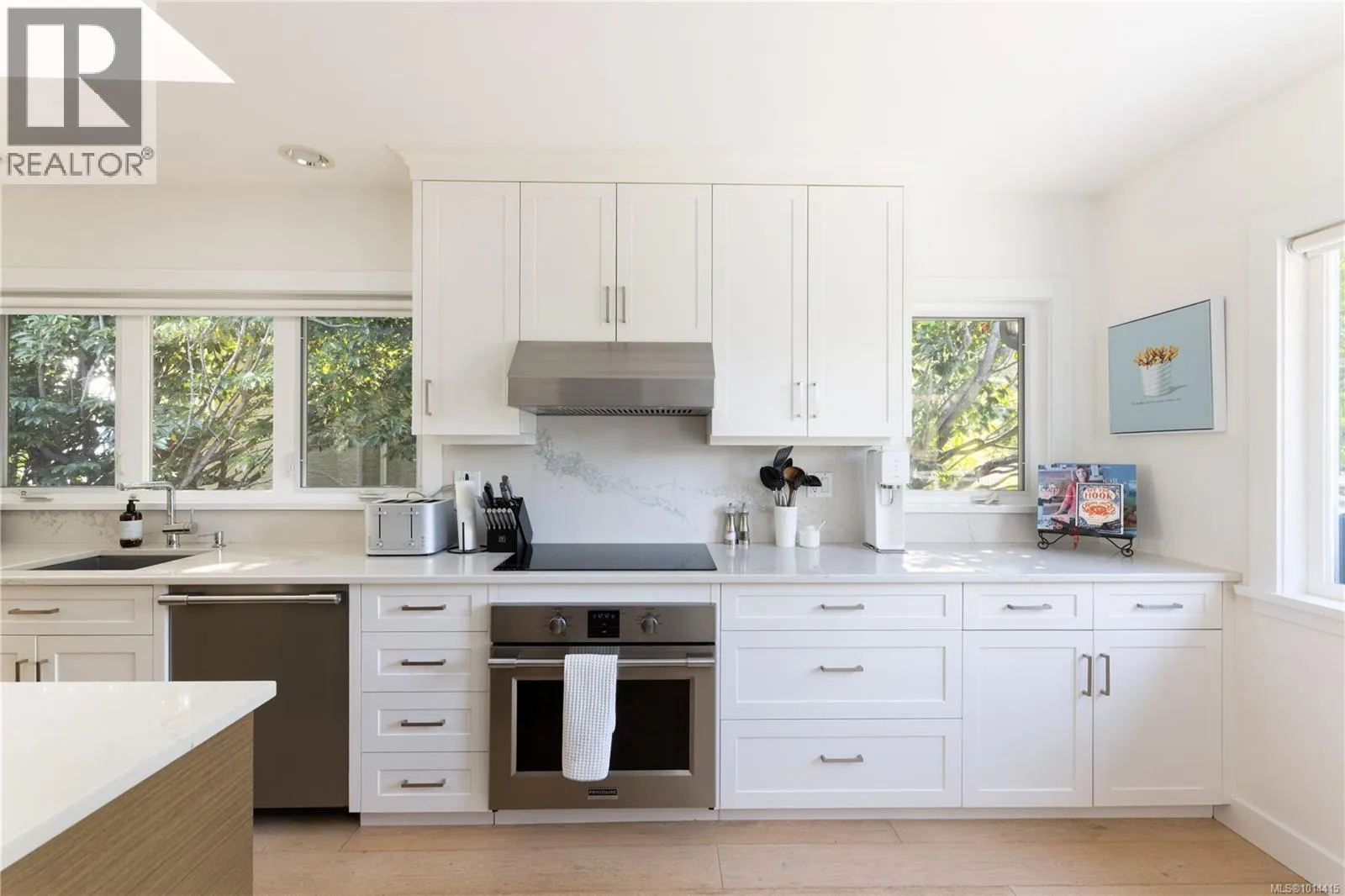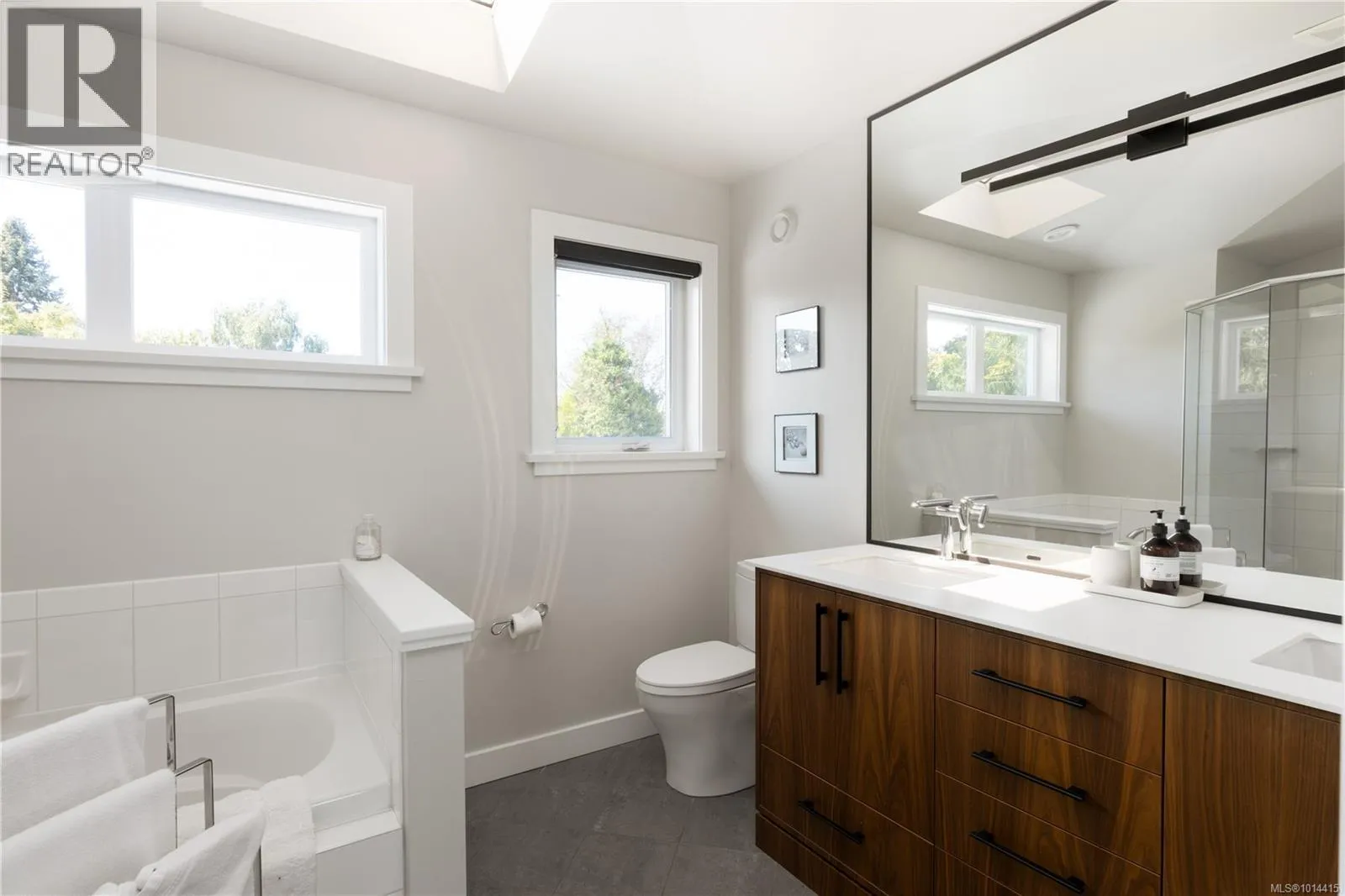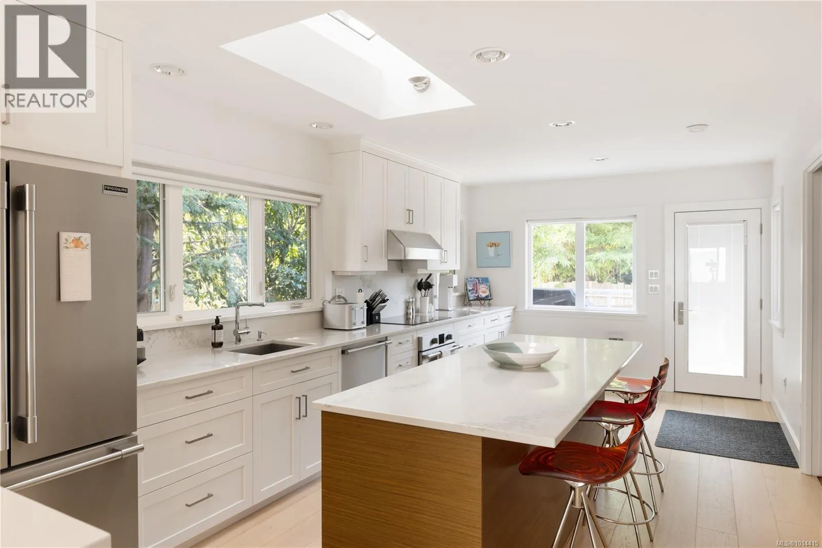 Experience oceanfront living at its finest with this fully reimagined Zebra Design residence on iconic Beach Drive. Encompassing over 3,100 sq. ft., this home showcases panoramic water views from all principal rooms. The main level offers an open-concept living, dining, and kitchen space bathed in natural light, complemented by wide-plank floors, skylights, and floor-to-ceiling sliders opening to the oceanview patio. Two bedrooms, a full bath, and laundry complete the level. Upstairs, the primary retreat features vaulted ceilings, dual walk-in closets, spa-inspired ensuite, and a private sitting area with sweeping views, perfect for a home office or enjoying a quiet moment. The lower level provides versatility with a self-contained 1-bedroom suite, and abundant storage. Outdoors, enjoy a west-facing backyard oasis with lush landscaping and a pergola for private entertaining. A double tandem garage plus lane access ensures ample parking. Steps to Oak Bay Marina, Victoria Golf Club, and Oak Bay Beach Hotel, this is a rare coastal offering. (id:27476)