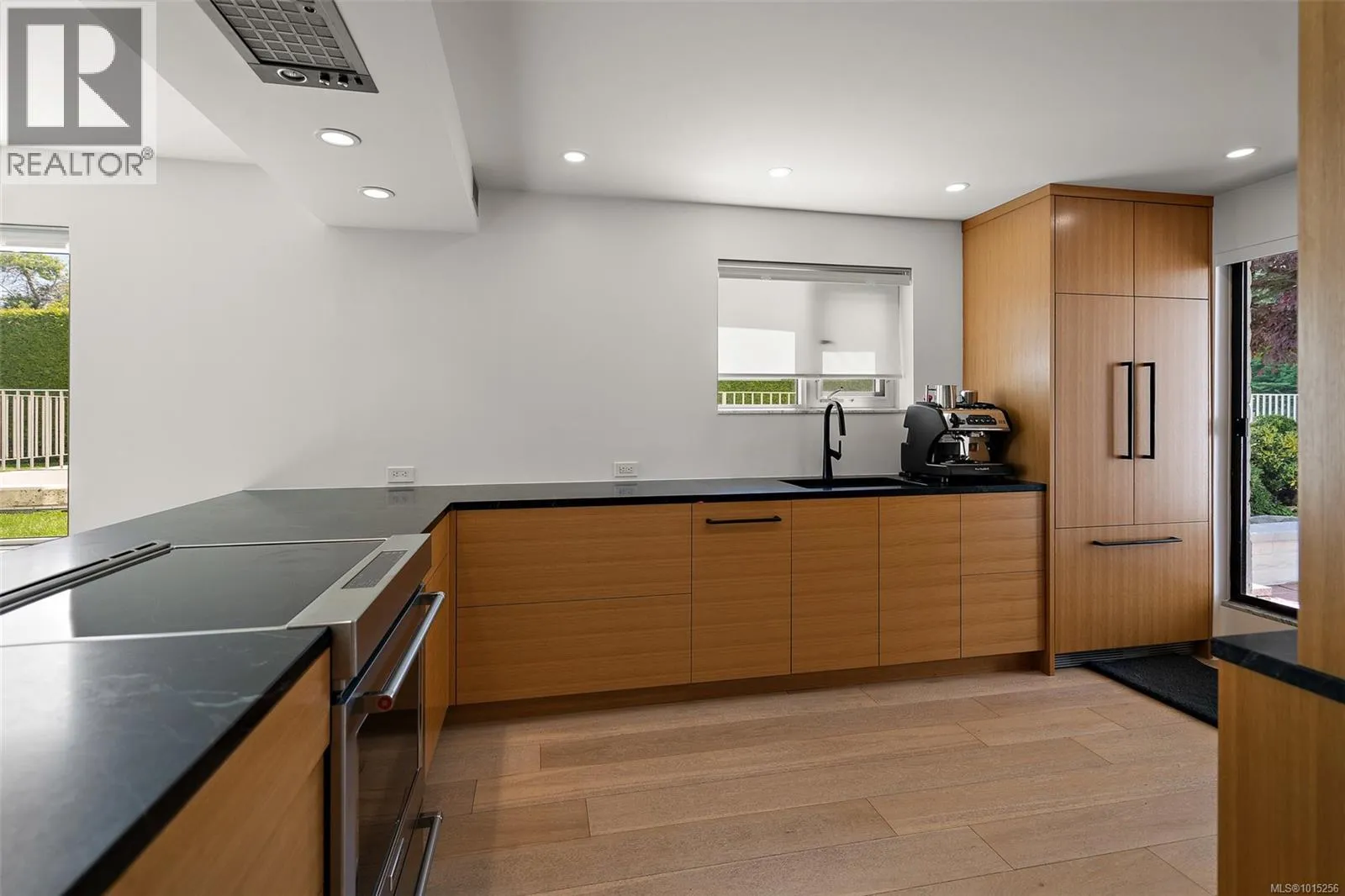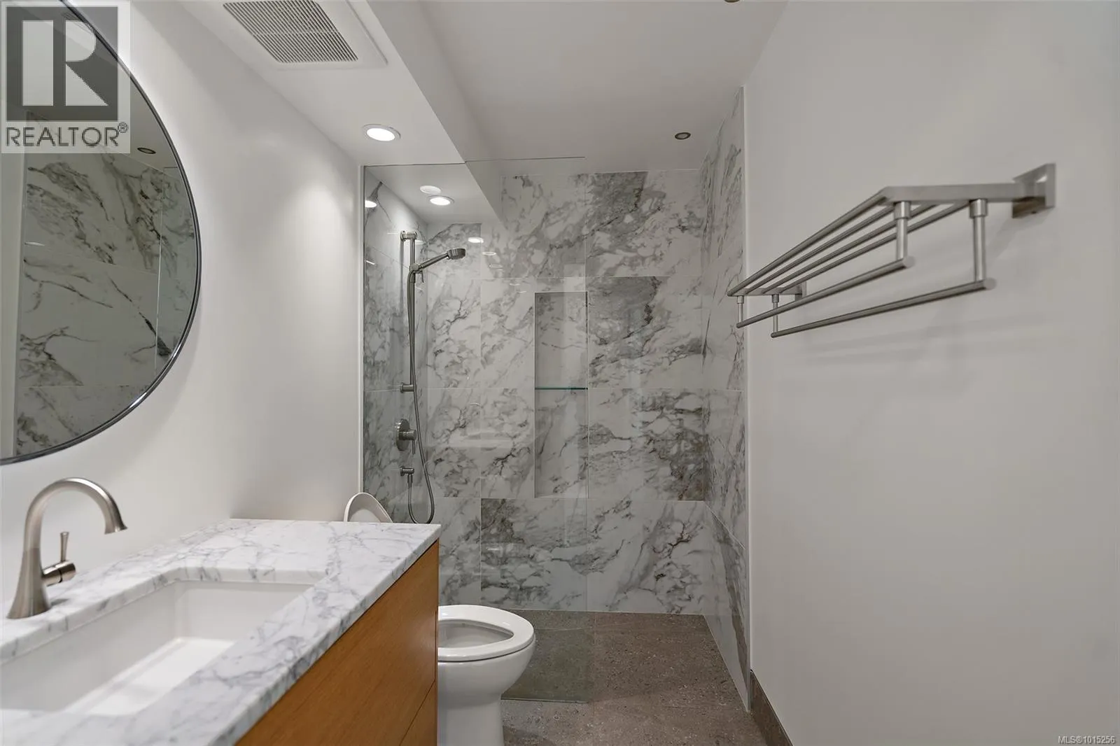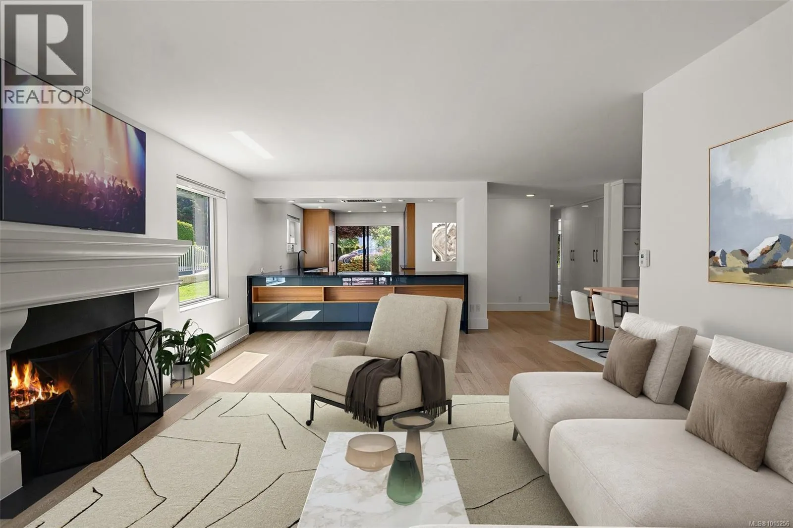 A rare offering in South Oak Bay. This beautifully updated 2 bedroom, 2 bathroom ground-floor corner suite combines refined design with unbeatable location. Featuring over 1,460 sqft of elegant living space, the home offers custom cabinetry, stone countertops, wood floors and a flowing open layout. The kitchen is both stylish and functional, opening onto a bright living area and two private patios. The spacious primary suite includes a walk-in dressing area and spa-like ensuite with heated floors and a soaker tub. A second bedroom and full bathroom offer flexibility for guests or workspace. This home includes two secure underground parking stalls with EV charger, separate storage, and ground-level access in a well-maintained and exceptionally well managed concrete and steel building. Just steps to Oak Bay Village, the Marina, Victoria Golf Club, and scenic beachesâthis is a chance to enjoy the best of coastal living in one of Victoriaâs most desirable communities. (id:27476)