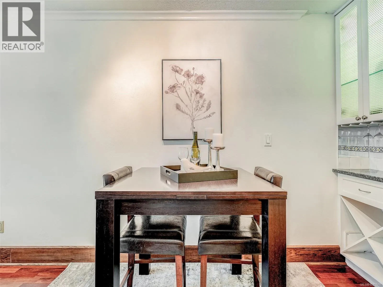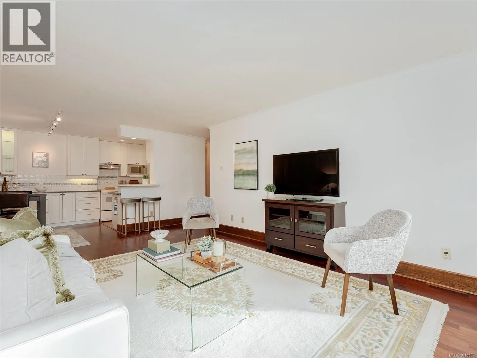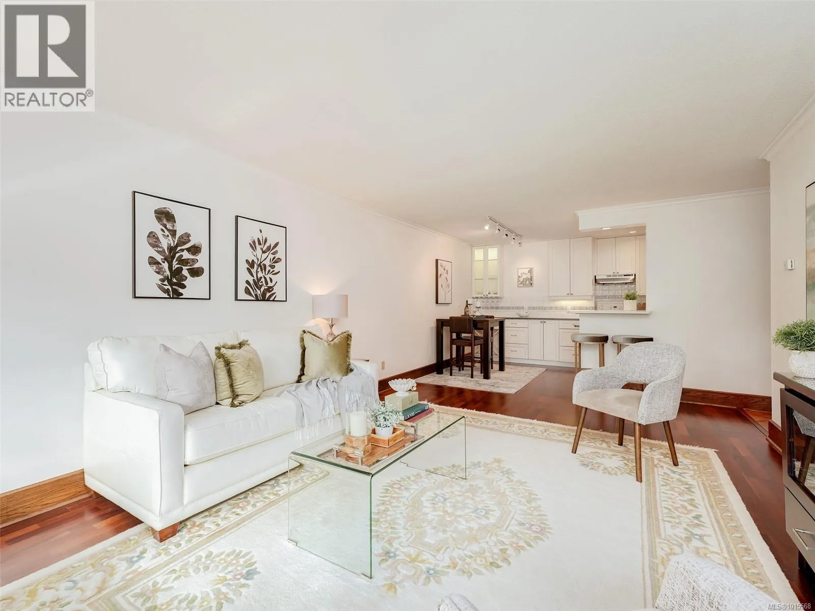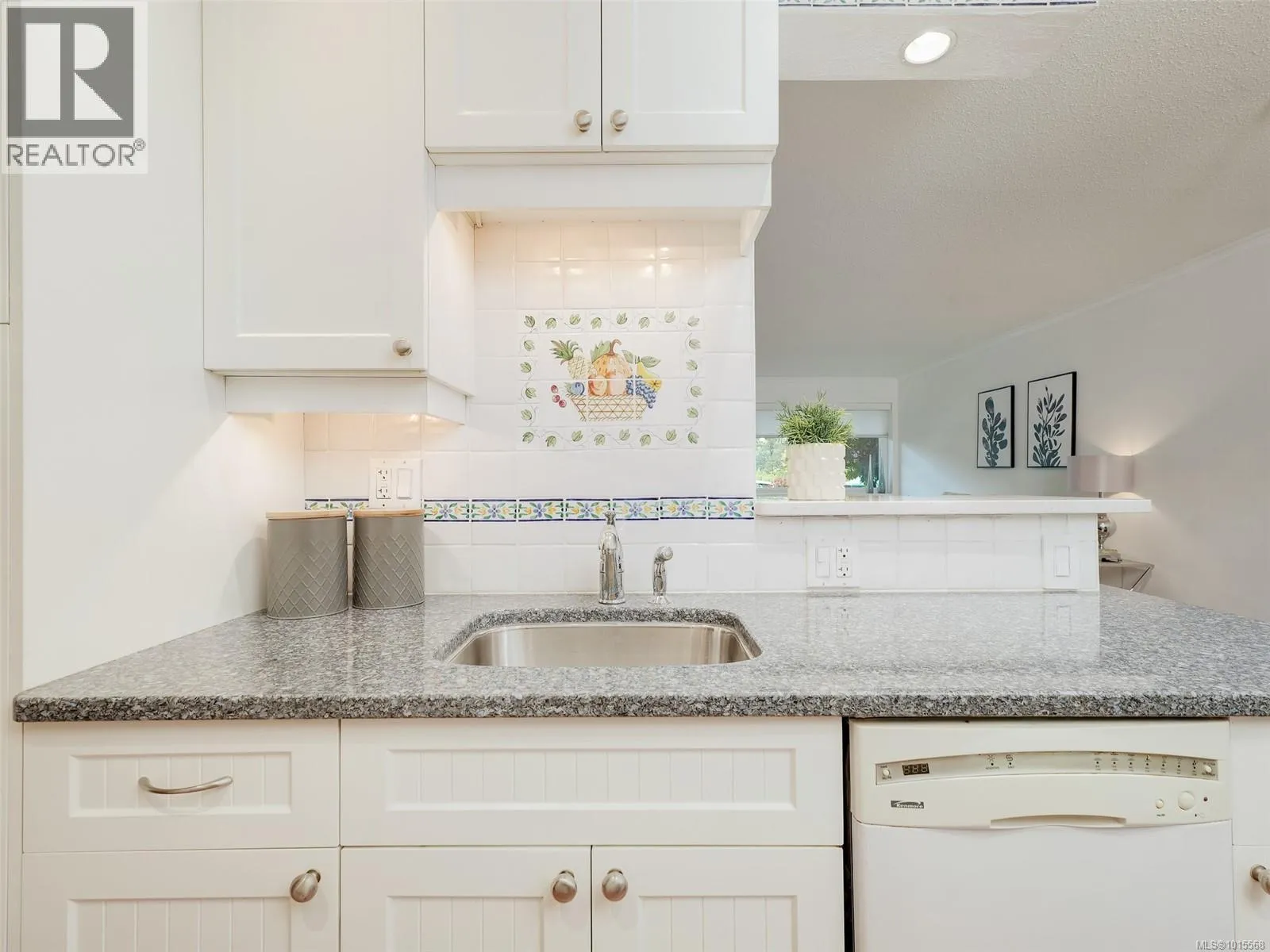 Can life get any better? Not if you're living the effortless & affordable Oak Bay lifestyle this lovely condo offers! Bright, open & updated, this one bedroom ground level unit means no elevator for you with easy access to the outdoors, laundry & storage lockers are right down the hall. South facing with peaceful green outlooks, renovated kitchen with quartz tops, updated bathroom with walk in shower, an open living area with space for a work station or Muphy bed for guests, easy care resilient flooring throughout & plenty of storage. On a quiet street just off Oak Bay Ave, you'll stroll to all the vibrant Village offers including shops, amenities, dining, the library, Rec Centres, beaches & public transit. Granite House is a highly sought after well managed & fiscally responsible building with like minded owners (newer windows & boiler system, 2025 Depreciation Report available). IMMEDIATE POSSESSION, parking stall, locker, heat & hot water included (id:27476)