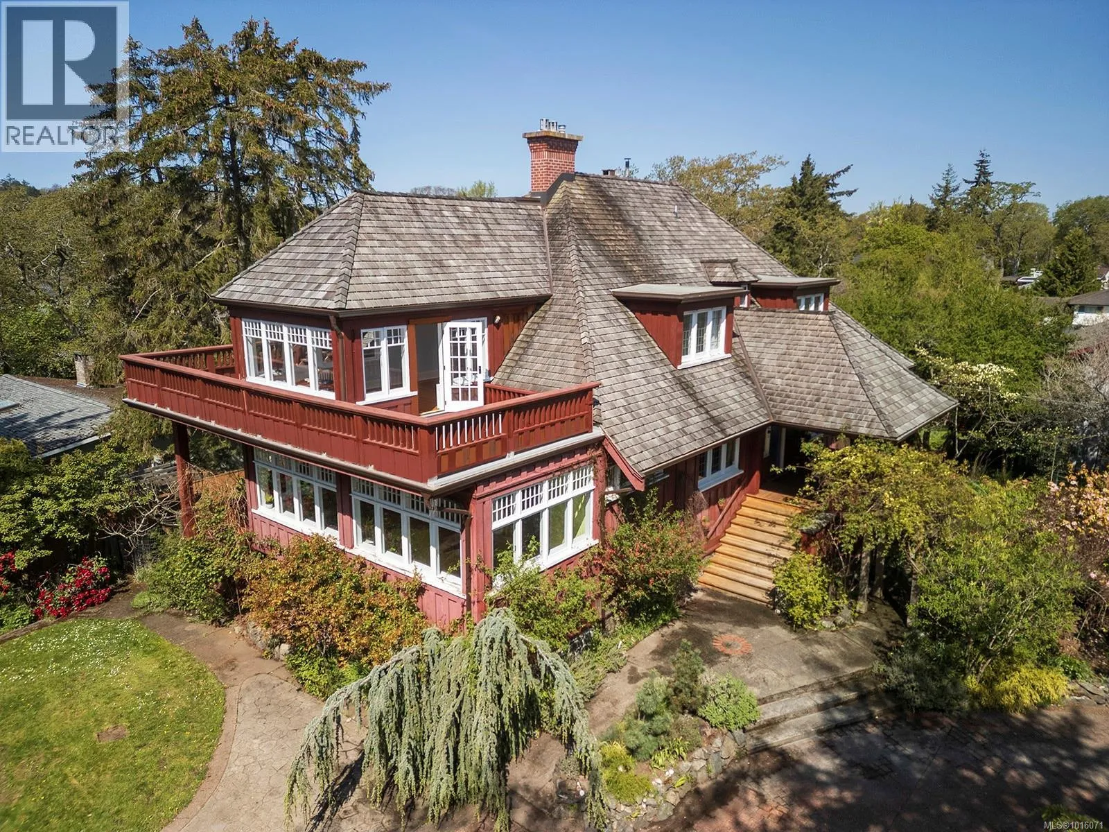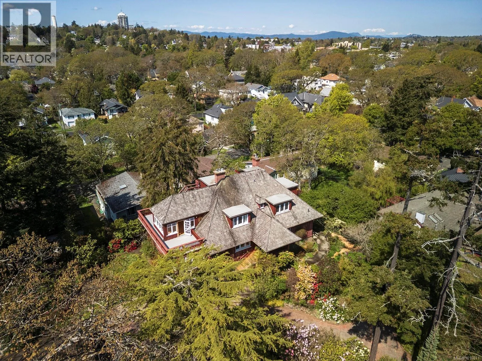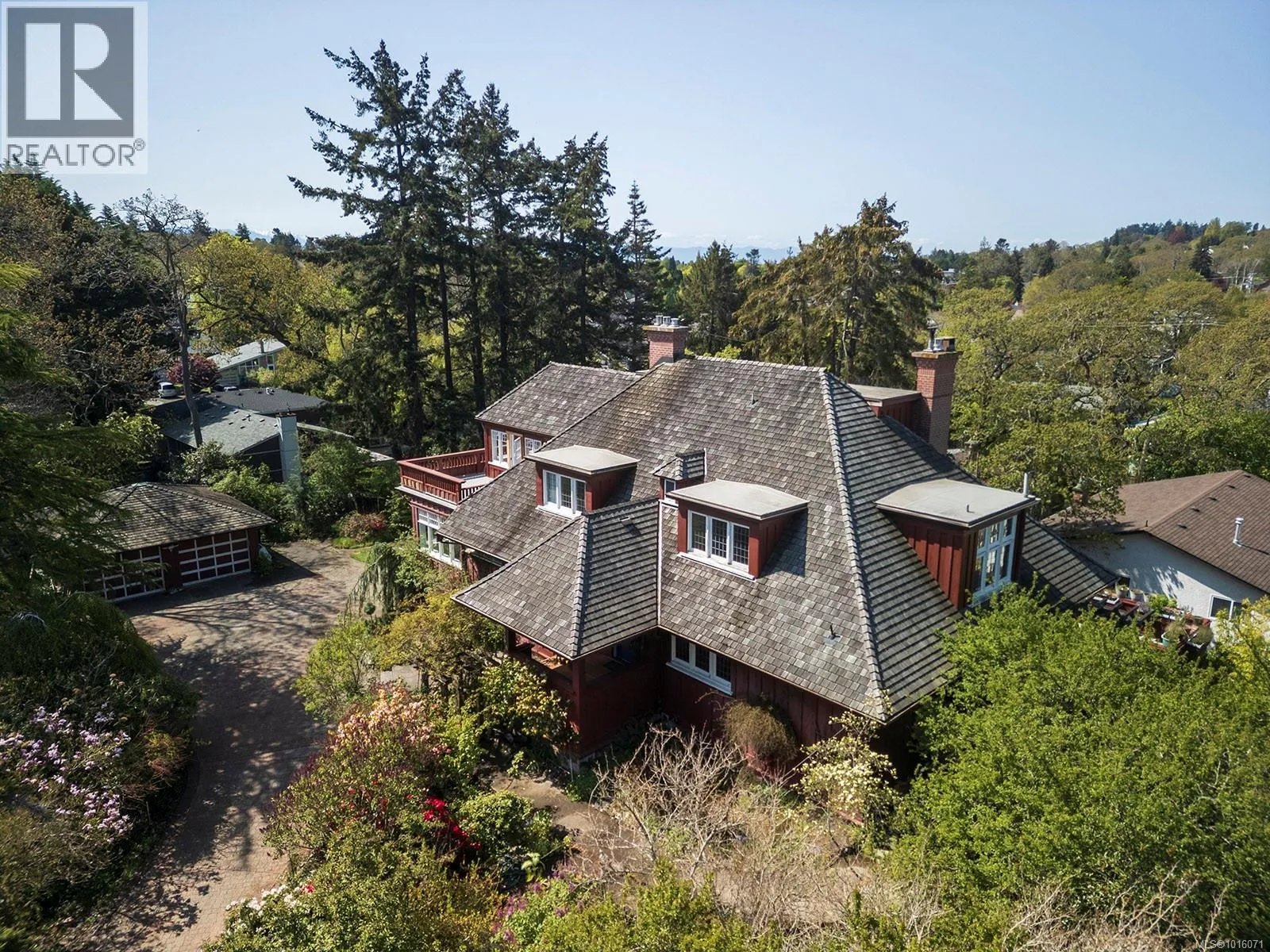 Open House Sunday, October 26th 1â3pm. Designed in 1911 by celebrated architect Samuel Maclure for the Shaw family, this landmark residence seamlessly blends architectural pedigree with modern livability. Tucked down a long, private driveway and well removed from the bustleâyet just a 10-minute walk to Oak Bay Villageâit offers the rare feel of a secluded country house in the heart of the city. Set on over half an acre of mature, park-like gardens, the home is remarkable in scale, with over 5,600 sq. ft. of finished living space. True to Maclureâs philosophy that a home should rise naturally from its surroundings, the residence sits proudly on a granite outcropping and foundation. Inside, the home retains many original features, including leaded-glass windows, rewired period light fixtures, stained-glass panels in several rooms, and a cedar exterior believed to have been milled from trees on the estate. A thoughtful Maclure-era renovation added two charming sunrooms and a south-facing deck that captures the afternoon light. Modern updates have been undertaken with care, including a reimagined kitchen, upgraded electrical systems, a 2012 cedar roof, hot tub, yoga/art loft, and a currently vacant income-generating suite that offers flexibility for multi-generational living or mortgage helper. Offered below its 2025 assessed value, this is an exceptional opportunity to acquire an architecturally significant property of rare size, provenance, and character. For those who value timeless design, quality craftsmanship, and a tranquil garden escape just steps from the village, this home delivers on every level. (id:27476)