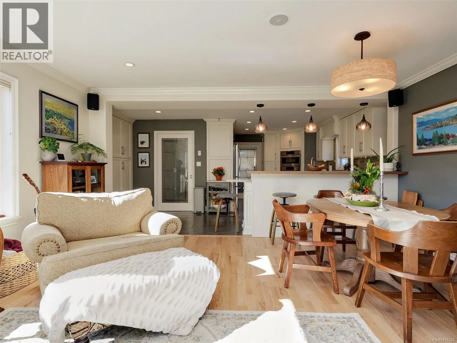 Backing onto the woodlands of the ninth tee at Uplands Golf Course, this beautifully updated 4,000 sq. ft. Cape Codâinspired character home sits on a sunny, private, and fully fenced 16,800 sq. ft. lot. The main floor is perfect for entertaining with a formal living room featuring a wood-burning fireplace, elegant dining room with custom built-ins, an updated kitchen, and a bright family room. French doors open to expansive decks and a wide-open lawn ideal for outdoor living. Upstairs, a striking staircase leads to three bedrooms, two baths, and a laundry room. The primary suite offers a modern ensuite, serene yard views, and a private south-facing deck. The lower level includes a media room, guest bedroom, and a bright one-bedroom suite with its own kitchen. Upgrades include natural gas heat, hot water on demand, a Wolf cooktop, double Bosch ovens, gas fireplace, and a heat pump that cools the upper floor. Additional features include a home office, workshop, and large garageâsimply move in and enjoy this cherished family home. (id:27476)