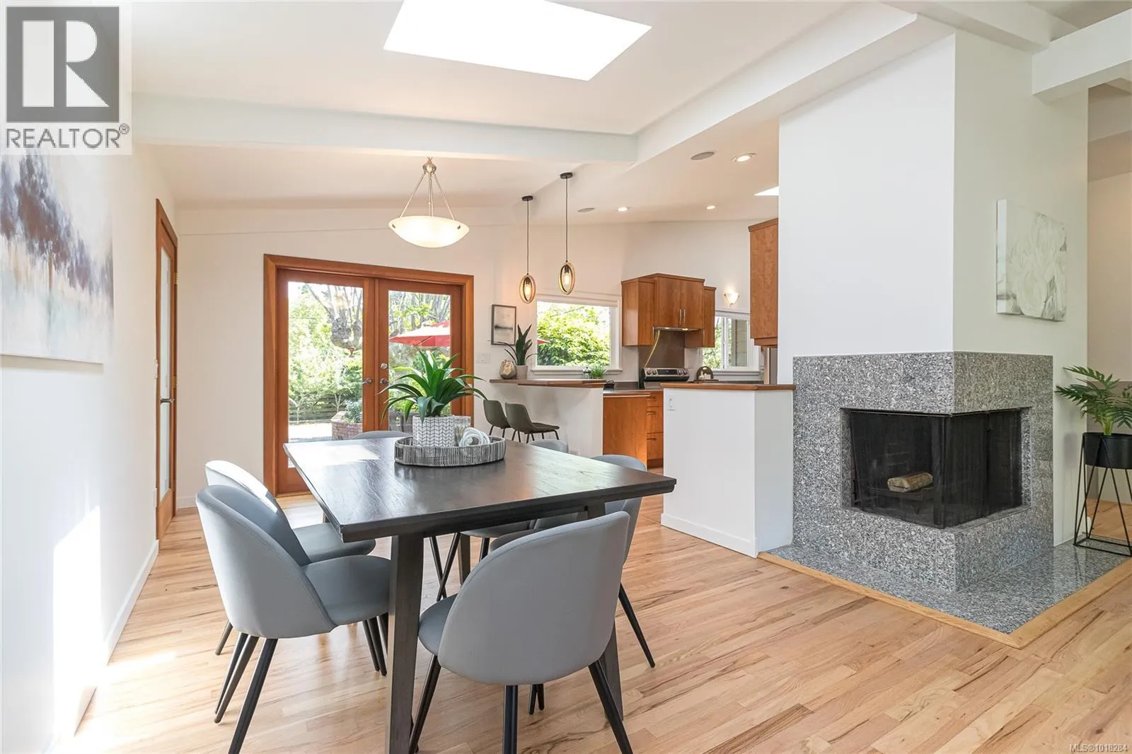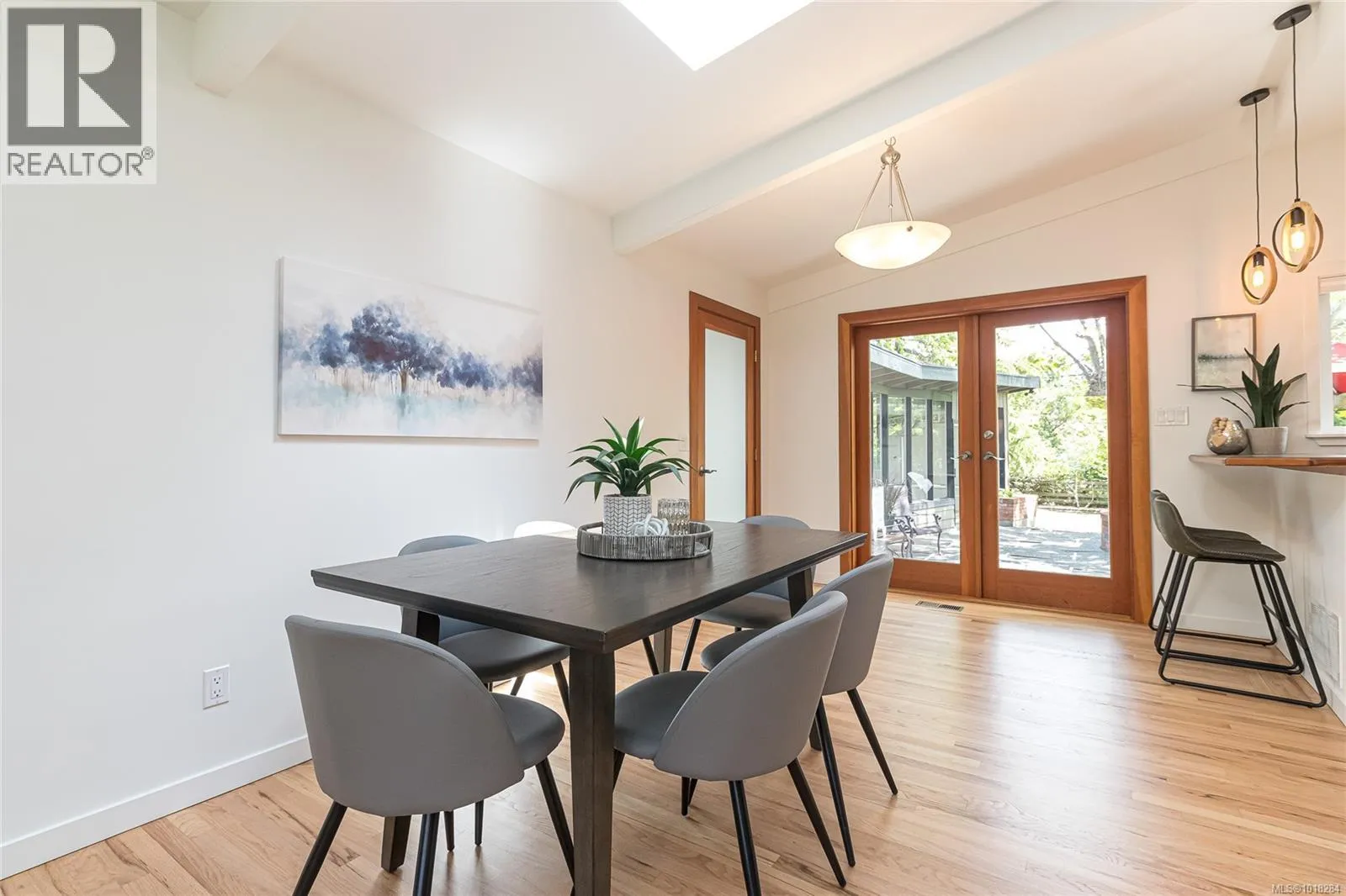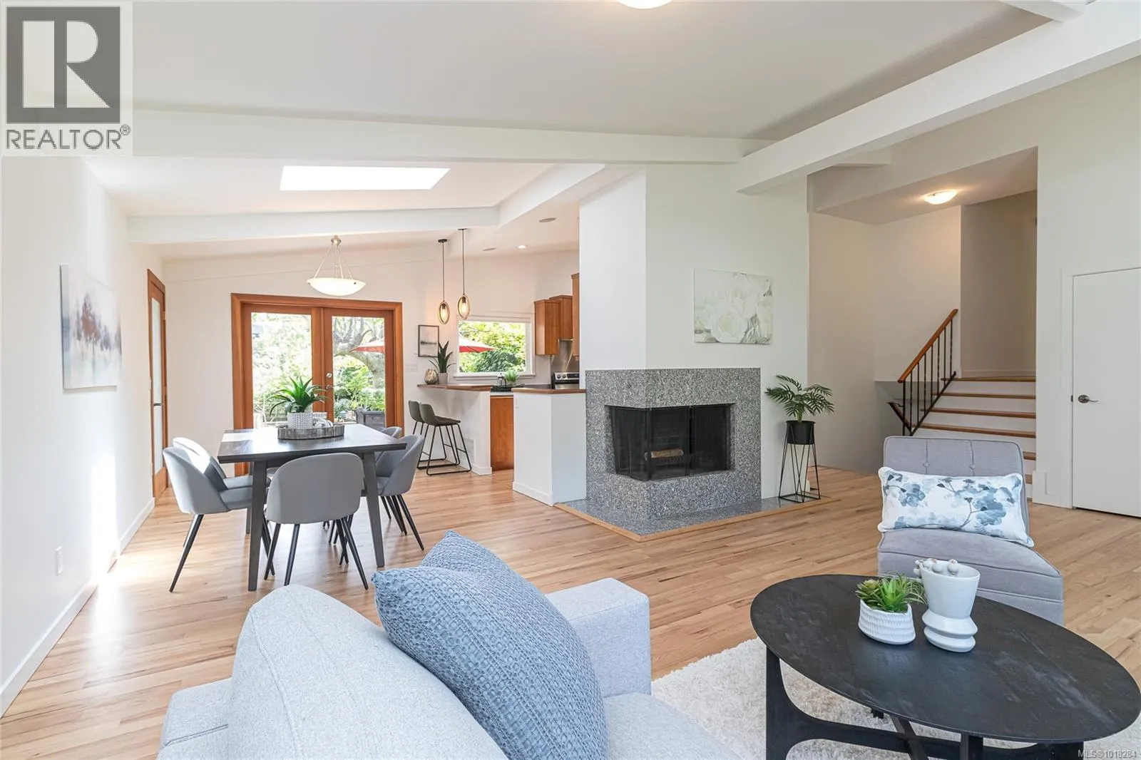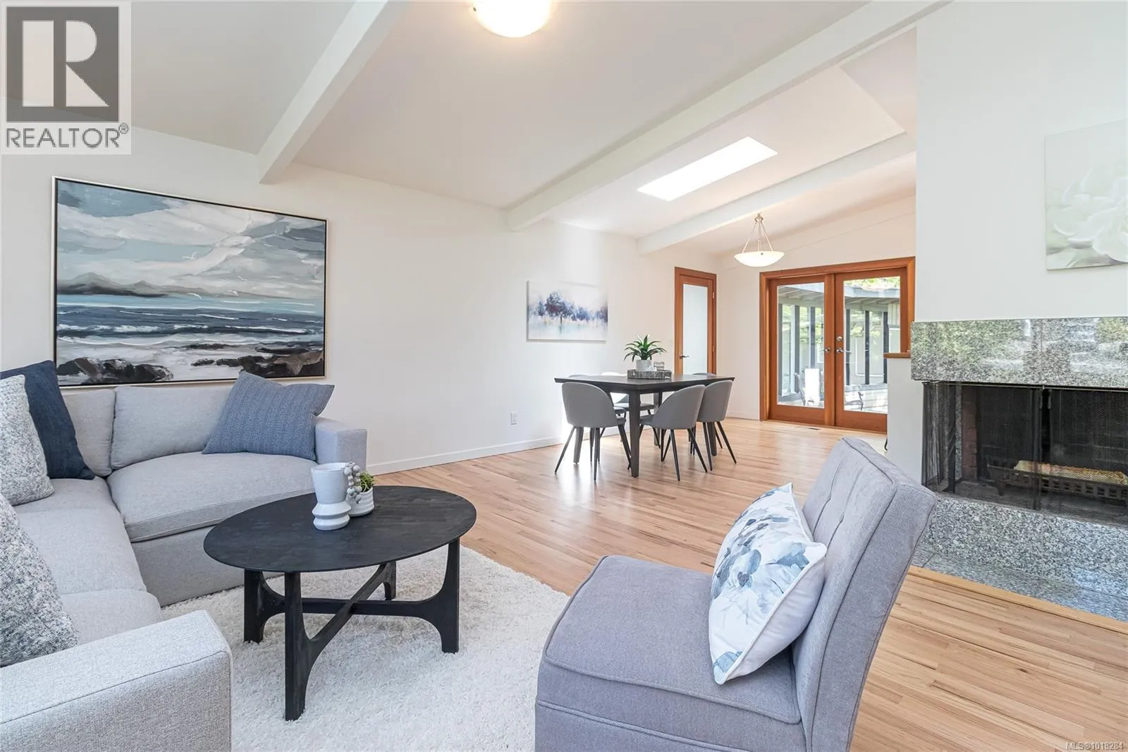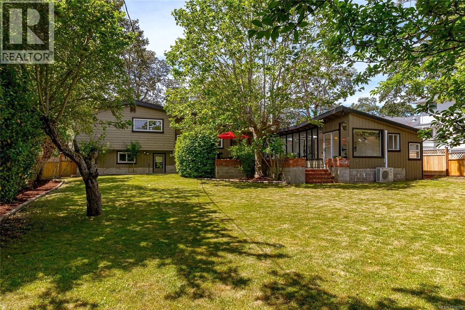 This beautifully updated mid-century modern home blends style and function with its crisp architectural lines, vaulted ceilings, and thoughtfully laid-out floor plan. The main living area features newly refinished oak hardwood floors, creating a warm and inviting atmosphere. The generous kitchen, equipped with stainless steel appliances, is perfect for both casual meals and entertaining guests. A spacious mudroom and a flexible area on the main floor provide options for a family room, home office, or studio, adding versatility to the home. Upstairs, you'll find a large primary bedroom with an updated ensuite, along with a four-piece main bathroom and convenient laundry facilities. The lower level offers excellent separation, with an additional bedroom, bathroom and living area, making it ideal for teenagers or in-laws seeking their own space. Step outside to enjoy barbecues on the sunny patio or relax by the cozy wood-burning fireplace indoors. The fully fenced yard is perfect for children and pets to play safely. Year-round comfort is ensured by two heat pumps, and thereâs a single carport plus plenty of storage. This move-in-ready home is in great condition. In a prime location, it's just steps from UVic, Mt. Tolmie, and Henderson Rec Centre, with Cadboro Bay Village and Gyro Beach only minutes away. Truly a fantastic home in an excellent neighbourhood. (id:27476)