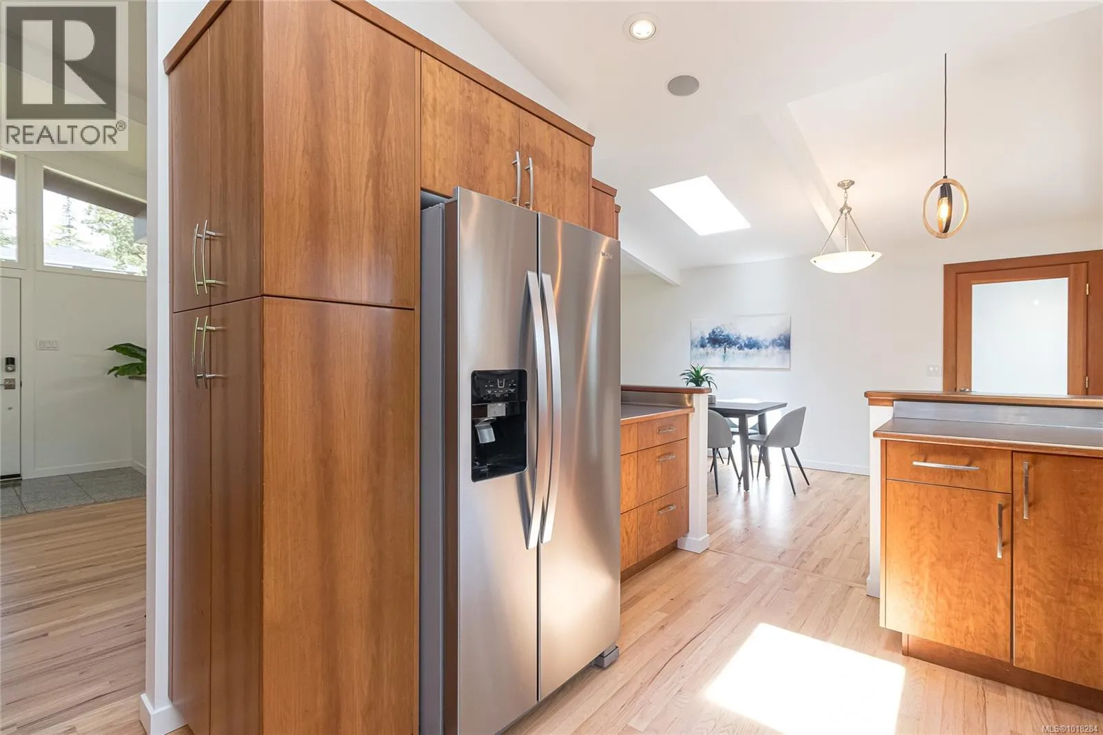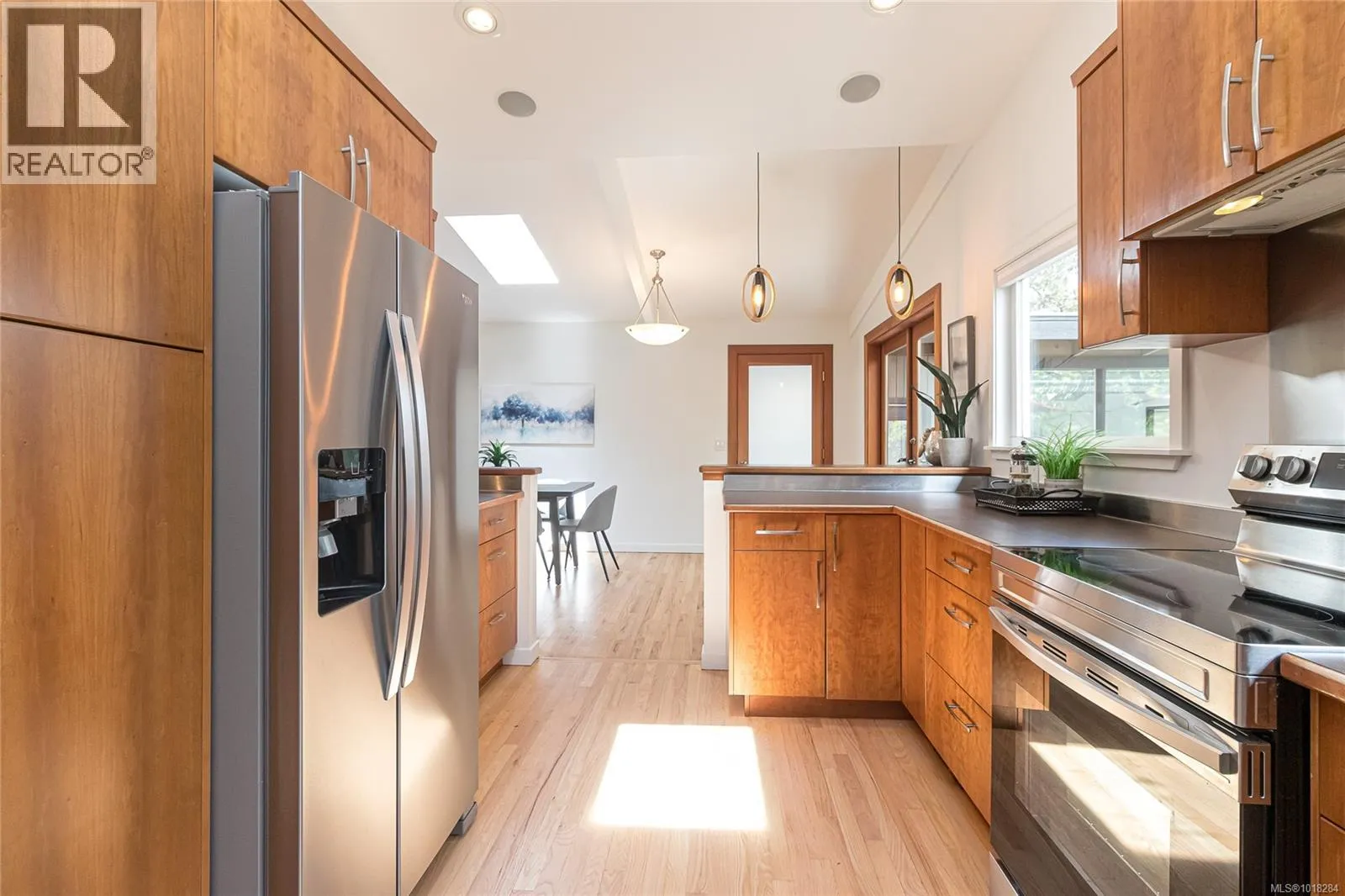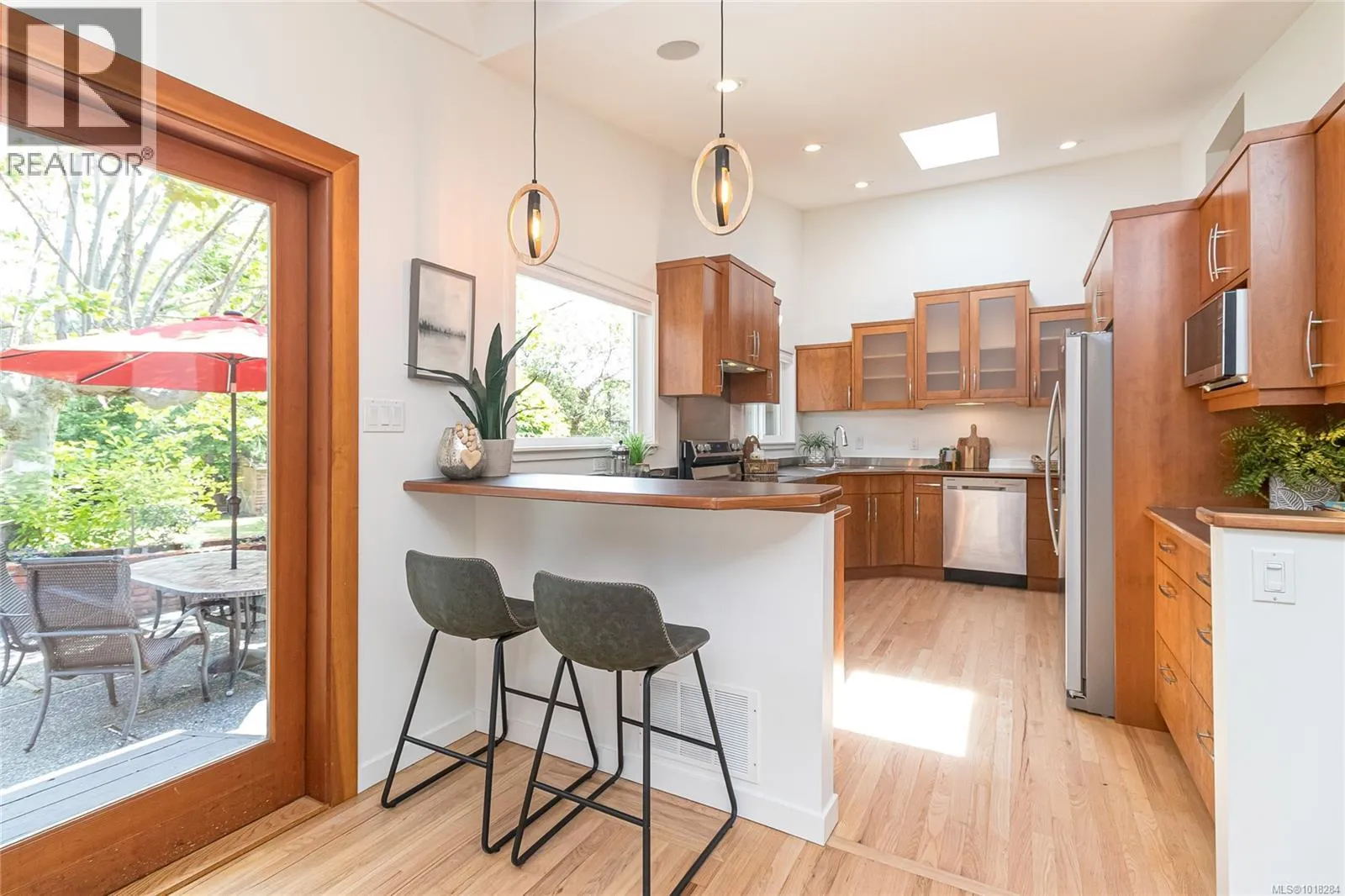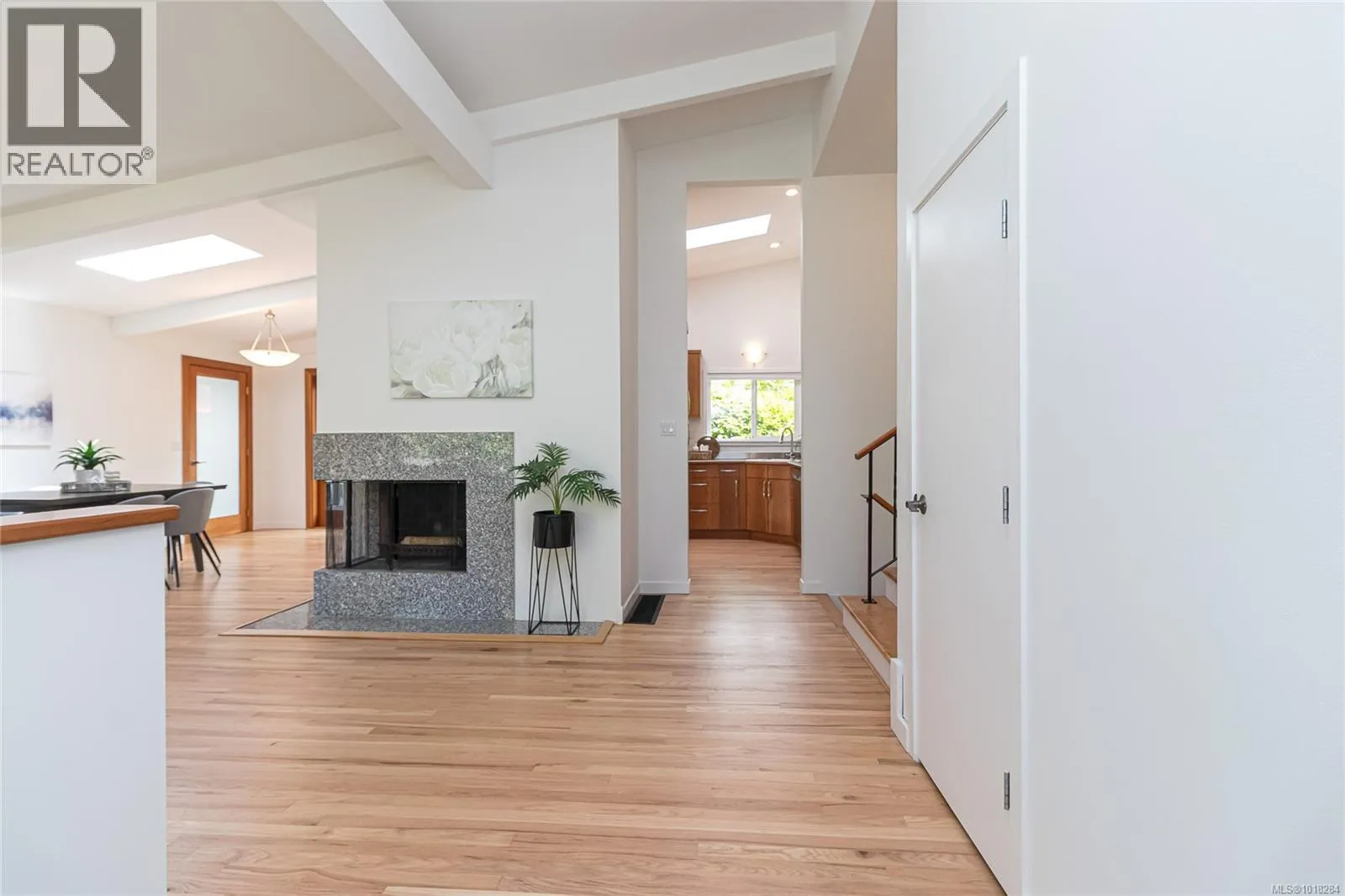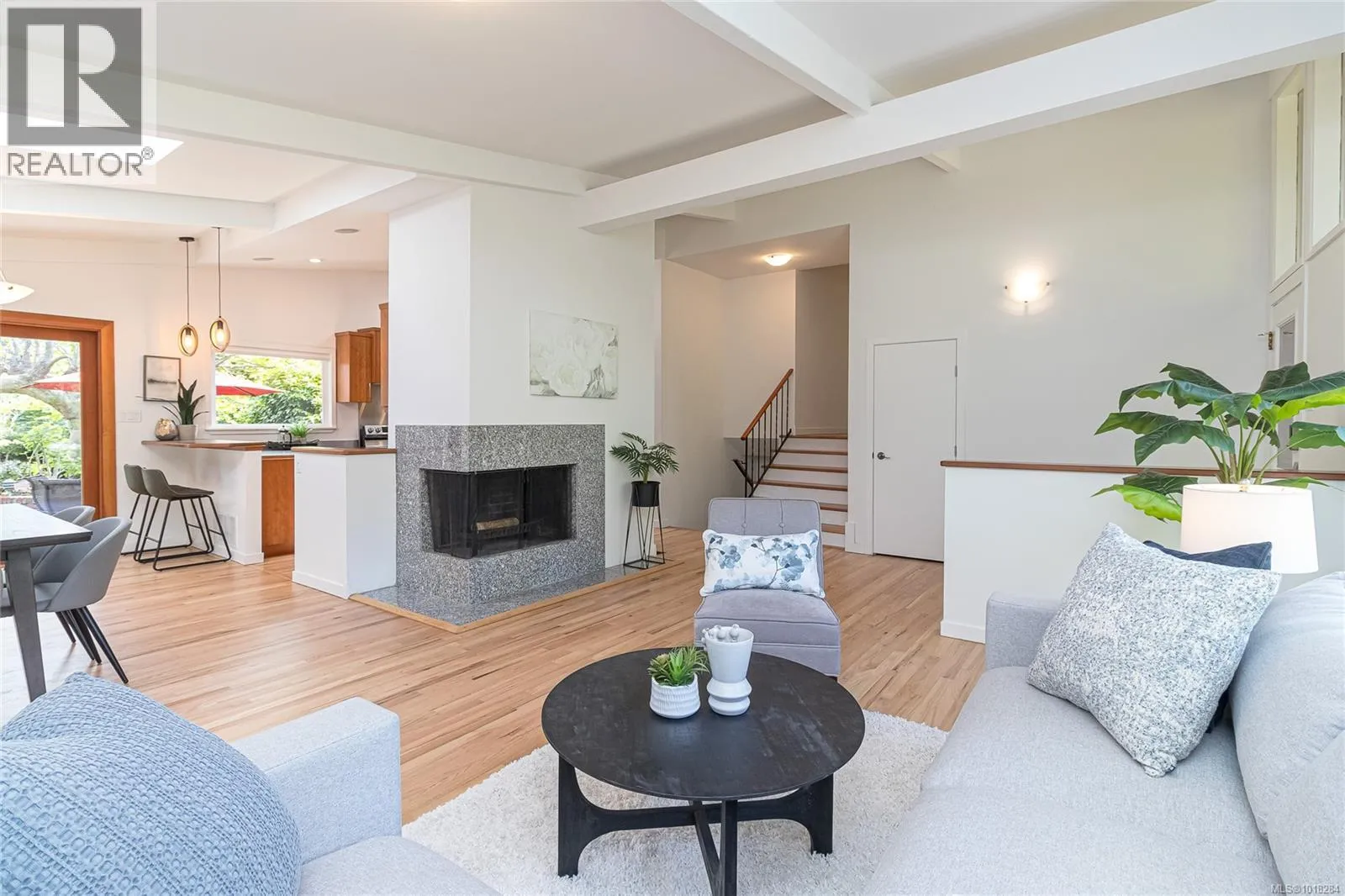 This beautifully updated mid-century modern home blends style and function with its crisp architectural lines, vaulted ceilings, and thoughtfully laid-out floor plan. The main living area features newly refinished oak hardwood floors, creating a warm and inviting atmosphere. The generous kitchen, equipped with stainless steel appliances, is perfect for both casual meals and entertaining guests. A spacious mudroom and a flexible area on the main floor provide options for a family room, home office, or studio, adding versatility to the home. Upstairs, you'll find a large primary bedroom with an updated ensuite, along with a four-piece main bathroom and convenient laundry facilities. The lower level offers excellent separation, with an additional bedroom, bathroom and living area, making it ideal for teenagers or in-laws seeking their own space. Step outside to enjoy barbecues on the sunny patio or relax by the cozy wood-burning fireplace indoors. The fully fenced yard is perfect for children and pets to play safely. Year-round comfort is ensured by two heat pumps, and thereâs a single carport plus plenty of storage. This move-in-ready home is in great condition. In a prime location, it's just steps from UVic, Mt. Tolmie, and Henderson Rec Centre, with Cadboro Bay Village and Gyro Beach only minutes away. Truly a fantastic home in an excellent neighbourhood. (id:27476)