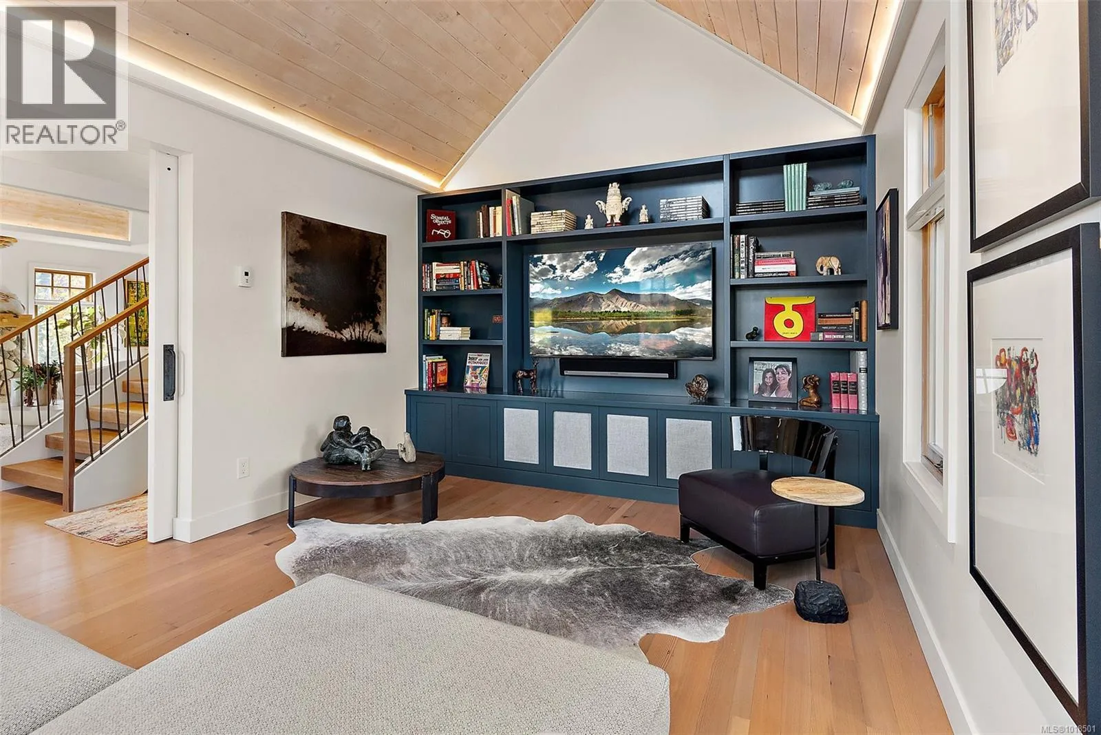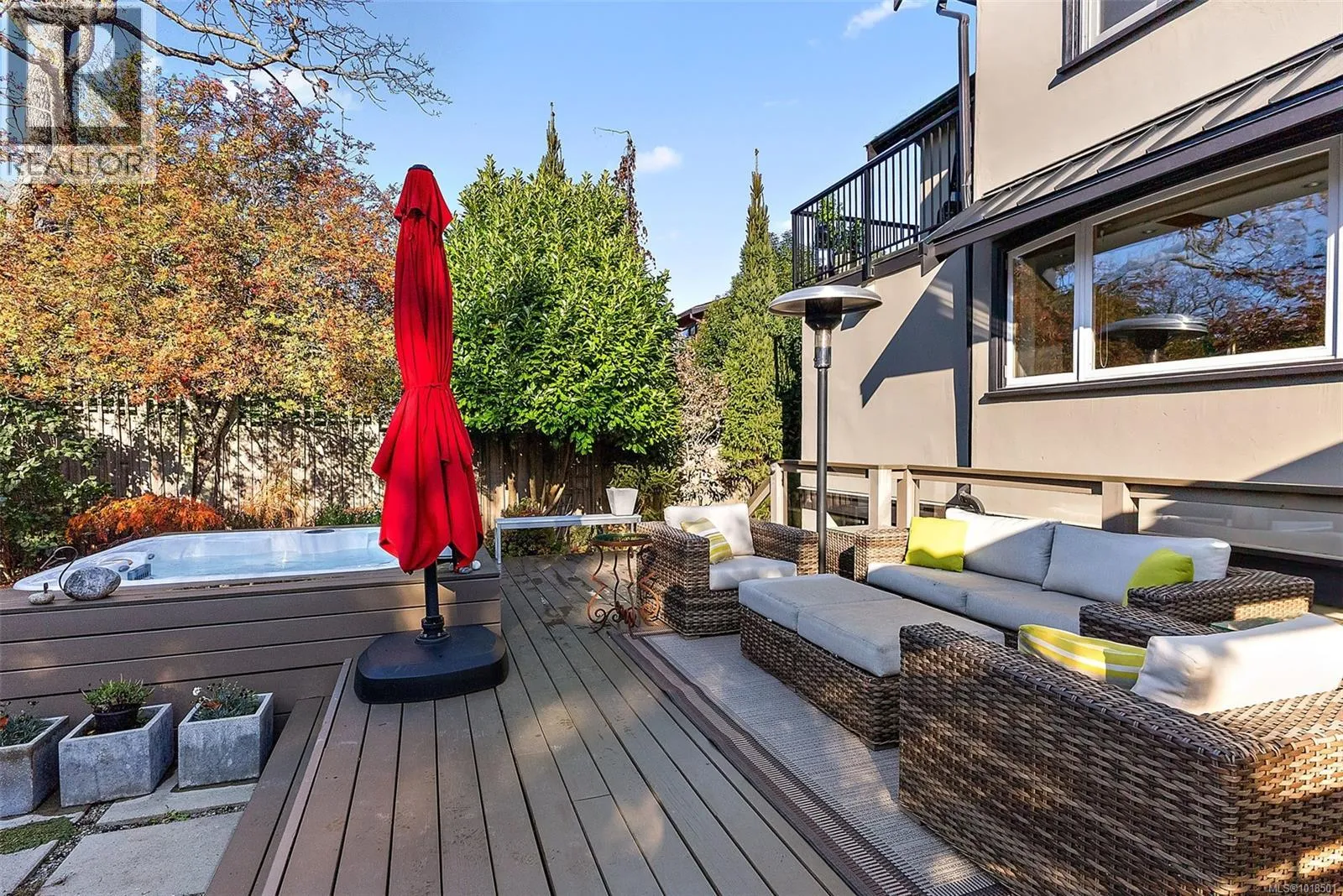 Gorgeous Executive Home in South Oak Bay. Set on a quiet, tree-lined street steps from the beach, this home has been completely reimagined with exceptional artistry and modern luxury. Highlights include a custom fireplace by Michael Eckerman of Eckerman Studios in California, 200-year-old Pennsylvania oak beams, a barrel-vaulted ceiling, and a statement staircase with cedar from Haida Gwaii. Designed for refined living and effortless entertaining, the main level offers bright open spaces and a new chefâs kitchen with premium Miele appliances. 2022 upgrades included electrical, hot water on demand, radiant in-floor heating systems, and A/C in the primary suite. Upstairs, the private primary retreat features a spa-inspired ensuite, walk-in closet with 2nd laundry, and secluded deck. The lower level offers a cosy media room and additional bedrooms. The west-facing yard includes a large deck, and hot tub â perfect for relaxing or entertaining. South Oak Bay living at its finest. (id:27476)