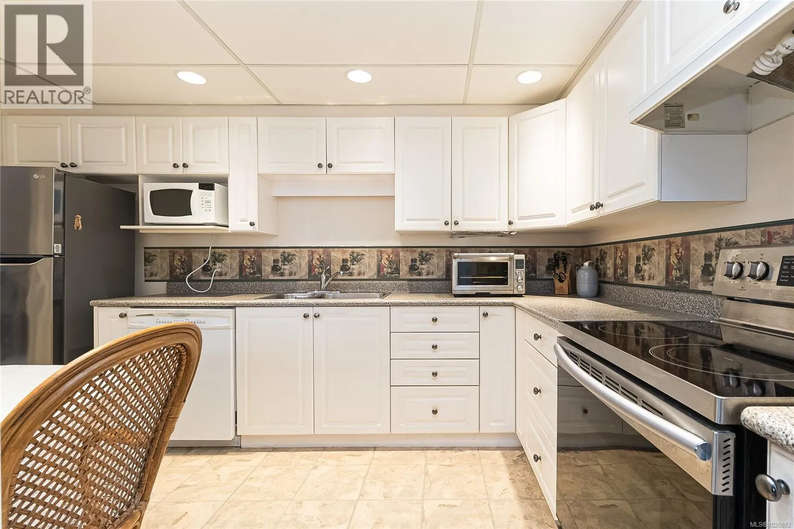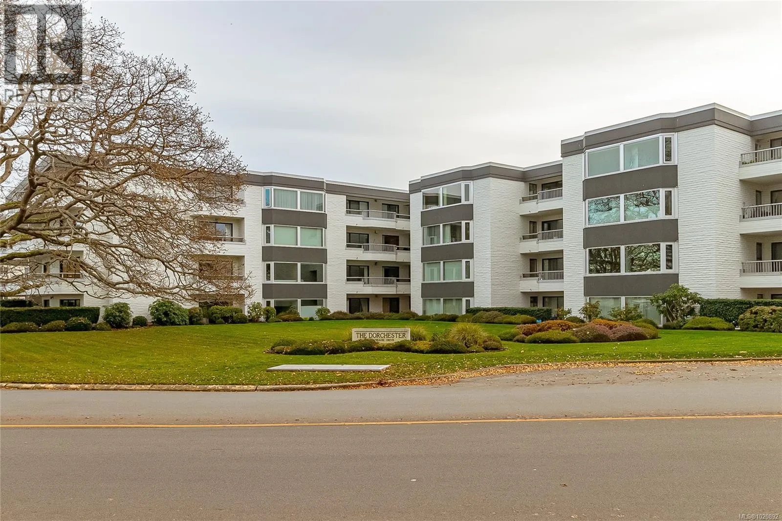 Here is an exceptionally well-built and well-maintained concrete and steel residence in one of Oak Bayâs most convenient locations. This spacious suite offers over 1,300 sq ft of comfortable living with large rooms, 2 full baths, in-suite laundry & a southwest exposure that provides excellent light while remaining quiet & sheltered from traffic. The layout offers a generous living/dining area, 2 good-sized bedrooms & ample storage including a separate storage locker. Newer wool carpeting runs throughout the living spaces & bedrooms. The unit also comes with 2 secure underground EV ready parking stalls, a workshop & a car-wash area. Across from the Marina & steps to beaches, parks, groceries, banking, the library & more, this location offers true walkable convenience. Enjoy daily waterfront scenery with seals, sea birds, & a mild coastal climate. Known for its quiet environment & friendly community, The Dorchester is ideal for those seeking comfort, safety, and easy living. Call now! (id:27476)