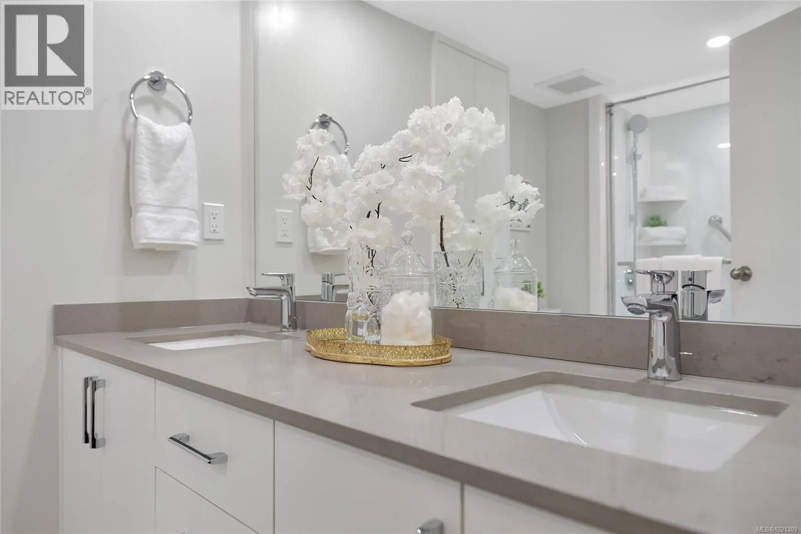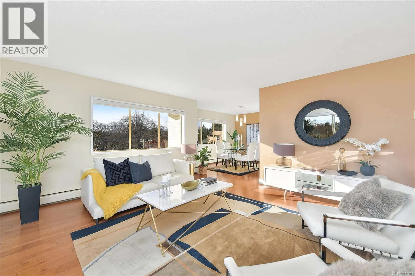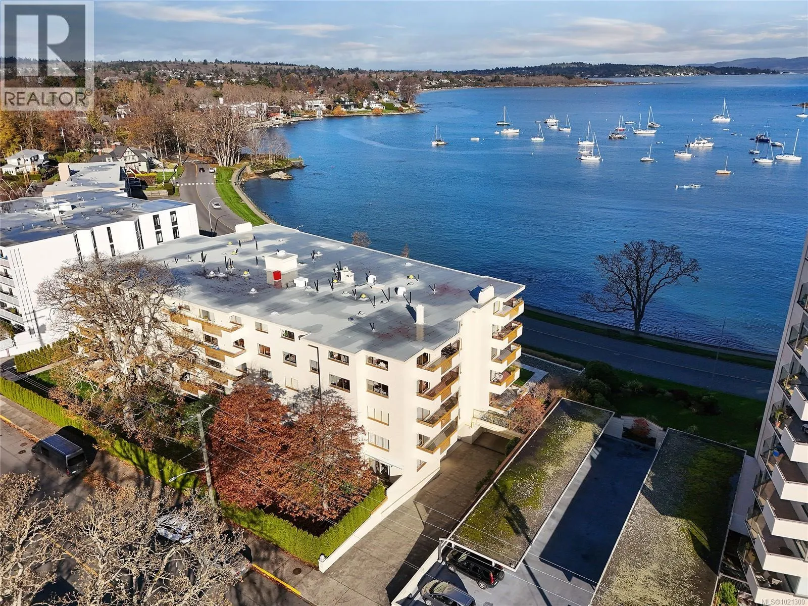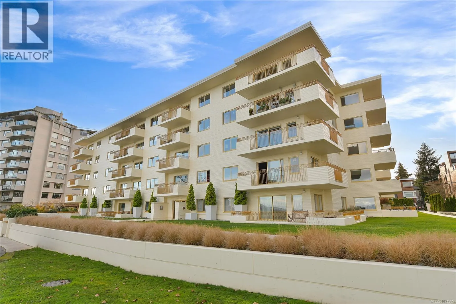 Impeccably positioned on the top floor of a corner setting in South Oak Bay, this exquisite condo is a sanctuary of elegance and charm. Offering 3 bedrooms, 2 bathrooms, 1,494sf and unrivaled Southwest views of the majestic Olympic Mountains, Windsor Park, Beach Drive, Nt Baker and Oak Bay Marina, this residence is a true gem. As you step through the generous formal double door entry, you are greeted by spacious rooms and a sense of tranquility. The living space is adorned with updated wood floors, stainless steel appliances, and in-suite laundry. Indulge in the luxury of heat and hot water included in your monthly strata fees, ensuring a worry-free lifestyle. Step out onto the sunny West exposure balcony and immerse yourself in the breathtaking views of the water, Windsor Park, and Olympic Mountains. Recent upgrades to the building guarantee optimal comfort, including an elevator, boiler, landscaping, and deck enhancements. Located on Beach Drive, residents can enjoy leisurely strolls along the ocean walkways and revel in the charming ambiance of Oak Bay Village. This coveted location beckons you to embrace the active West Coast lifestyle and bask in the unparalleled beauty that surrounds you. Experience a harmonious blend of luxury, convenience, and natural beauty in this highly sought-after Oak Bay abode. (id:27476)