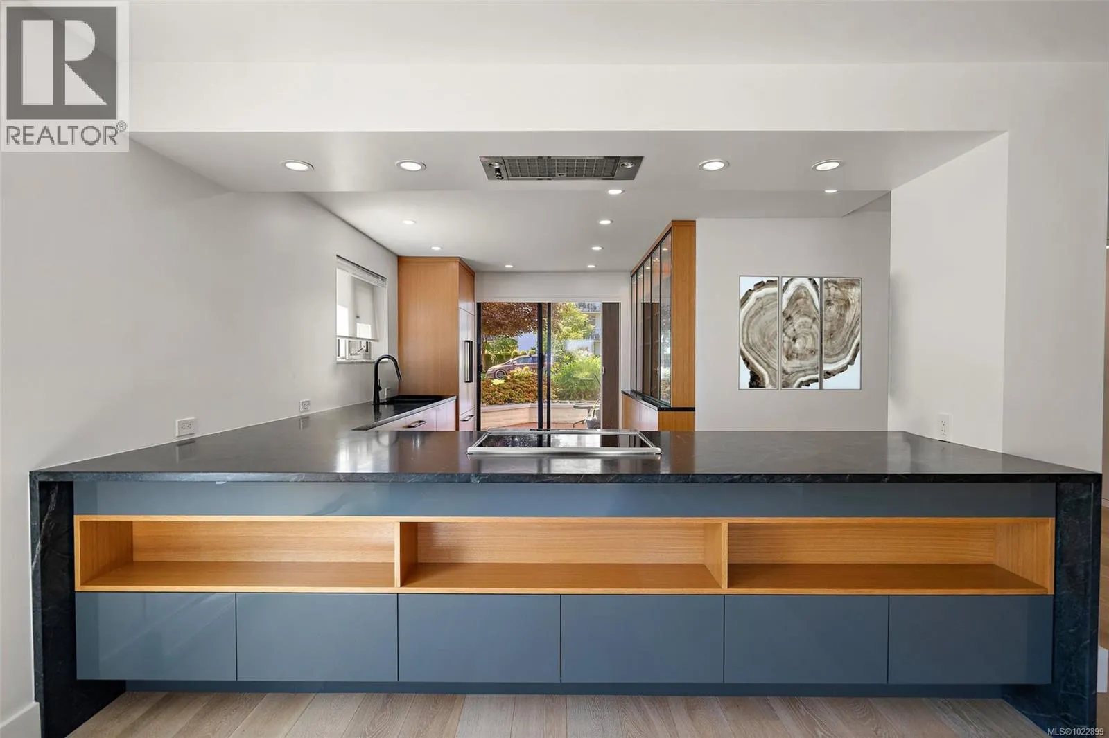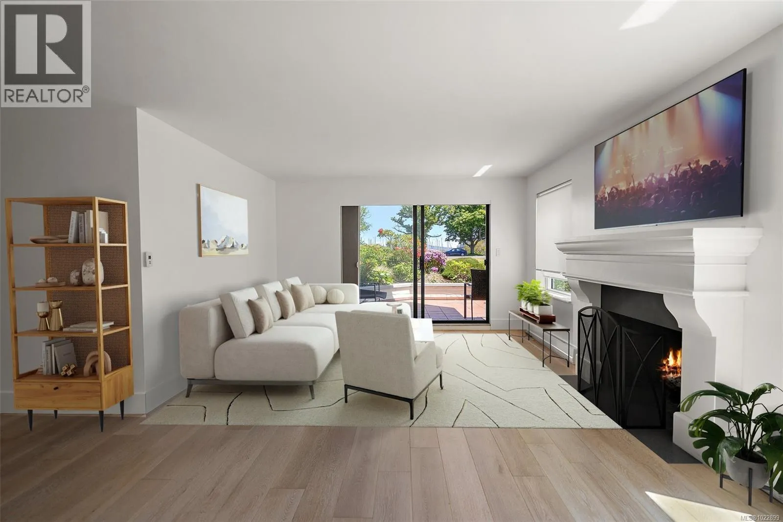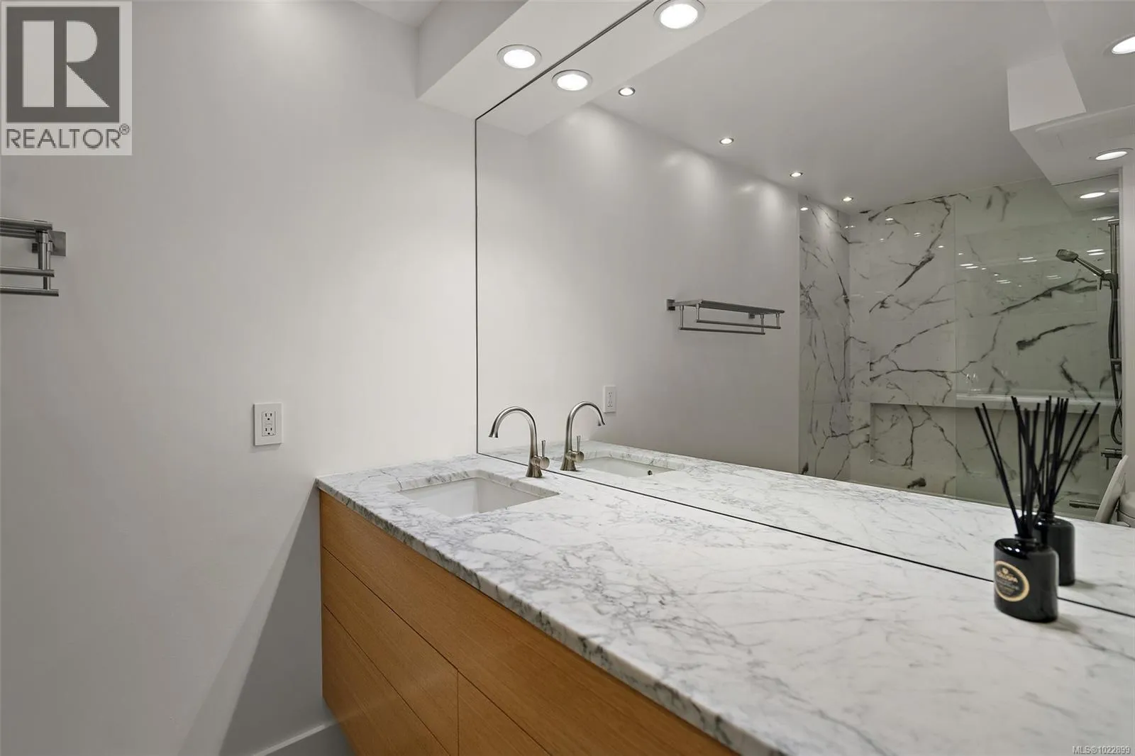 A rare offering in South Oak Bay. This beautifully updated 2 bedroom, 2 bathroom ground-floor corner suite combines refined design with unbeatable location. Featuring over 1,460 sqft of elegant living space, the home offers custom cabinetry, stone countertops, wood floors and a flowing open layout. The kitchen is both stylish and functional, opening onto a bright living area and two private patios. The spacious primary suite includes a walk-in dressing area and spa-like ensuite with heated floors and a soaker tub. A second bedroom and full bathroom offer flexibility for guests or workspace. This home includes two secure underground parking stalls with EV charger, separate storage, and ground-level access in a well-maintained and exceptionally well managed concrete and steel building. Just steps to Oak Bay Village, the Marina, Victoria Golf Club, and scenic beachesâthis is a chance to enjoy the best of coastal living in one of Victoriaâs most desirable communities. (id:27476)