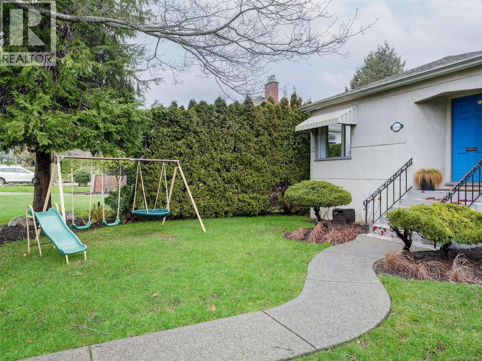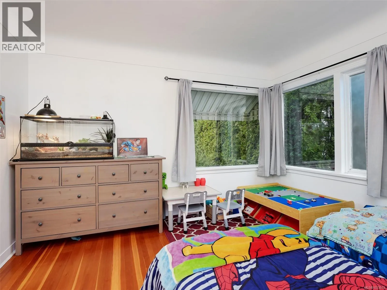 Inviting and well-maintained 1940s Oak Bay home in a sought-after location, just steps to Estevan Village, Willows Beach, Carnarvon Park, and Oak Bay amenities. Set on a quiet corner lot backing onto a laneway, the property offers surprising privacy and tranquility. Hardwood floors and coved ceilings define this bright 3-bedroom, 2-bathroom home. Corner windows in the living room provide abundant natural light; the original fireplace is currently covered, offering future potential. The main level includes two bedrooms, a four-piece bath, and a functional kitchen with casual eating space overlooking the fenced backyard. A separate dining room opens to a sunny deck through French doors. The lower level features a third bedroom, three-piece bath, laundry, and recreation room with ceilings over seven feet. Additional highlights include an extra-long single-car garage, 200-amp electrical, excellent schools, and transit access to UVic and Camosun College. (id:27476)