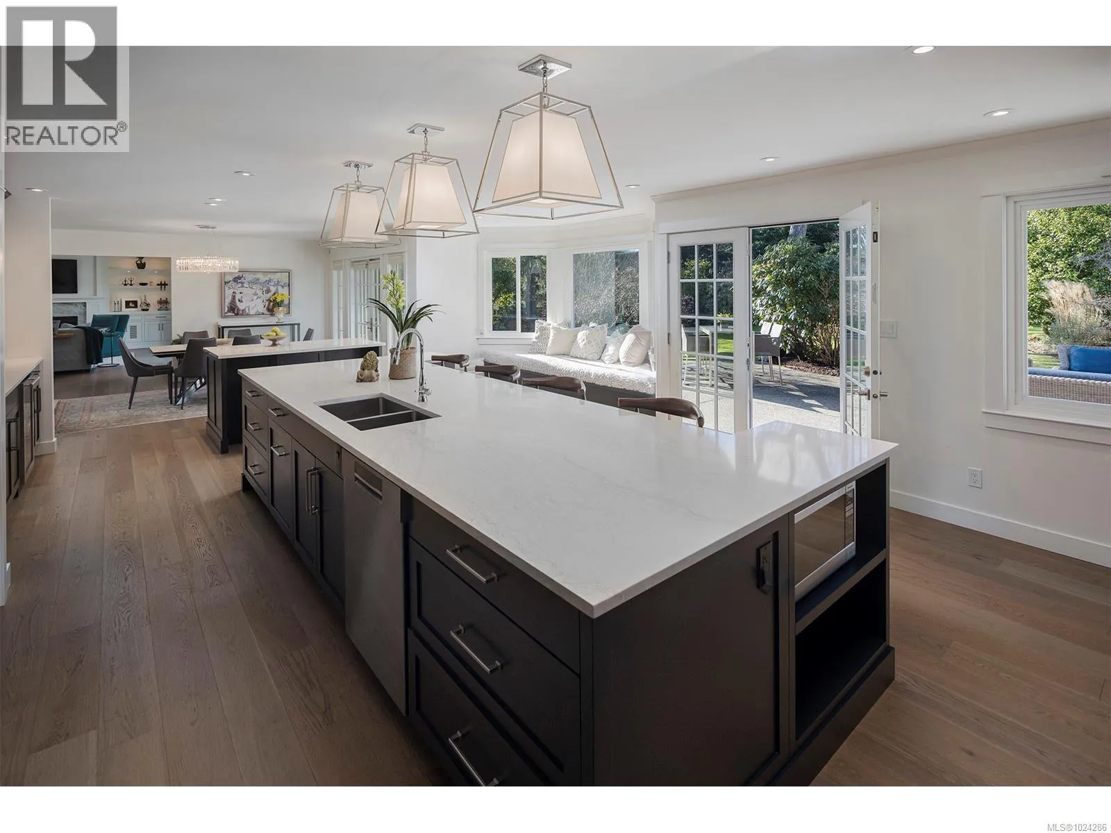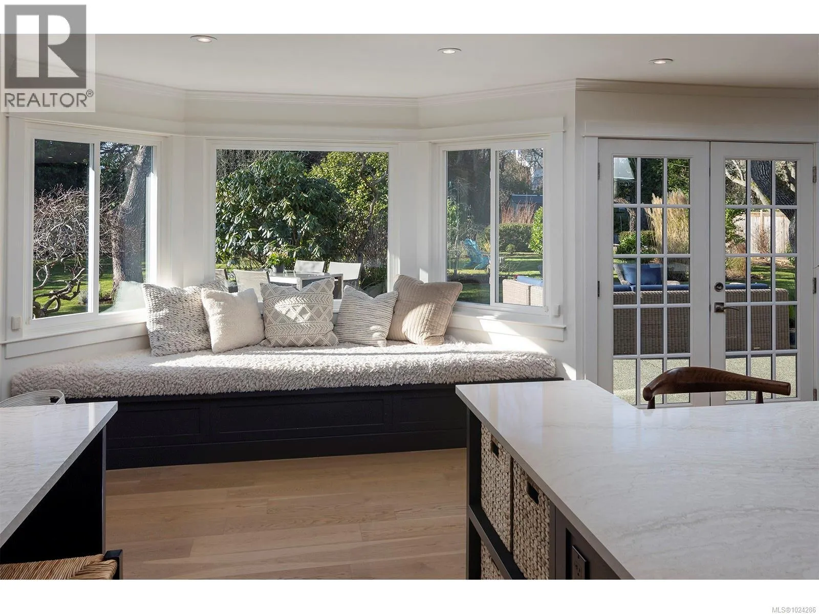 A gracious entry hall welcomes you and 5 sets of French doors invite the beauty of the gardens inside to all the main areas of this exquisitely renovated home. The 4 bedrooms plus den & 4 bath home sits on a huge level lot with a delightful W-facing & exceptionally private, manicured back garden. The beautifully appointed interior boasts wide plank white oak flooring and in floor heat throughout. A stunning recent renovation includes a GOURMET KITCHEN with 2 islands, 2 sinks, and an enviable WALK-IN PANTRY and 2nd fridge. This spacious home is ideal for entertaining indoors and out. On the upper level a stunning primary bedroom with a private balcony and 5 pce ensuite and dressing room, two more spacious bedrooms each with walk-in closetâs and access to the ensuite bath and upstairs laundry. The lower level with its own entrance is an ideal NANNY or LIVE-IN caregiver SUITE complete with kitchen, bedroom and bath. Wine storage, home gym room, and games rooms and the potential to add yet another bedroom are also on this level. Situated Close to The Victoria Yacht Club, Golfing, Uplands Park and the very best schools. (id:27476)