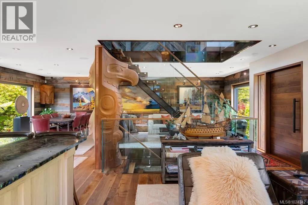 Unlock the door to the extraordinary! Located just steps from the beach in prestigious South Oak Bay, this modern gem excites the senses and truly is a unique work of art. Choosing natural, organic and sustainable materials, master craftsmen and artisans curated a home of exceptional quality, nourishing the soul and supporting physical and mental well being, in harmony with nature. Offering three luxurious levels of living for the environmentally conscious couple, seeking state of the art amenities, the home is ideal for indoor outdoor living from its sensational gourmet kitchen and expansive open floor plan to the spacious walk-out deck, inviting alfresco fetes. Among The unusual features is a totem pole and etched glass panels designed by award winning master carver, First Nations artist Klatle-bhi. Every season is honoured in the professionally landscaped garden designed by Demitasse with transcendent, meandering stone walkways and offering a fabulous array of exquisite perennials, shrubs and graceful trees. The property is private, fully fenced and secured by two automated gates. Finished to the same exacting standards, the separate guest house provides a comfortable hermitage to a family member, boasting its own custom three piece bath, deck and pergola laced with red and green grape vines. Bathed in natural light by day and dramatically illuminated by night, noetic purchasers appreciative of the home's gravitas, are encouraged to view twice in both lights. Situated on the ''beach block'', located close to the Victoria Golf Club, Victoria's finest private and public schools, parks, shopping, surround yourself in the unparalleled beauty and unequalled lifestyle in one of Canada's finest neighbourhoods. (id:27476)