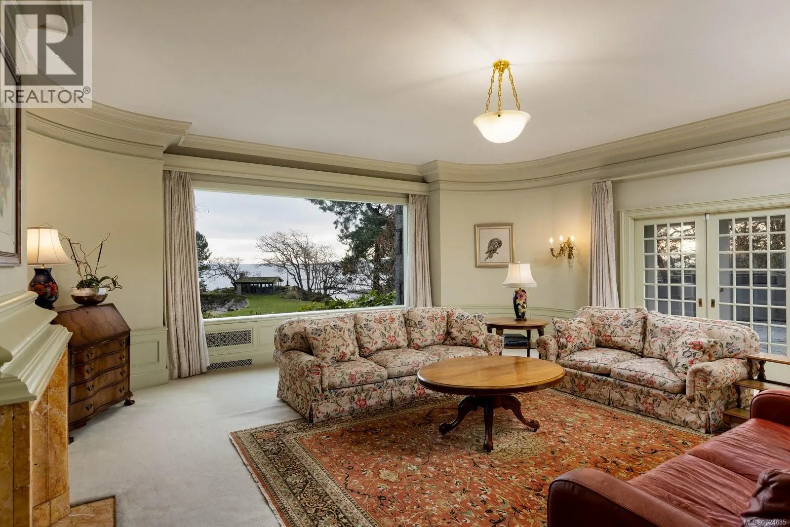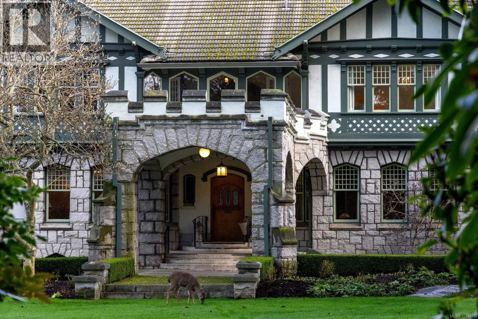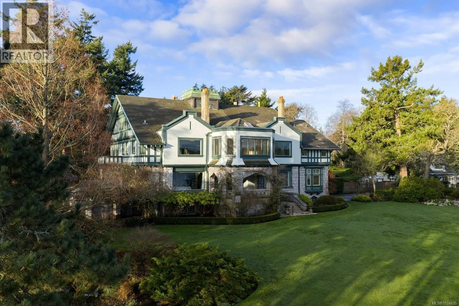 A landmark waterfront estate in the heart of the Uplands, 3175 Beach Drive, known as Riffington, is a rare offering of architectural and cultural significance. Designed in 1913 by architect Philip A. Jullien in the Tudor Revival style, Riffington was the original show home for the Uplands development. Thoughtfully positioned to frame picturesque ocean vistas and carefully aligned views toward Mount Baker, the home sits on park-like grounds shaped by the Olmsted vision. Riffington has been featured in Western Living Magazine, visited by the British Royal Family on multiple occasions, and housed the U.S. Consul from 1928â1942, underscoring its historic prominence. The four-level main residence spans approximately 12,400 sq ft, offering 9 bedrooms, 7 bathrooms, and 10 fireplaces, with grand principal rooms, a dramatic two-storey reception hall, libraries, sunrooms, ocean-facing patios, and a distinguished music room executed in the French Renaissance style. The estate includes a two-level carriage house, seaside cottage, and waterfront pavilion, a private dock and a large-boat mooring, as well as a productive vegetable garden. Just minutes from the Royal Victoria Yacht Club, Riffington is an irreplaceable coastal legacy in one of Canadaâs most prestigious enclaves. (id:27476)