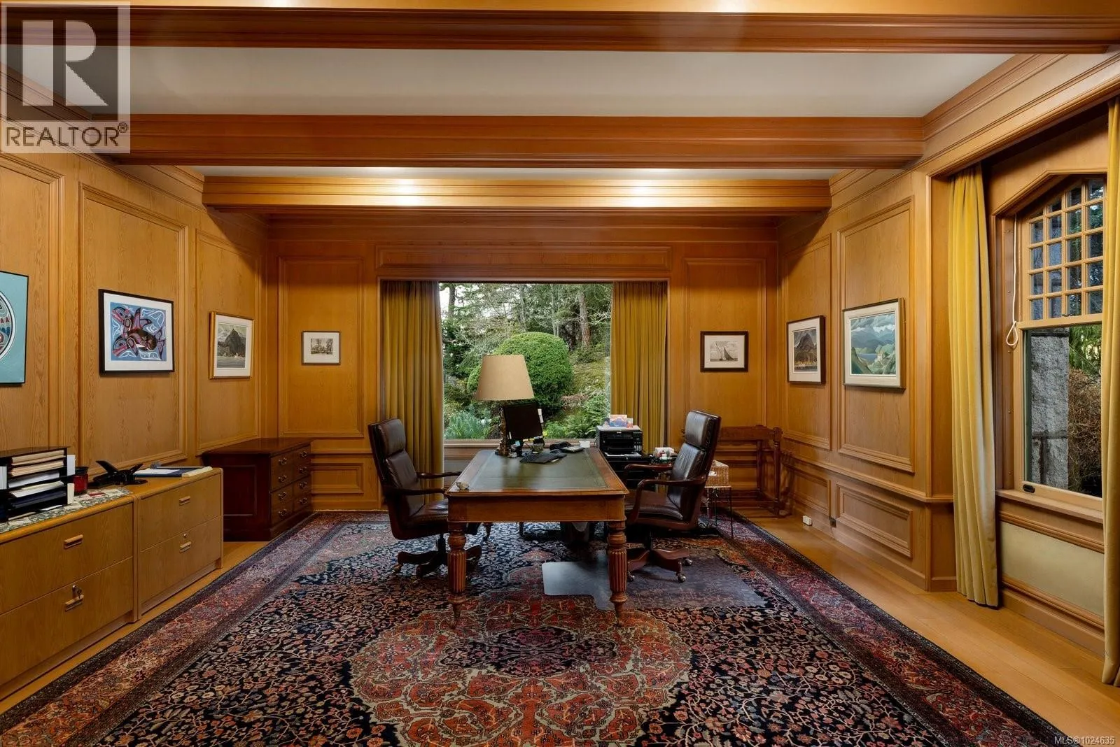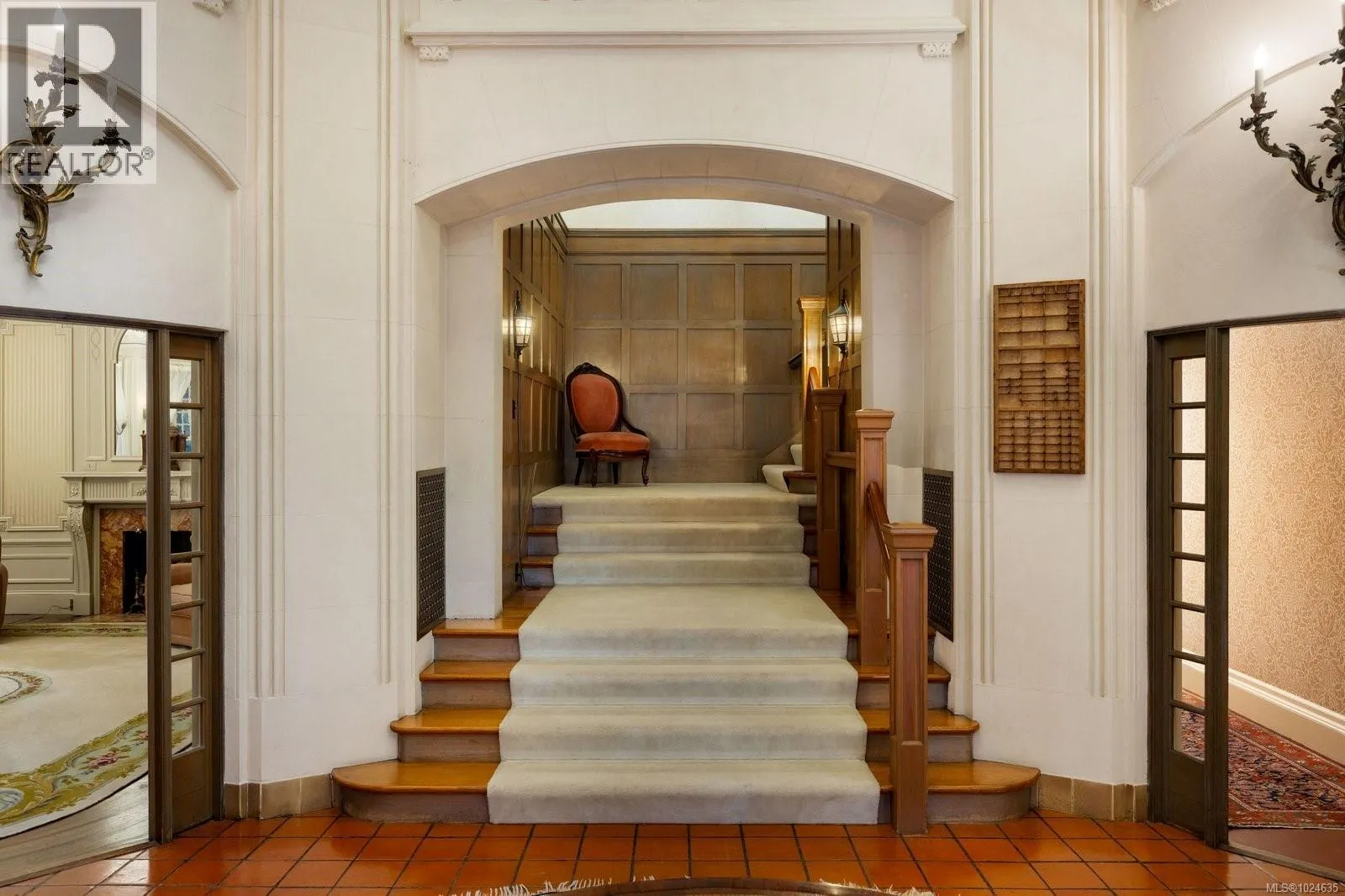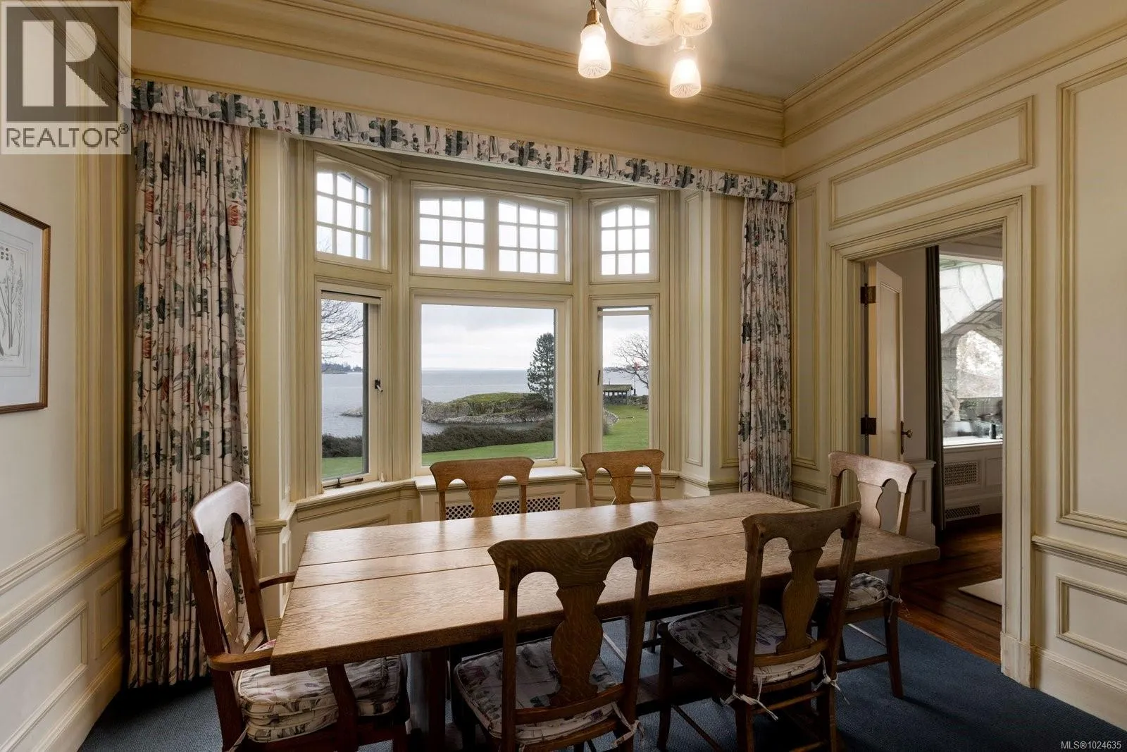 A landmark waterfront estate in the heart of the Uplands, 3175 Beach Drive, known as Riffington, is a rare offering of architectural and cultural significance. Designed in 1913 by architect Philip A. Jullien in the Tudor Revival style, Riffington was the original show home for the Uplands development. Thoughtfully positioned to frame picturesque ocean vistas and carefully aligned views toward Mount Baker, the home sits on park-like grounds shaped by the Olmsted vision. Riffington has been featured in Western Living Magazine, visited by the British Royal Family on multiple occasions, and housed the U.S. Consul from 1928â1942, underscoring its historic prominence. The four-level main residence spans approximately 12,400 sq ft, offering 9 bedrooms, 7 bathrooms, and 10 fireplaces, with grand principal rooms, a dramatic two-storey reception hall, libraries, sunrooms, ocean-facing patios, and a distinguished music room executed in the French Renaissance style. The estate includes a two-level carriage house, seaside cottage, and waterfront pavilion, a private dock and a large-boat mooring, as well as a productive vegetable garden. Just minutes from the Royal Victoria Yacht Club, Riffington is an irreplaceable coastal legacy in one of Canadaâs most prestigious enclaves. (id:27476)