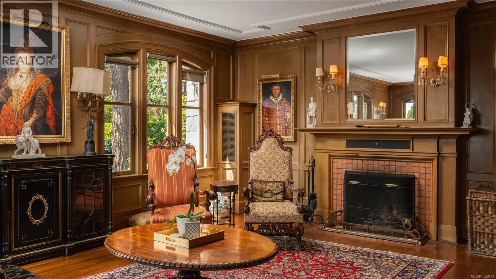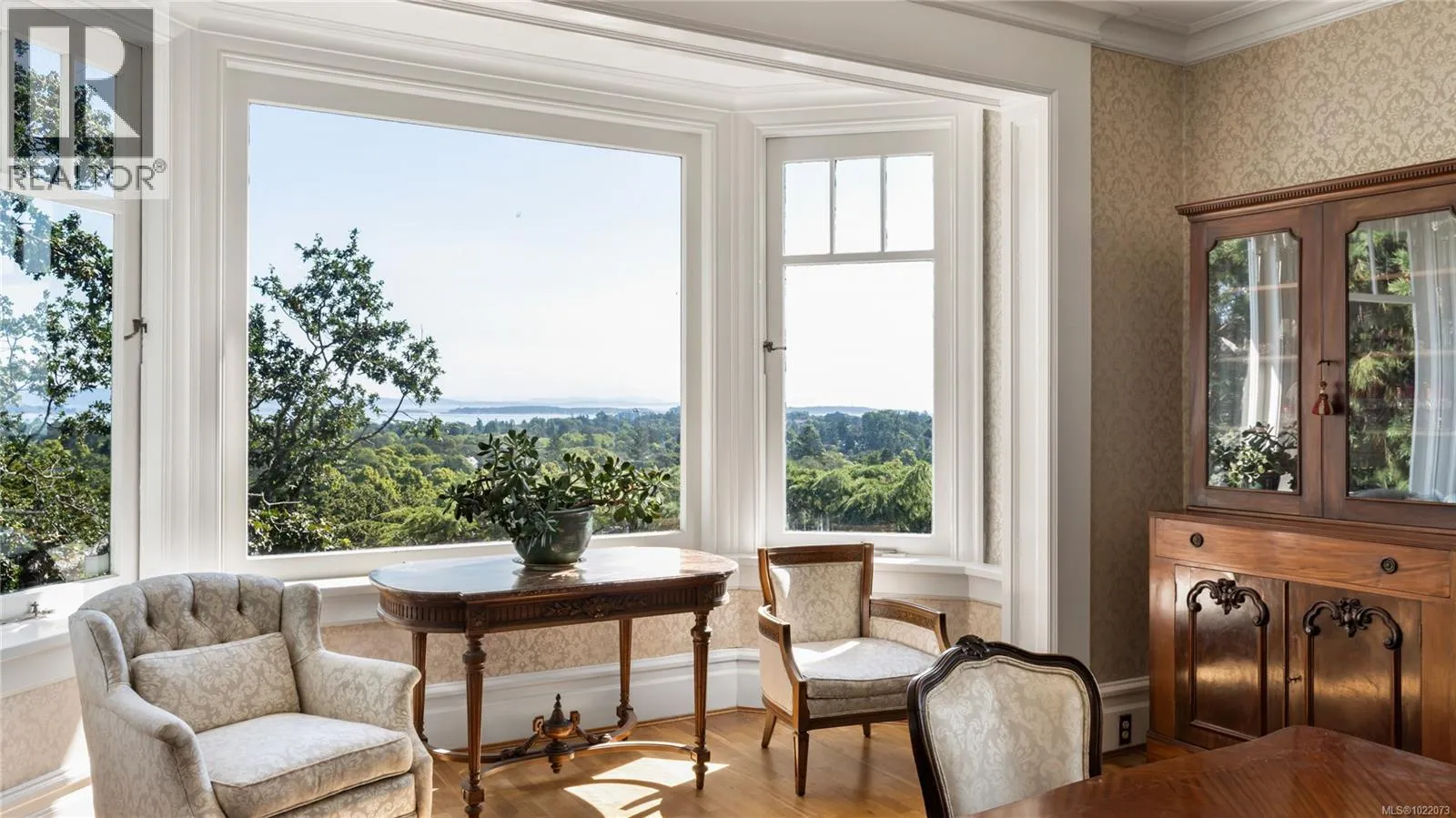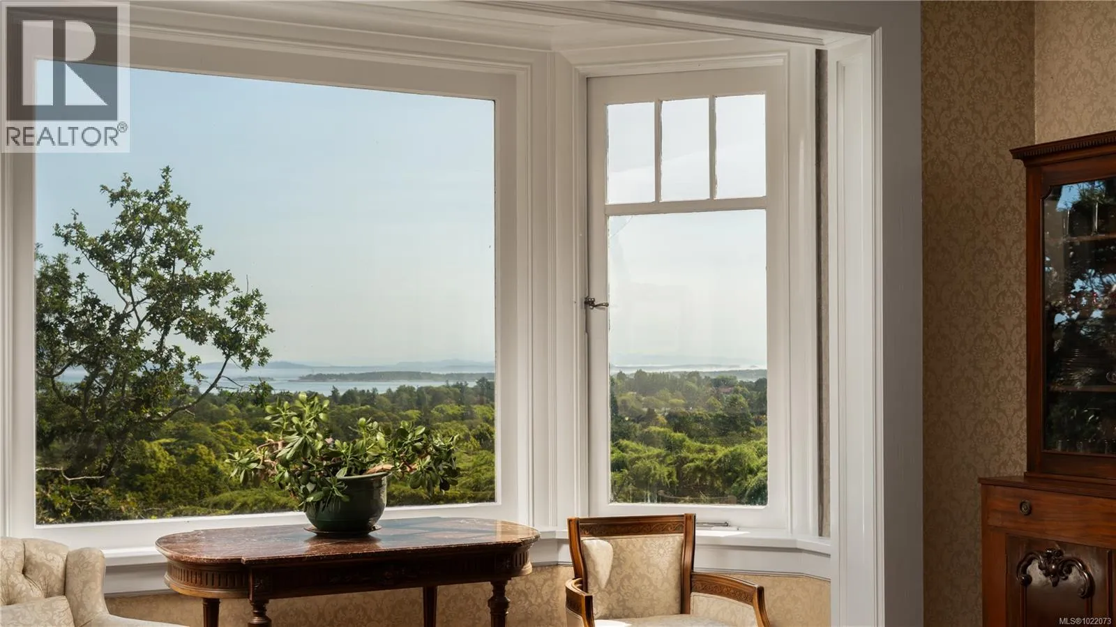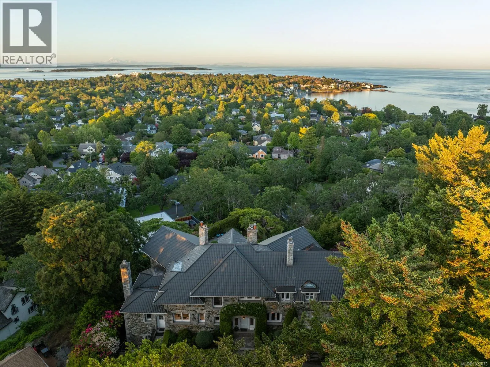 Introducing Kingsmount - a landmark estate in prestigious Oak Bay. Perched atop Gonzales Hill on nearly an acre of exquisitely landscaped grounds, this residence stands among Victoriaâs most distinguished architectural treasures. Originally designed by renowned architects Samuel Maclure and Francis Rattenbury, with a later addition by D.C. Frame, Kingsmount is a masterful expression of British Arts and Crafts design, where heritage craftsmanship meets refined modern luxury. A grand entry with original 100-year-old marble flooring sets a tone of timeless elegance. Ten-foot ceilings, oak flooring throughout the main level, and extraordinary original detailing speak to impeccable provenance. The main floor is ideal for intimate gatherings and grand-scale entertaining, offering an impressive living room, music room, library, private office, sitting room, and a chefâs kitchen anchored by a statement fireplace. A bright marble-floored sunroom opens to an extensive stone patio, gardens, and uninterrupted sightlines to the ocean and Mt. Baker beyond, creating a seamless indoor-outdoor lifestyle rarely found in Oak Bay. Upstairs, the stately primary suite is accompanied by five additional bedrooms, many with fireplaces and walk-in closets. Fir flooring throughout the upper level adds warmth and continuity. The lower level offers a private guest suite with separate entrance, wine room, and workshopâideal for extended family, guests, or staff. The grounds are enchanting: mature trees, garden pathways, water features, and expansive patios provide serene privacy and a setting that has hosted countless elegant gatherings. Located on one of Oak Bayâs most beautiful and coveted lanes, just steps to Gonzales Hill Park and minutes to beaches, trails, Oak Bay Village, top schools, Victoria Golf Club, fine dining, and boutique shopping. A rare and refined opportunity to own one of Oak Bayâs landmark estates - timeless, grand, and utterly exclusive. (id:27476)