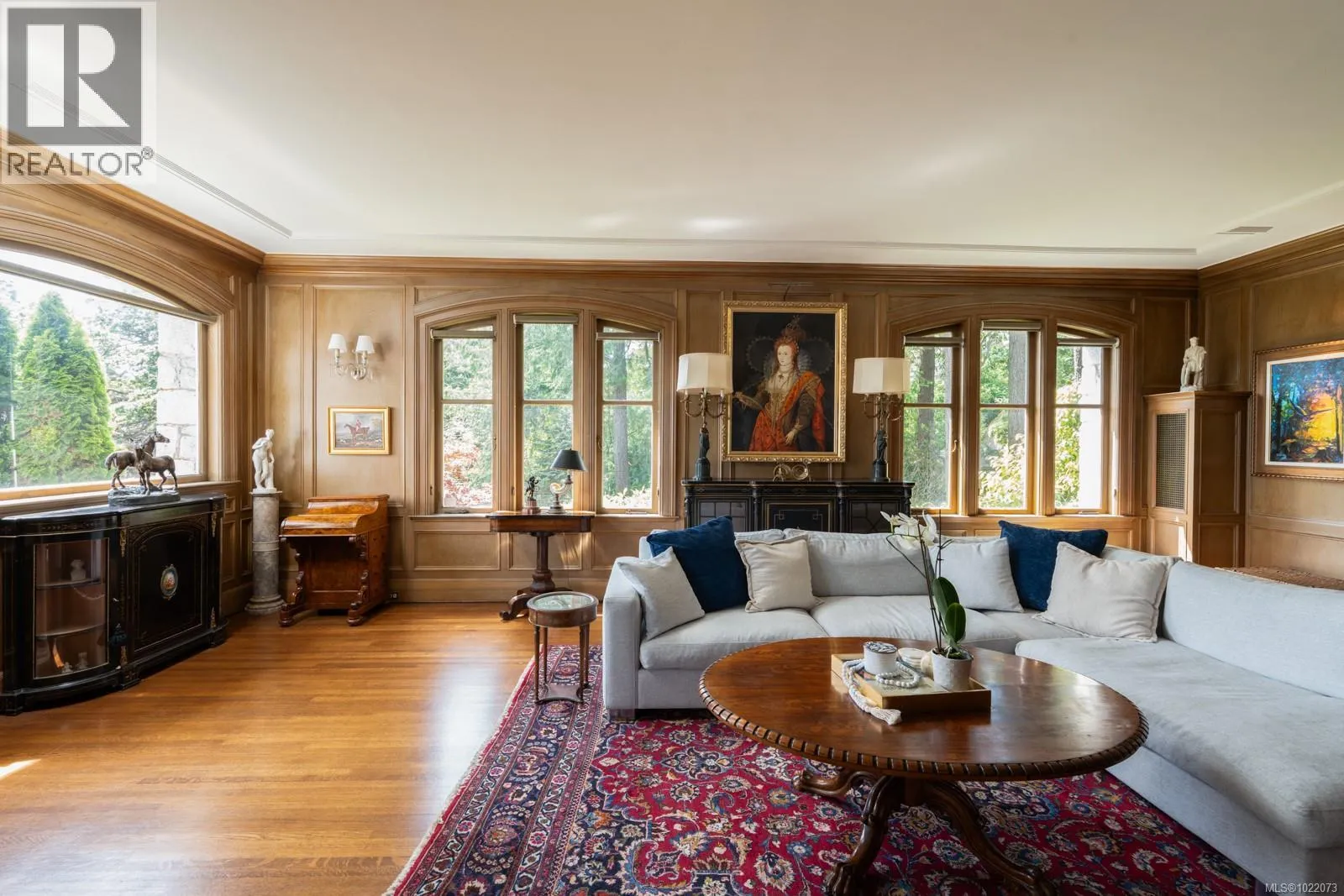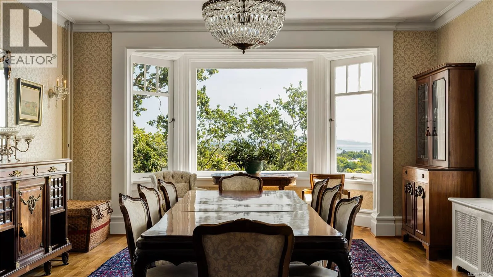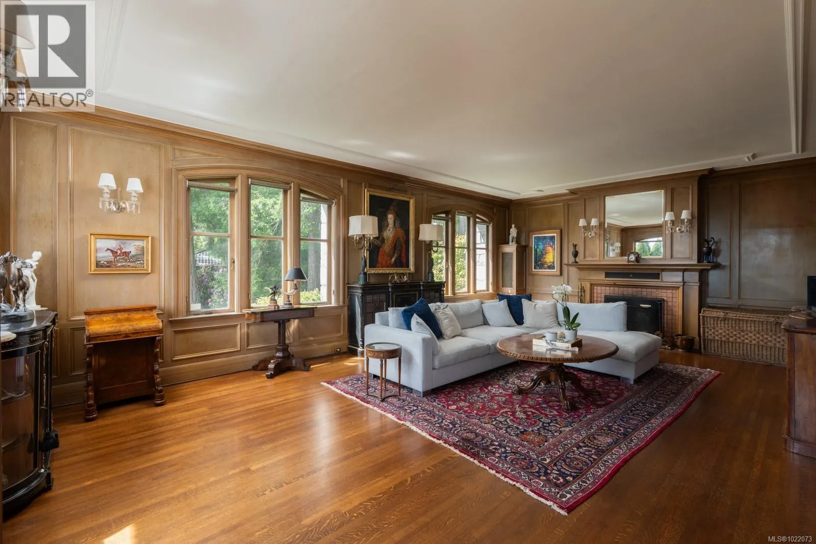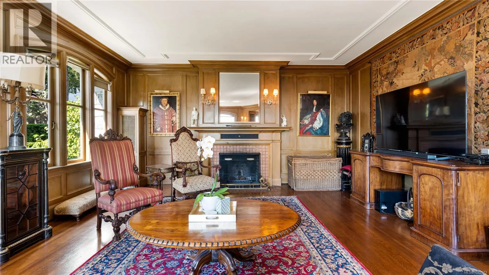 Introducing Kingsmount - a landmark estate in prestigious Oak Bay. Perched atop Gonzales Hill on nearly an acre of exquisitely landscaped grounds, this residence stands among Victoriaâs most distinguished architectural treasures. Originally designed by renowned architects Samuel Maclure and Francis Rattenbury, with a later addition by D.C. Frame, Kingsmount is a masterful expression of British Arts and Crafts design, where heritage craftsmanship meets refined modern luxury. A grand entry with original 100-year-old marble flooring sets a tone of timeless elegance. Ten-foot ceilings, oak flooring throughout the main level, and extraordinary original detailing speak to impeccable provenance. The main floor is ideal for intimate gatherings and grand-scale entertaining, offering an impressive living room, music room, library, private office, sitting room, and a chefâs kitchen anchored by a statement fireplace. A bright marble-floored sunroom opens to an extensive stone patio, gardens, and uninterrupted sightlines to the ocean and Mt. Baker beyond, creating a seamless indoor-outdoor lifestyle rarely found in Oak Bay. Upstairs, the stately primary suite is accompanied by five additional bedrooms, many with fireplaces and walk-in closets. Fir flooring throughout the upper level adds warmth and continuity. The lower level offers a private guest suite with separate entrance, wine room, and workshopâideal for extended family, guests, or staff. The grounds are enchanting: mature trees, garden pathways, water features, and expansive patios provide serene privacy and a setting that has hosted countless elegant gatherings. Located on one of Oak Bayâs most beautiful and coveted lanes, just steps to Gonzales Hill Park and minutes to beaches, trails, Oak Bay Village, top schools, Victoria Golf Club, fine dining, and boutique shopping. A rare and refined opportunity to own one of Oak Bayâs landmark estates - timeless, grand, and utterly exclusive. (id:27476)