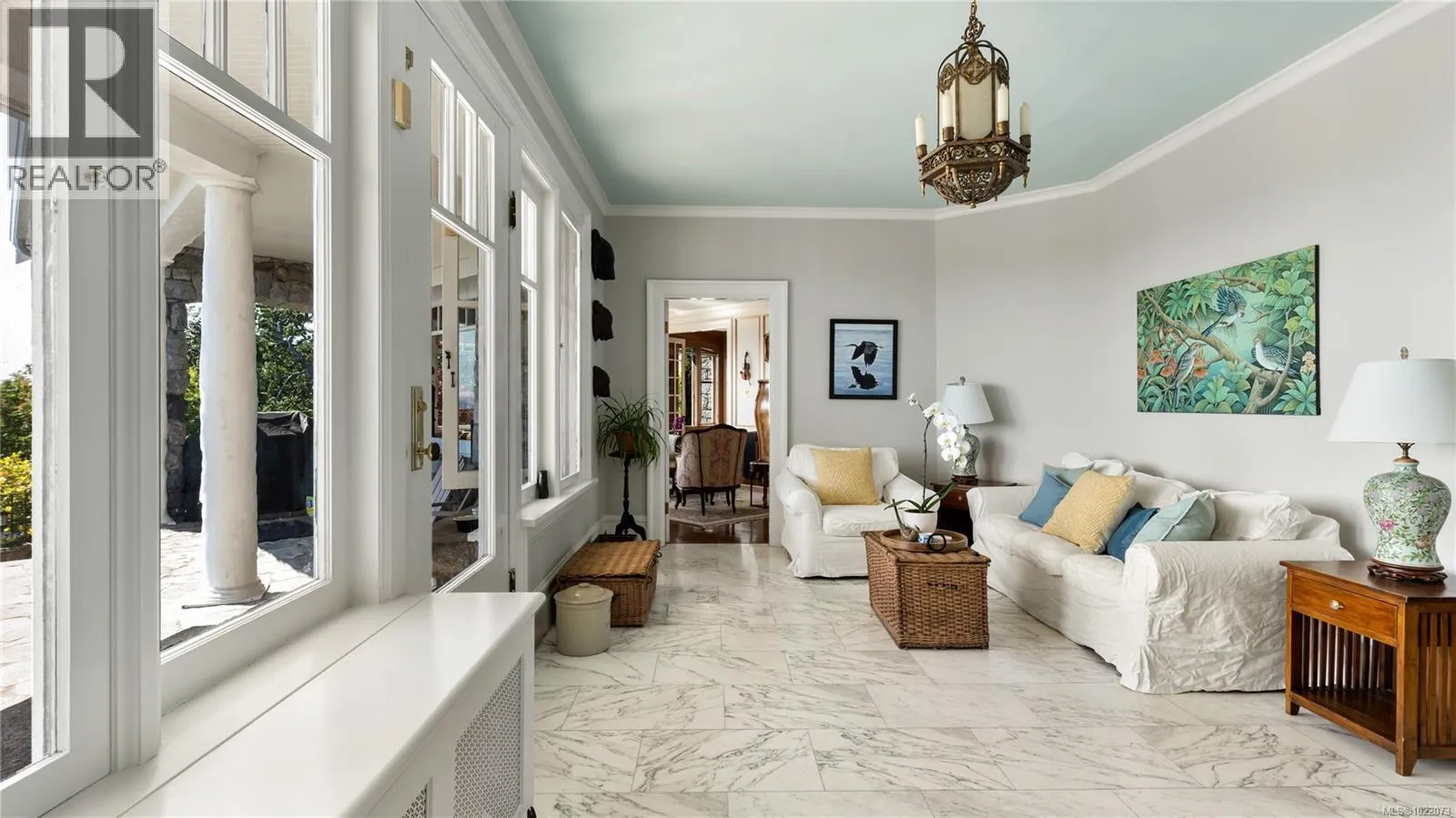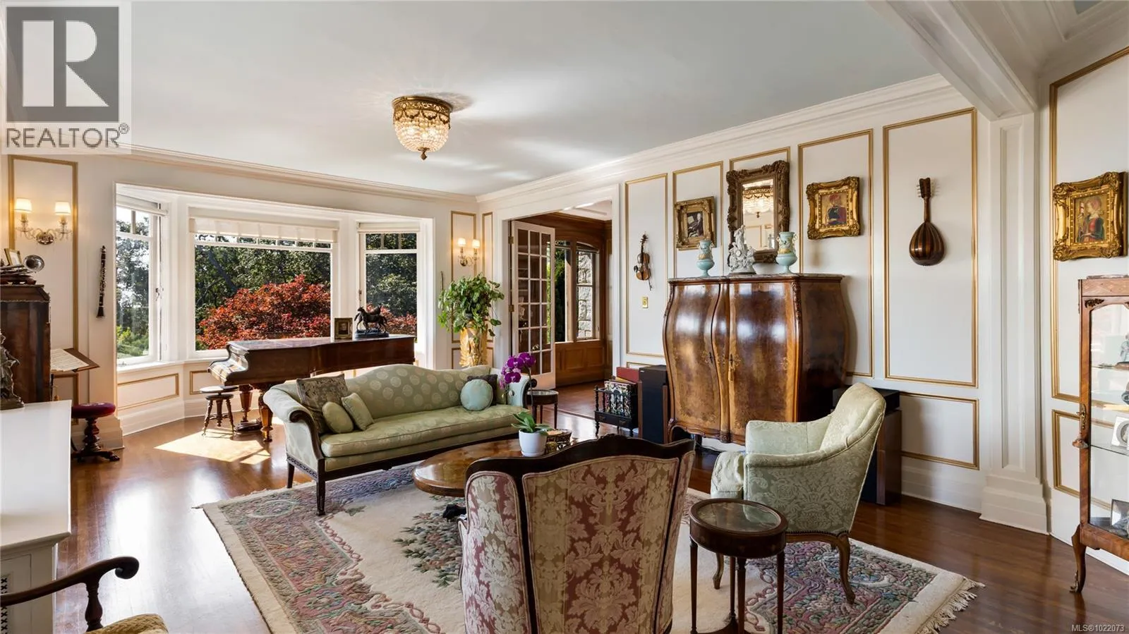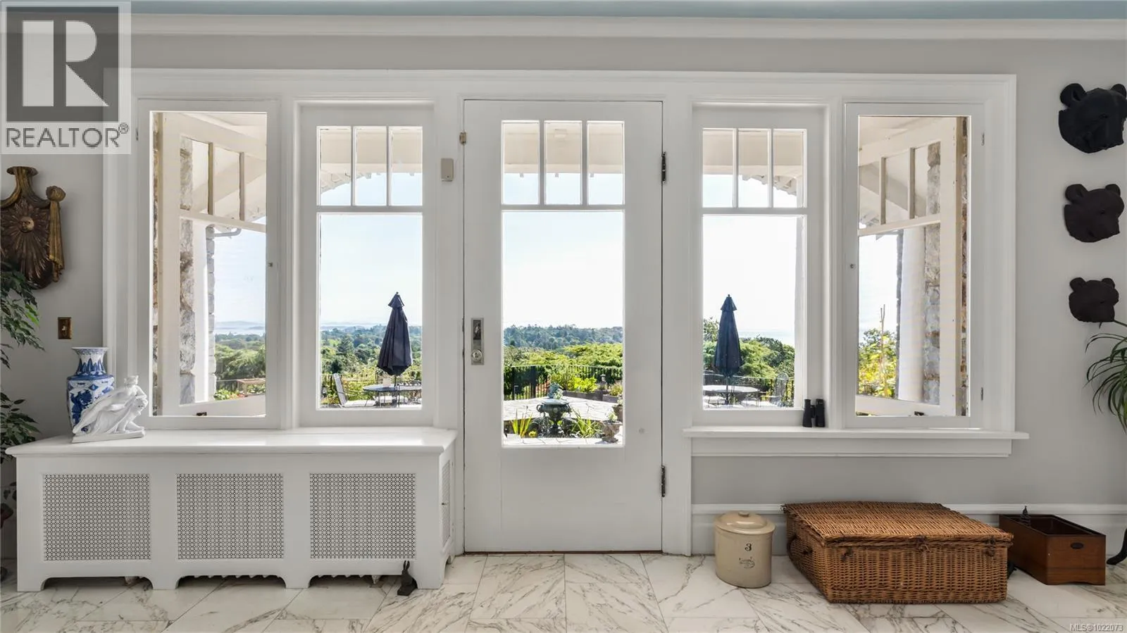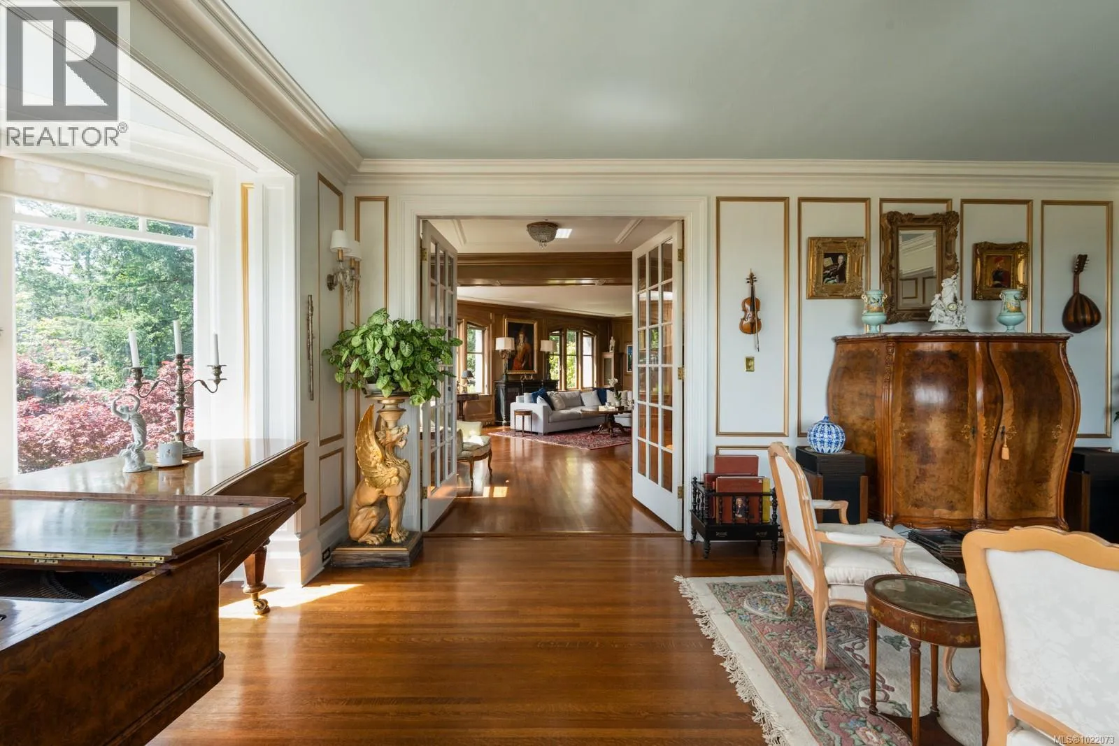 Introducing Kingsmount - a landmark estate in prestigious Oak Bay. Perched atop Gonzales Hill on nearly an acre of exquisitely landscaped grounds, this residence stands among Victoriaâs most distinguished architectural treasures. Originally designed by renowned architects Samuel Maclure and Francis Rattenbury, with a later addition by D.C. Frame, Kingsmount is a masterful expression of British Arts and Crafts design, where heritage craftsmanship meets refined modern luxury. A grand entry with original 100-year-old marble flooring sets a tone of timeless elegance. Ten-foot ceilings, oak flooring throughout the main level, and extraordinary original detailing speak to impeccable provenance. The main floor is ideal for intimate gatherings and grand-scale entertaining, offering an impressive living room, music room, library, private office, sitting room, and a chefâs kitchen anchored by a statement fireplace. A bright marble-floored sunroom opens to an extensive stone patio, gardens, and uninterrupted sightlines to the ocean and Mt. Baker beyond, creating a seamless indoor-outdoor lifestyle rarely found in Oak Bay. Upstairs, the stately primary suite is accompanied by five additional bedrooms, many with fireplaces and walk-in closets. Fir flooring throughout the upper level adds warmth and continuity. The lower level offers a private guest suite with separate entrance, wine room, and workshopâideal for extended family, guests, or staff. The grounds are enchanting: mature trees, garden pathways, water features, and expansive patios provide serene privacy and a setting that has hosted countless elegant gatherings. Located on one of Oak Bayâs most beautiful and coveted lanes, just steps to Gonzales Hill Park and minutes to beaches, trails, Oak Bay Village, top schools, Victoria Golf Club, fine dining, and boutique shopping. A rare and refined opportunity to own one of Oak Bayâs landmark estates - timeless, grand, and utterly exclusive. (id:27476)