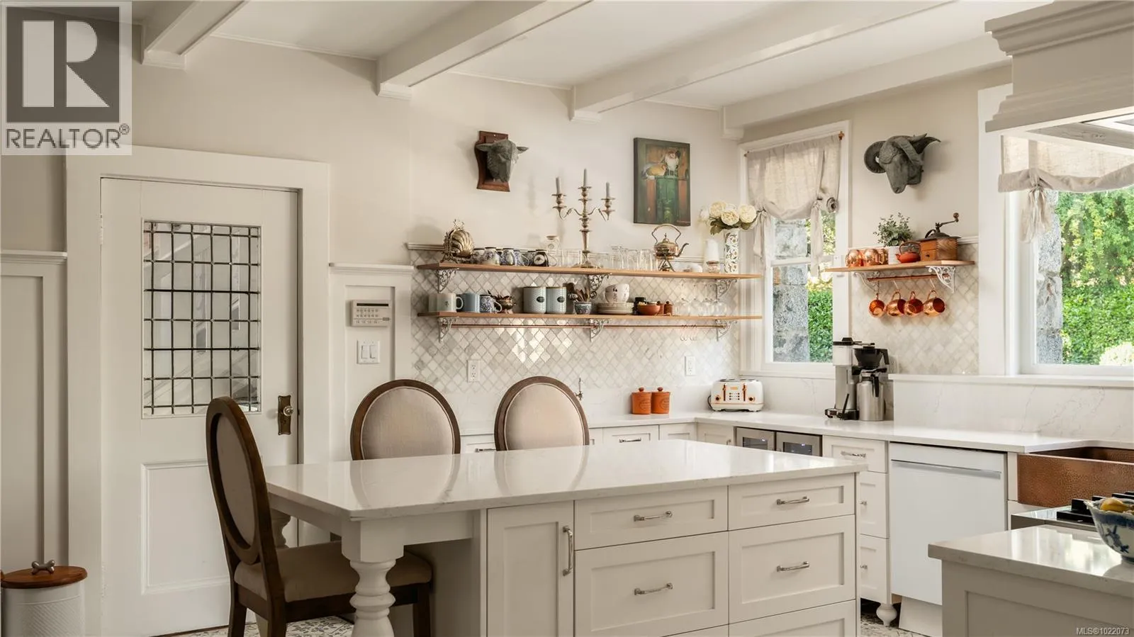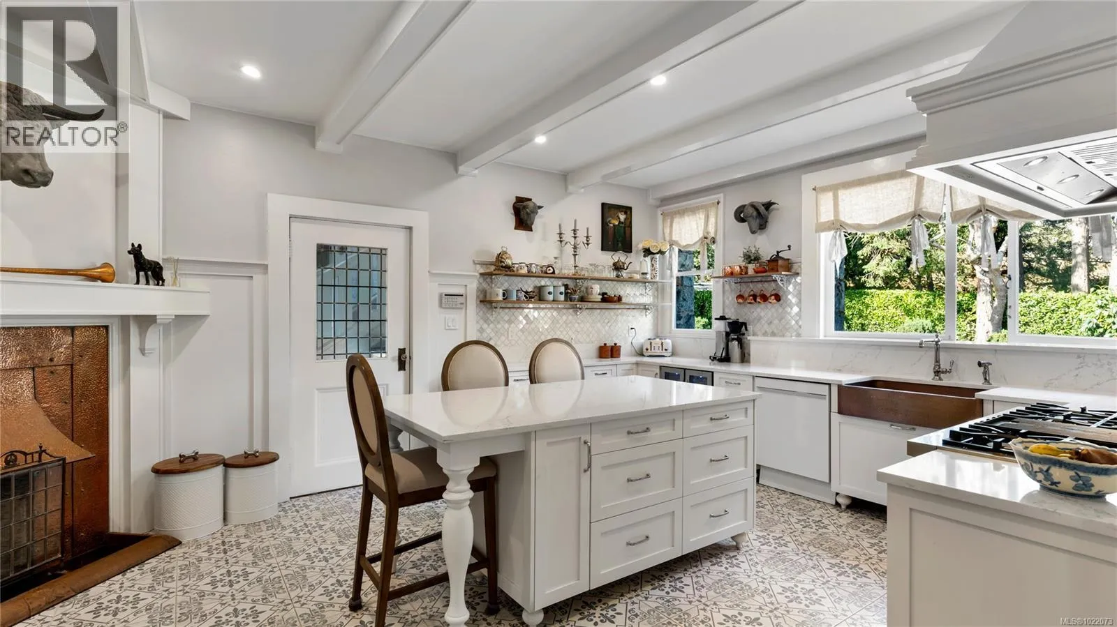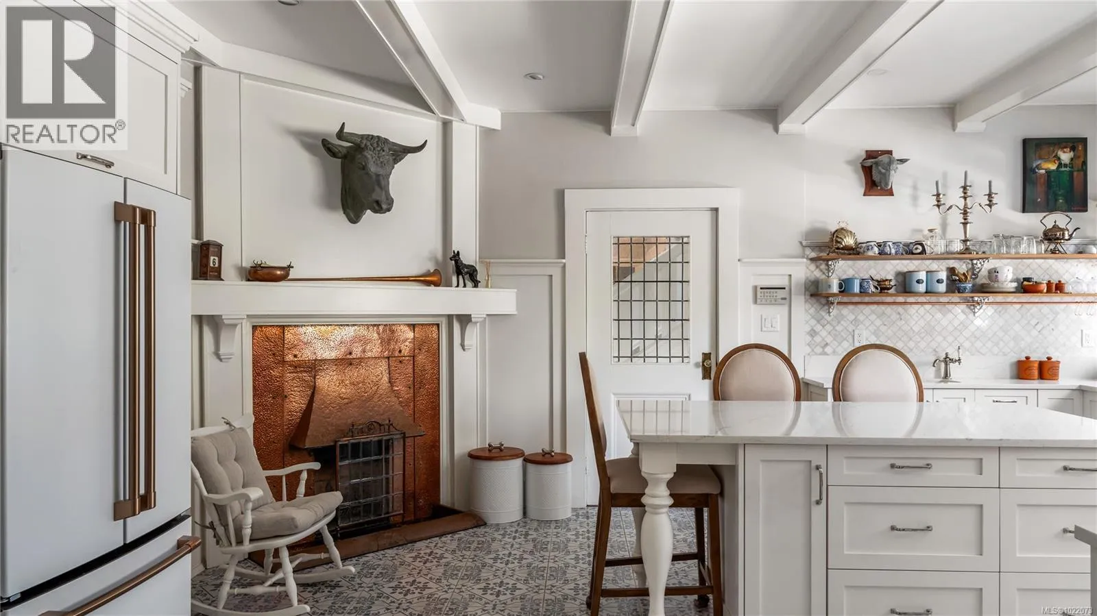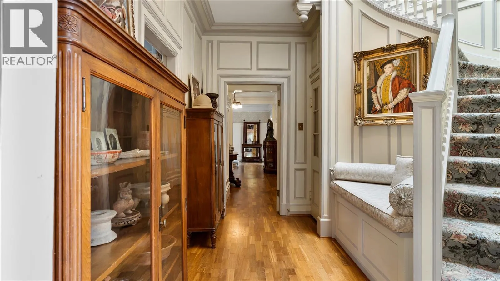 Introducing Kingsmount - a landmark estate in prestigious Oak Bay. Perched atop Gonzales Hill on nearly an acre of exquisitely landscaped grounds, this residence stands among Victoriaâs most distinguished architectural treasures. Originally designed by renowned architects Samuel Maclure and Francis Rattenbury, with a later addition by D.C. Frame, Kingsmount is a masterful expression of British Arts and Crafts design, where heritage craftsmanship meets refined modern luxury. A grand entry with original 100-year-old marble flooring sets a tone of timeless elegance. Ten-foot ceilings, oak flooring throughout the main level, and extraordinary original detailing speak to impeccable provenance. The main floor is ideal for intimate gatherings and grand-scale entertaining, offering an impressive living room, music room, library, private office, sitting room, and a chefâs kitchen anchored by a statement fireplace. A bright marble-floored sunroom opens to an extensive stone patio, gardens, and uninterrupted sightlines to the ocean and Mt. Baker beyond, creating a seamless indoor-outdoor lifestyle rarely found in Oak Bay. Upstairs, the stately primary suite is accompanied by five additional bedrooms, many with fireplaces and walk-in closets. Fir flooring throughout the upper level adds warmth and continuity. The lower level offers a private guest suite with separate entrance, wine room, and workshopâideal for extended family, guests, or staff. The grounds are enchanting: mature trees, garden pathways, water features, and expansive patios provide serene privacy and a setting that has hosted countless elegant gatherings. Located on one of Oak Bayâs most beautiful and coveted lanes, just steps to Gonzales Hill Park and minutes to beaches, trails, Oak Bay Village, top schools, Victoria Golf Club, fine dining, and boutique shopping. A rare and refined opportunity to own one of Oak Bayâs landmark estates - timeless, grand, and utterly exclusive. (id:27476)