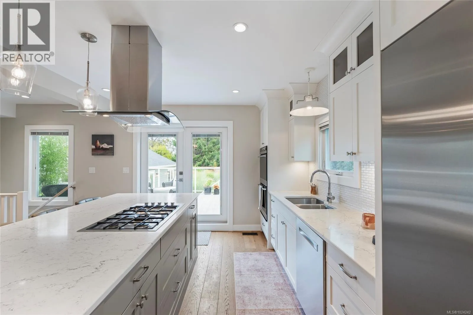Extremely rare opportunity in Oak Bay! This transformed character home sits on a 9060 ft² lot with a new, legal detached studio. Renovated down to the studs with design by Jenny Martin, the main home offers 4 beds + den, 3 baths, and an open-concept layout ideal for entertaining. The chef's kitchen, European Oak floors and cozy gas fireplace offer elevated living on the main, with flexibility from a bedroom, 4 piece bath, and office/den. Upstairs, a primary retreat boasts 2 walk-in closets, and lavish ensuite with soaker tub & heated floors (even in the shower). Another large bedroom with custom closet completes. There's more; the lower level offers a large family room, bedroom, 3 piece bath, laundry room, extra storage space and separate entrance. The backyard is an oasis with a 21x16 deck, stamped concrete patio with plumbed gas fire pit, hot tub, stunning landscaping & permitted 640 ft² studio/gym with separate heating and cooling, bedroom and full bath. The studio, with 9' ceilings and attic storage, creates a perfect space for a gym, art studio, family hangout spot or guest accommodation (easy to add future kitchen). This is a dream property for all demographics, just steps to top ranked schools, world class golf, cafe's & dining, Willow's Beach, Oak Bay Village and more. (id:27476)