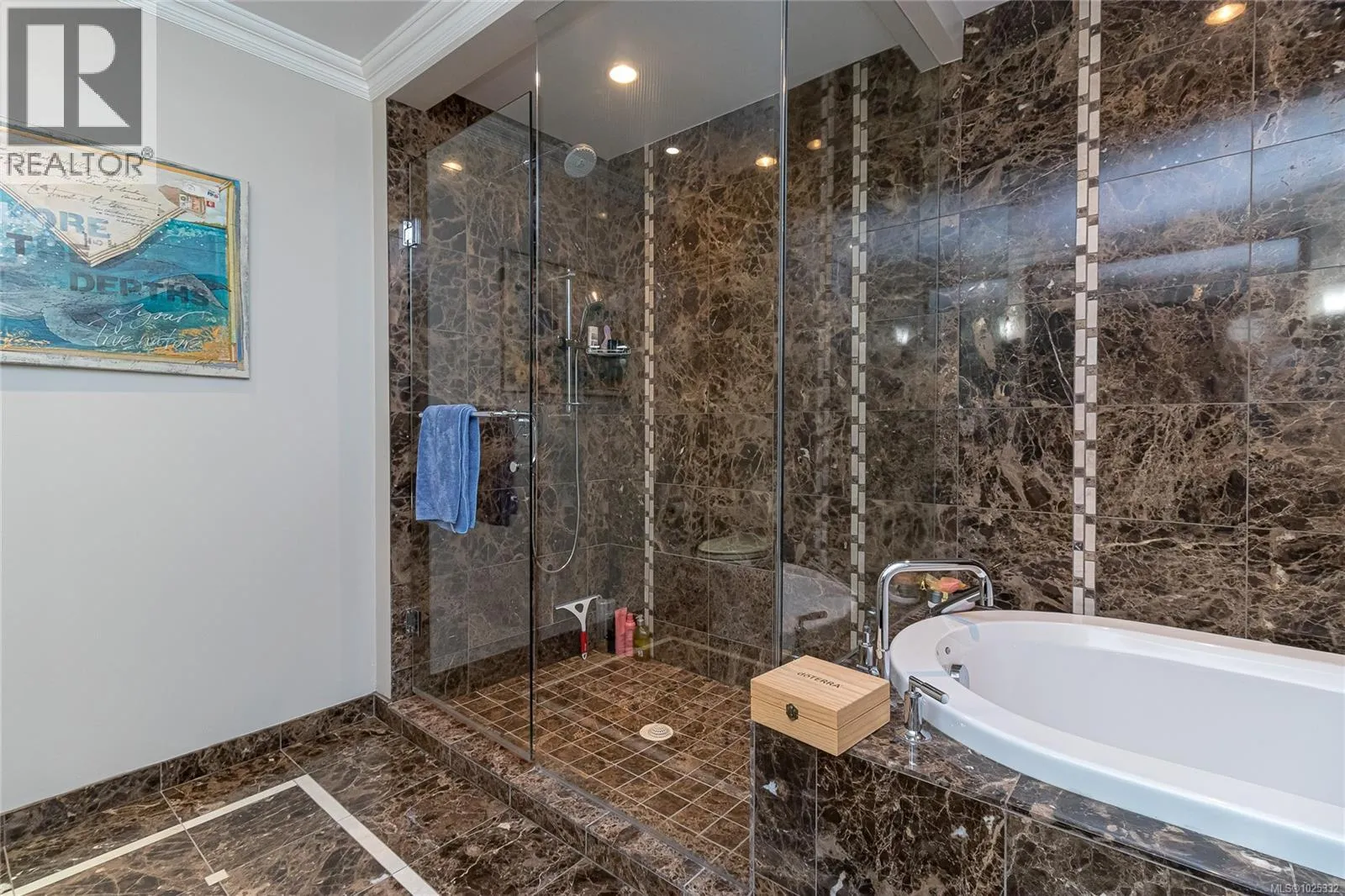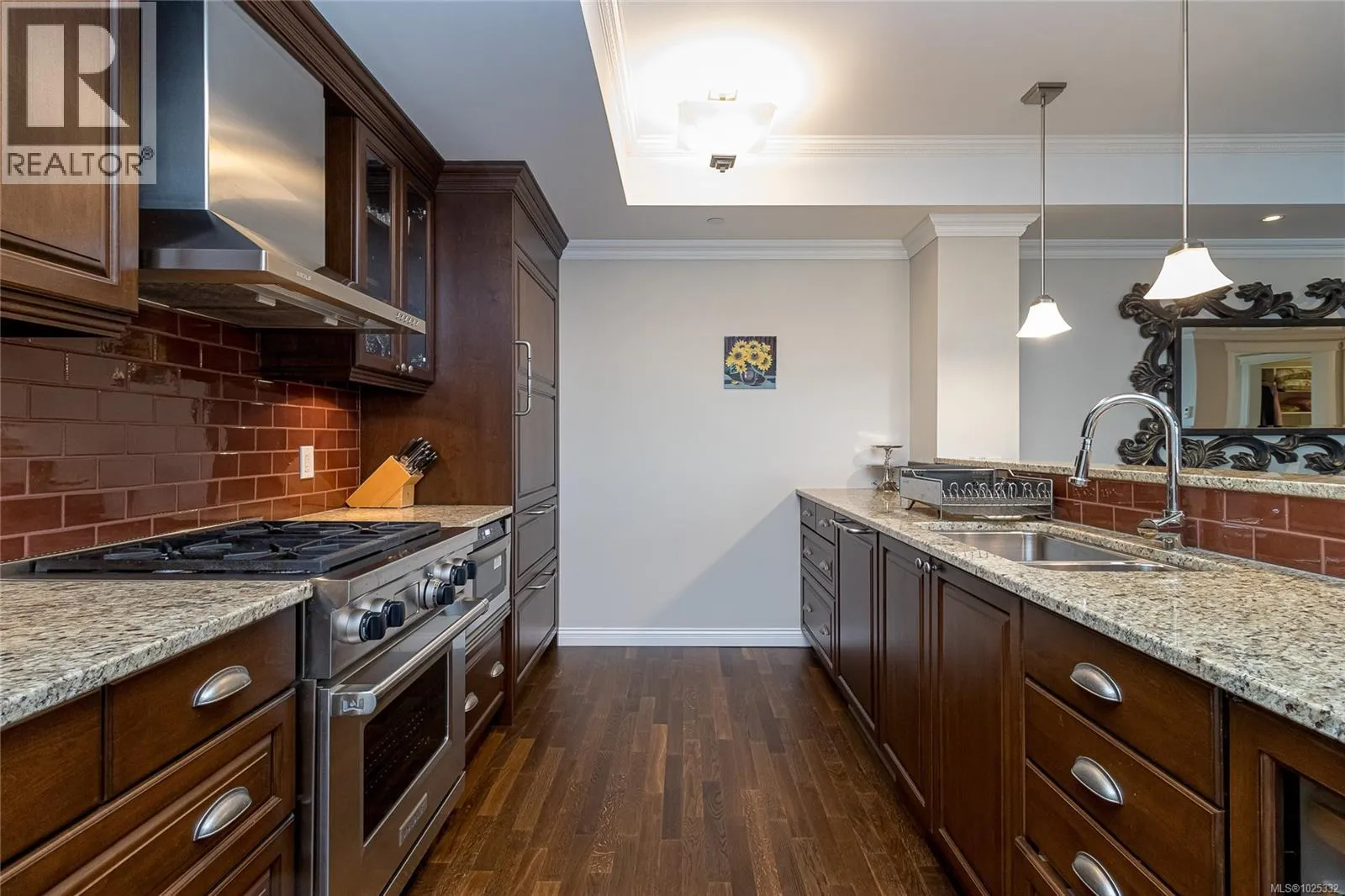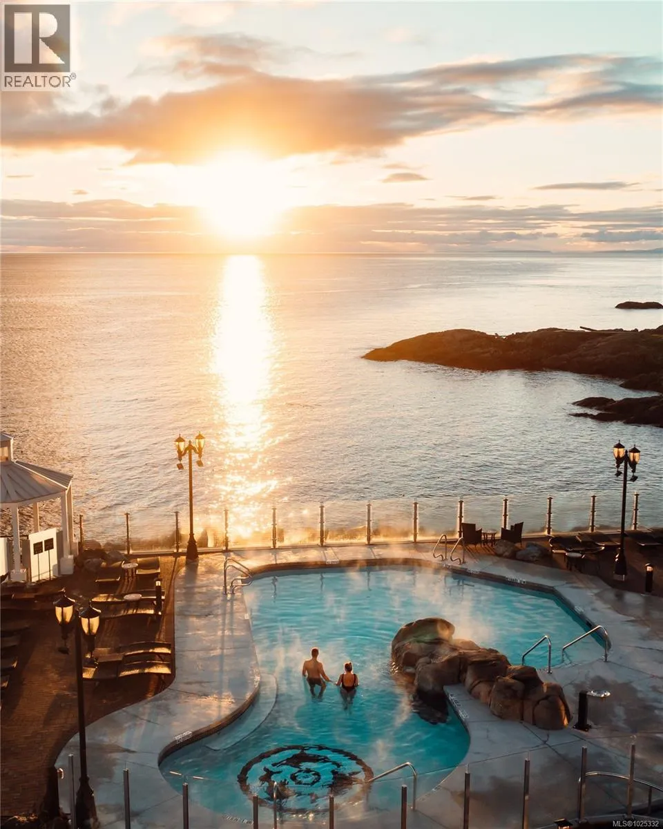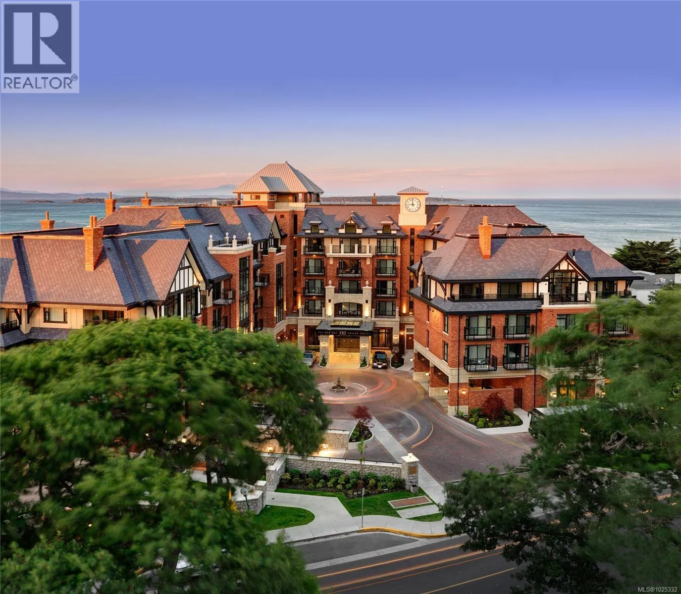 Savour ocean & island views from your private balcony and two bedrooms. Own one of the few private residences at the famous 5-star inspired Oak Bay Beach Hotel on the waterfront in Victoria. The luxurious ocean view suite offers 1,484 sq ft of living space, with high-end finishes. The gracious and open floor plan is ideal for entertaining with full gourmet kitchen and top-of-the-line stainless steel appliances & gorgeous granite counters. The sleeping wing offers guest room with full ensuite & grand primary suite with walk-in closet. The baths are all finished to spa standard with rich tiling, marble flooring, in-floor heat & marble accent walls. Bonus private double car garage in the underground parking. Worry free & pampered lifestyle for those who appreciate the finest. Indulge your senses in the ocean front spa, heated mineral pools & fitness studio. Wake up and have your coffee at Faros Café or enjoy your meal away from your kitchen by dining in The Snug Pub. World Class. (id:27476)