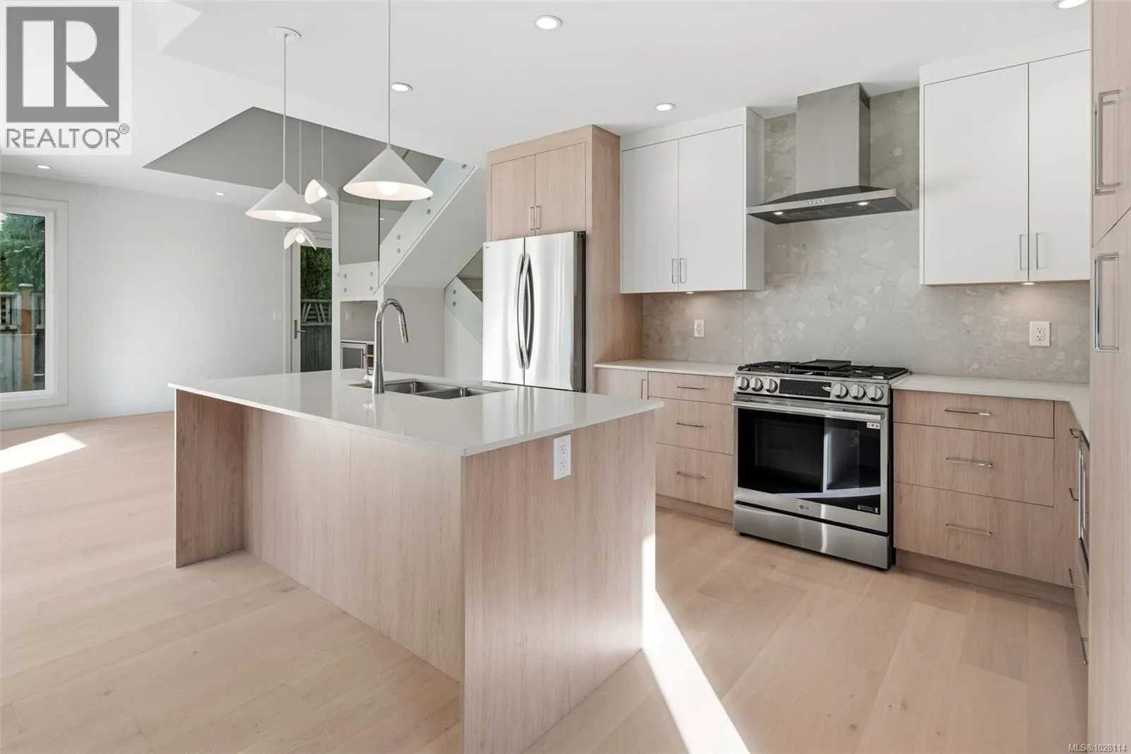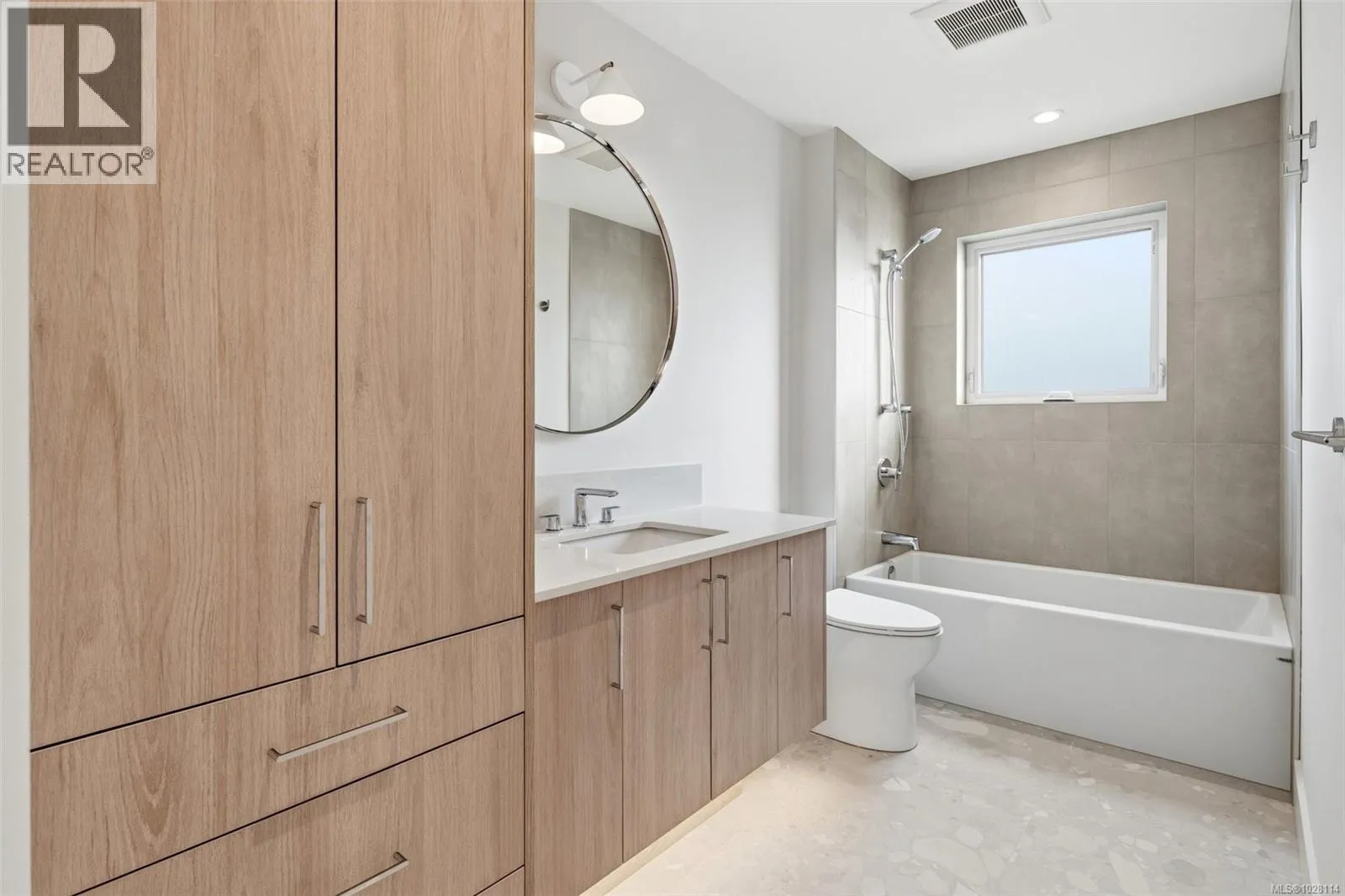 Introducing Willow Lane - two stunning brand new homes situated on one of South Oak Bay's most desirable streets. From the towering 18' plus dining room with wine bar to sun drenched west facing private yard, from the moment you enter this special property, you will know you have arrived somewhere special. Hardwood flooring, spectacular glass railing system, beautiful millwork and more. This spacious three bedroom and den residence is capped by a luxurious primary sanctuary including a four piece bath with a soaker tub and a private west facing deck where you can enjoy every sunset. Book your personal tour today. (id:27476)