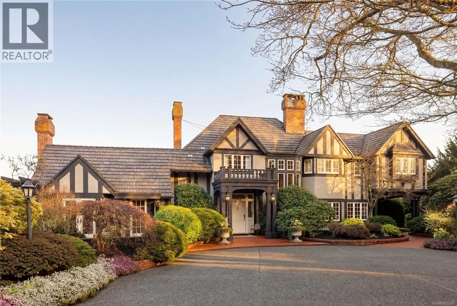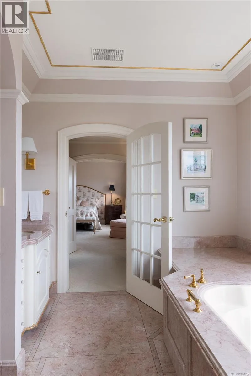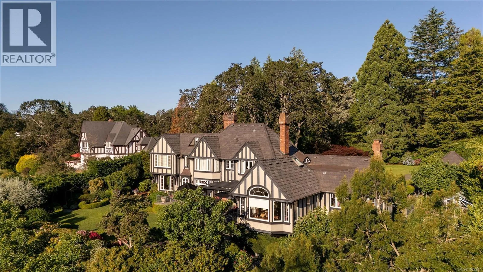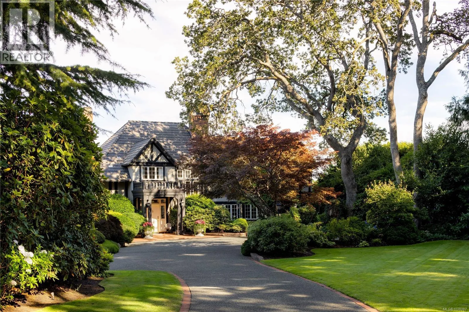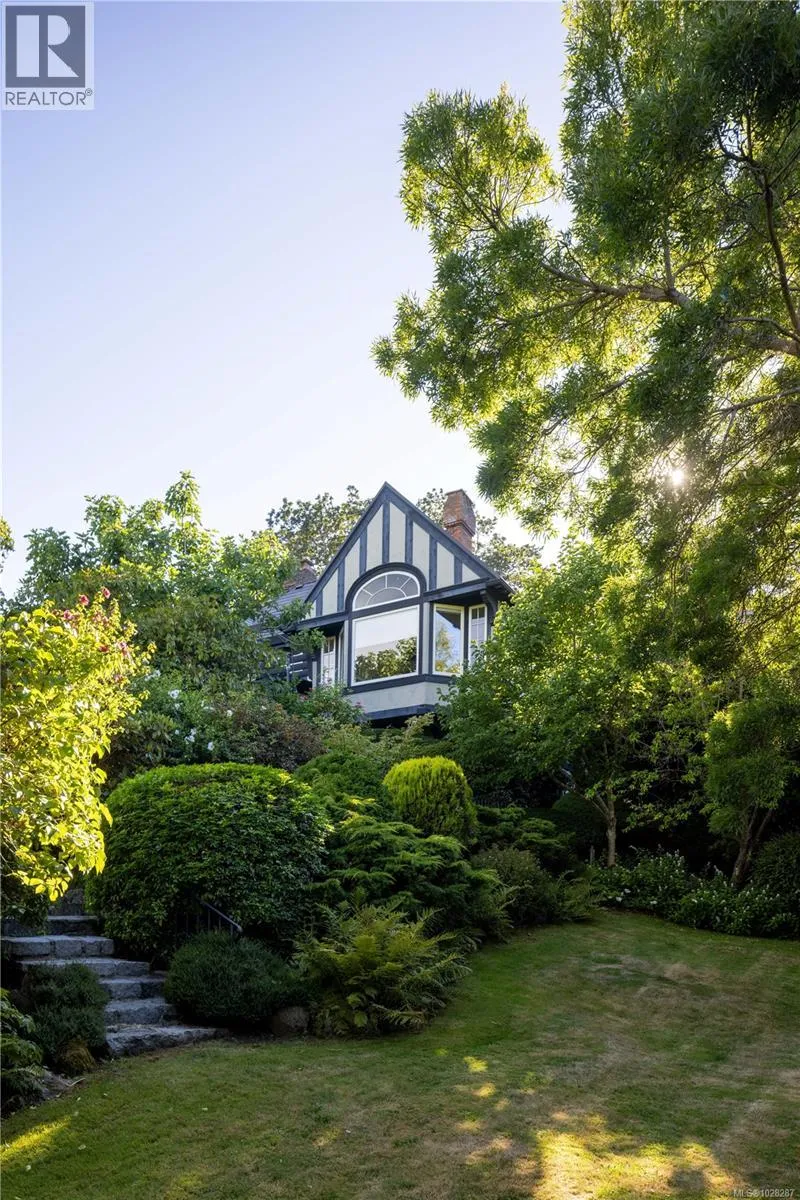 Set on a private 1.084-acre lot along a picturesque tree-lined street in prestigious Uplands, this dreamy 1914 Tudor home offers exceptional privacy and a rare blend of historic charm and refined modern living. Substantially renovated and thoughtfully expanded over time, the home showcases the finest materials while preserving its heritage character. Inside, impeccable attention to detail is evident throughout, with hardwood floors, marble finishes, stone vanities, and elegant ceiling mouldings that reflect the homeâs refined craftsmanship while blending timeless elegance with modern comfort. The kitchen and eating area feature beautiful arched ceilings and overlook the landscaped gardens, creating a stunning setting that will impress and entertain while seamlessly connecting indoor and outdoor living. The main floor offers an elegant and functional layout with a living room, card room, family room, office, and denâideal for both entertaining and everyday living. Upstairs, the spacious primary bedroom includes a large walk-in closet and a luxurious 6-piece ensuite with a bathtub perfectly positioned to capture sea views. Three additional bedrooms and three bathrooms complete the second floor. The beautifully landscaped grounds provide a private retreat with a tennis court, greenhouse, detached double garage, and a self-contained lower suite ideal for in-laws or visiting guests. Enjoy uninterrupted water views from this exceptional property. Adding further value, the property presents future development potential with the possibility to subdivide into three lots: two stratified lots of 6,759 sq ft each and one SFD lot of 33,351 sqft. Minutes from schools, parks, UVic, Uplands Golf Club, and the Royal Victoria Yacht Club, this is a truly special offering in one of Victoriaâs most coveted neighbourhoods. (id:27476)