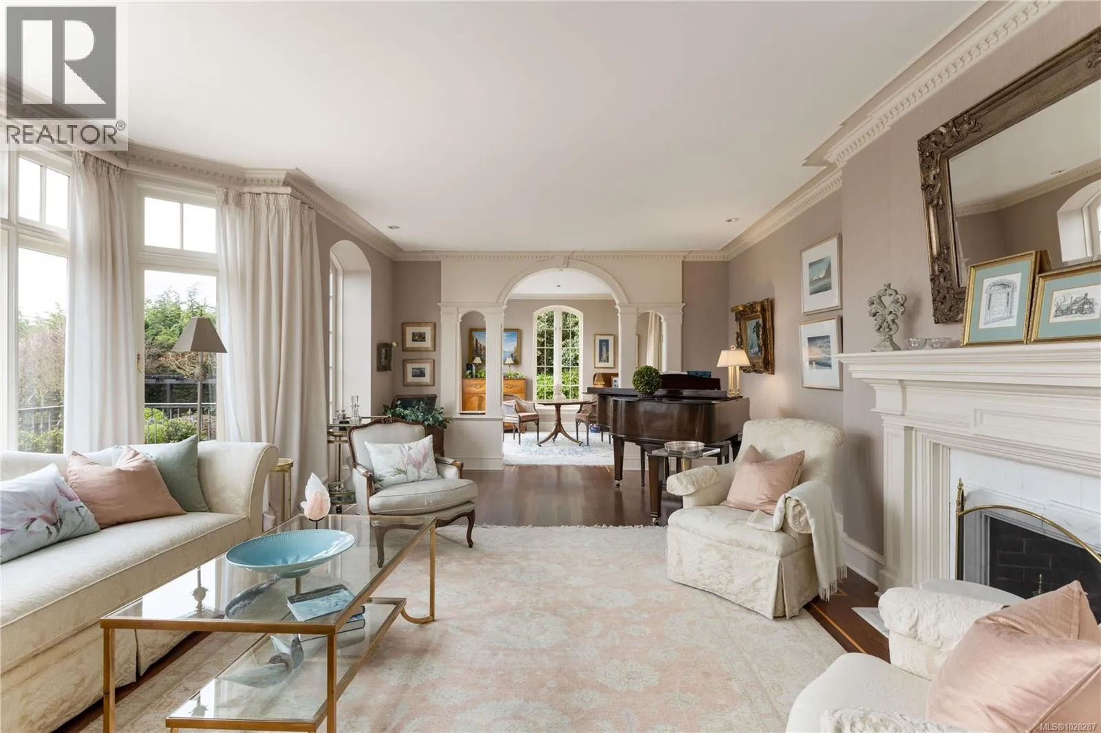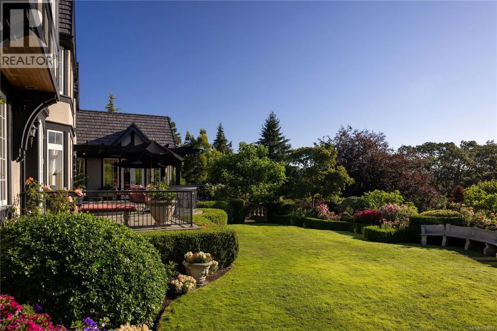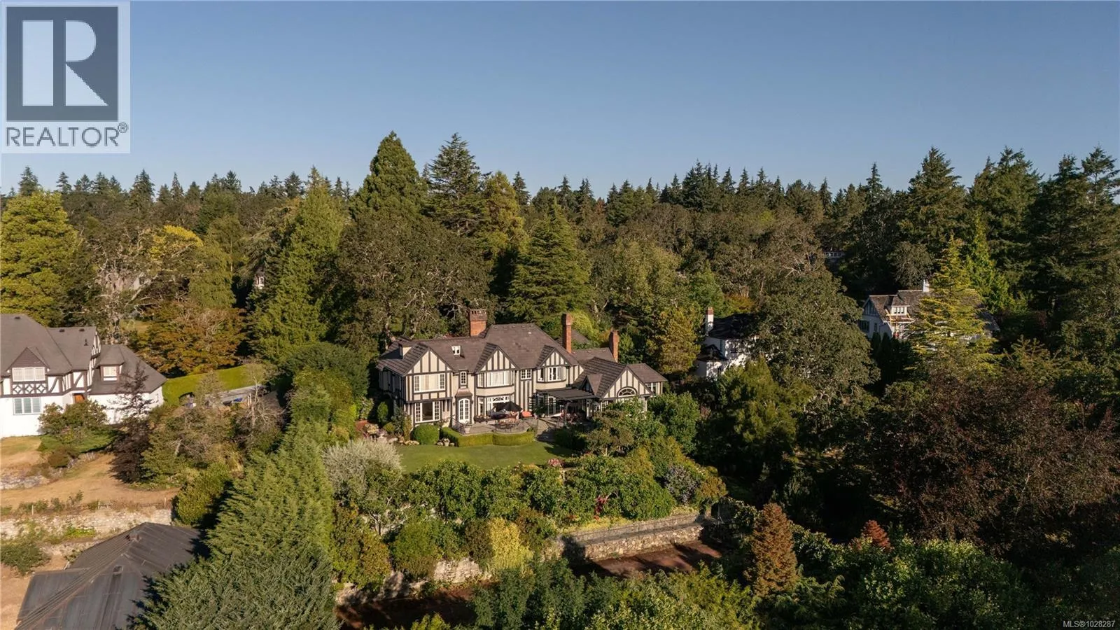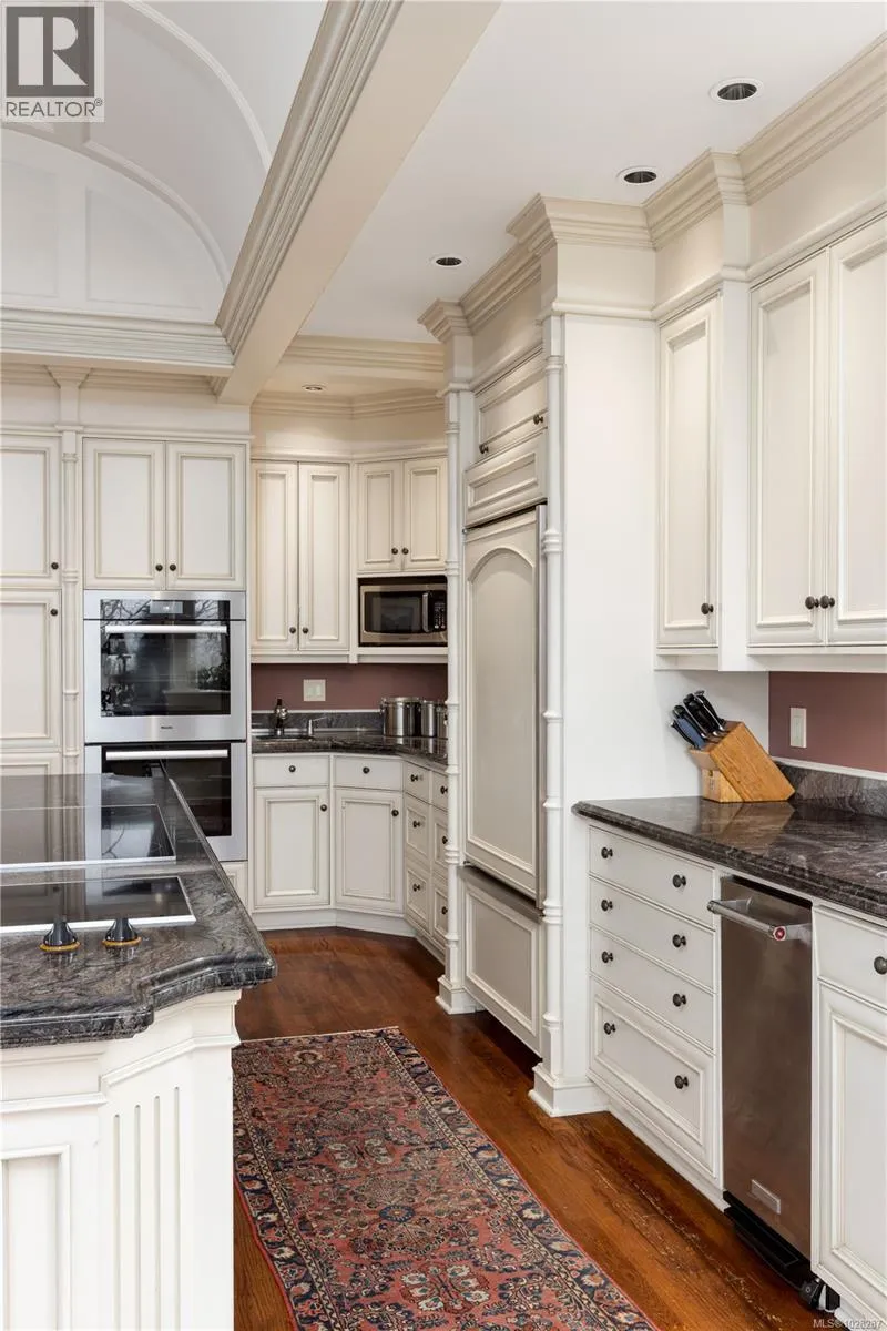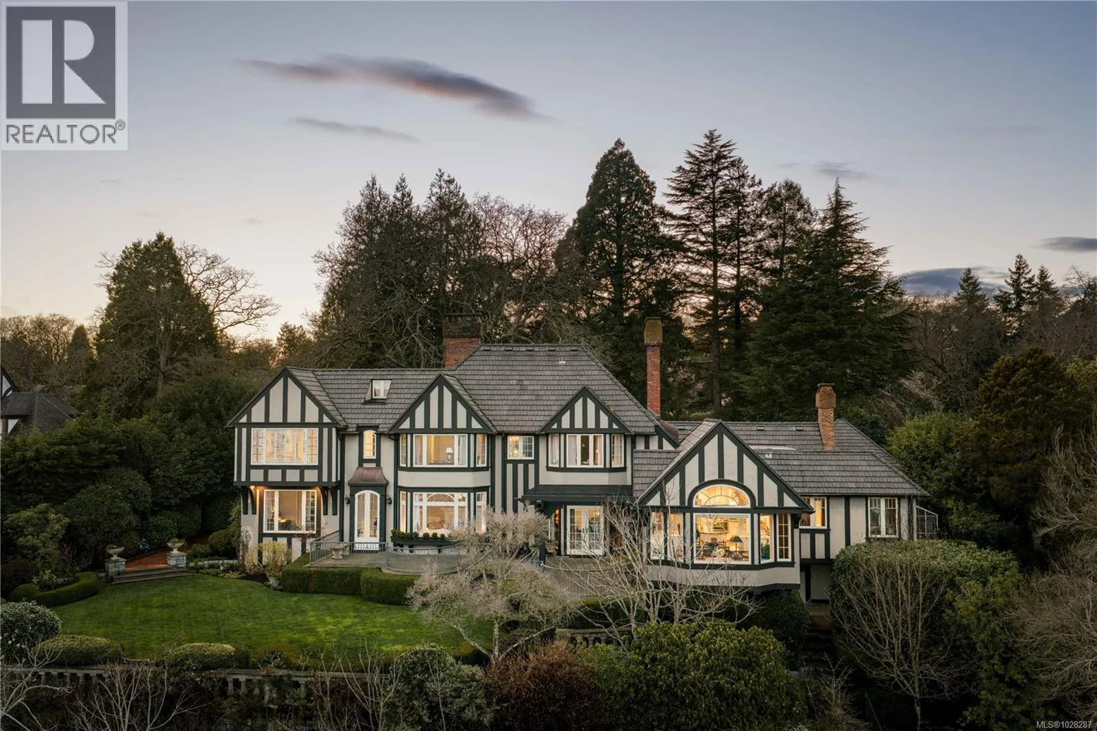 Set on a private 1.084-acre lot along a picturesque tree-lined street in prestigious Uplands, this dreamy 1914 Tudor home offers exceptional privacy and a rare blend of historic charm and refined modern living. Substantially renovated and thoughtfully expanded over time, the home showcases the finest materials while preserving its heritage character. Inside, impeccable attention to detail is evident throughout, with hardwood floors, marble finishes, stone vanities, and elegant ceiling mouldings that reflect the homeâs refined craftsmanship while blending timeless elegance with modern comfort. The kitchen and eating area feature beautiful arched ceilings and overlook the landscaped gardens, creating a stunning setting that will impress and entertain while seamlessly connecting indoor and outdoor living. The main floor offers an elegant and functional layout with a living room, card room, family room, office, and denâideal for both entertaining and everyday living. Upstairs, the spacious primary bedroom includes a large walk-in closet and a luxurious 6-piece ensuite with a bathtub perfectly positioned to capture sea views. Three additional bedrooms and three bathrooms complete the second floor. The beautifully landscaped grounds provide a private retreat with a tennis court, greenhouse, detached double garage, and a self-contained lower suite ideal for in-laws or visiting guests. Enjoy uninterrupted water views from this exceptional property. Adding further value, the property presents future development potential with the possibility to subdivide into three lots: two stratified lots of 6,759 sq ft each and one SFD lot of 33,351 sqft. Minutes from schools, parks, UVic, Uplands Golf Club, and the Royal Victoria Yacht Club, this is a truly special offering in one of Victoriaâs most coveted neighbourhoods. (id:27476)
