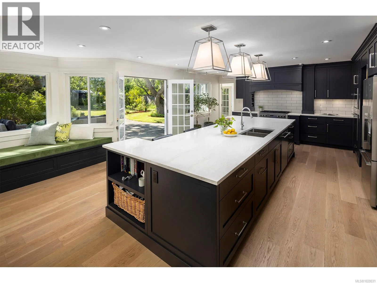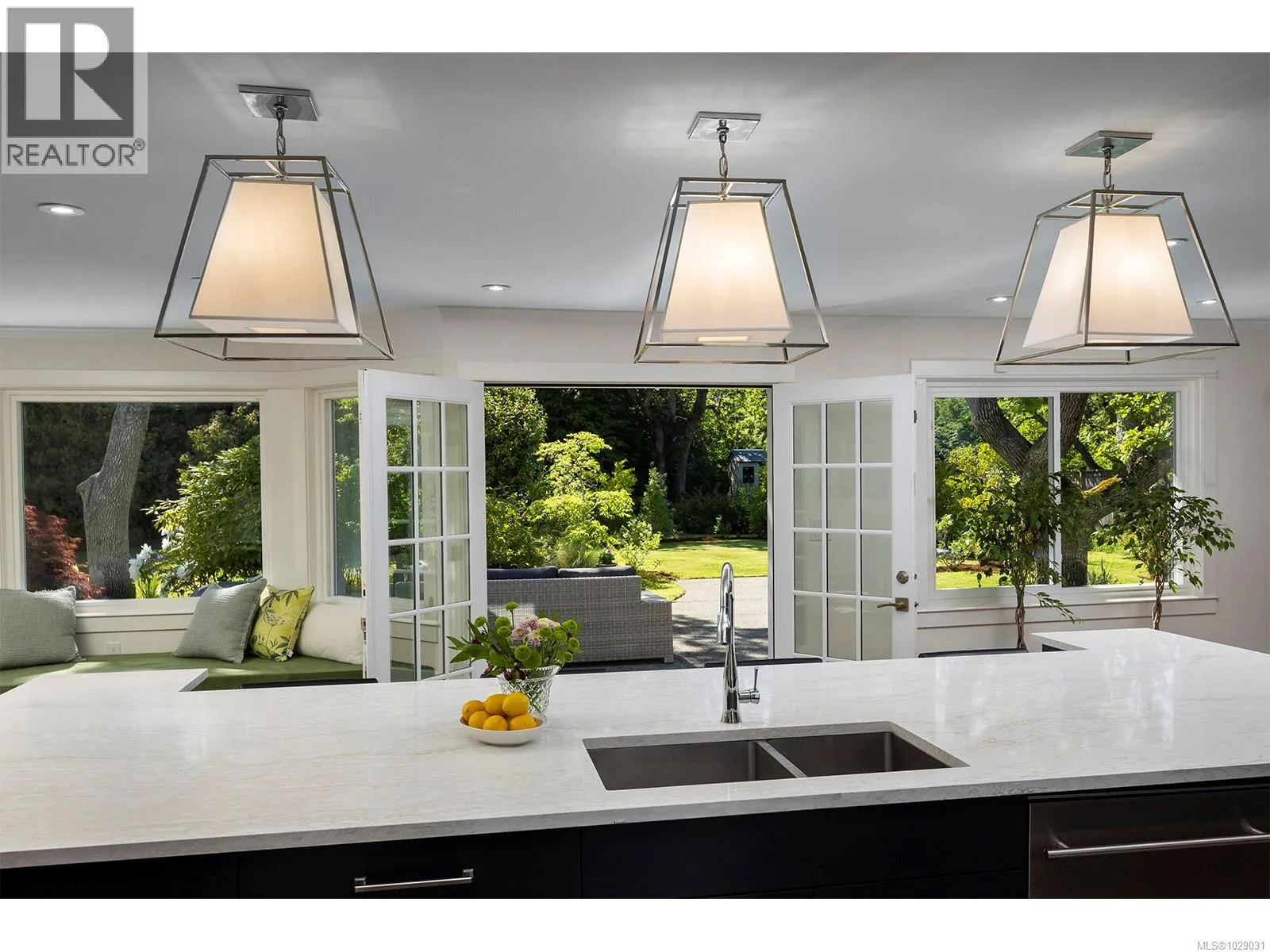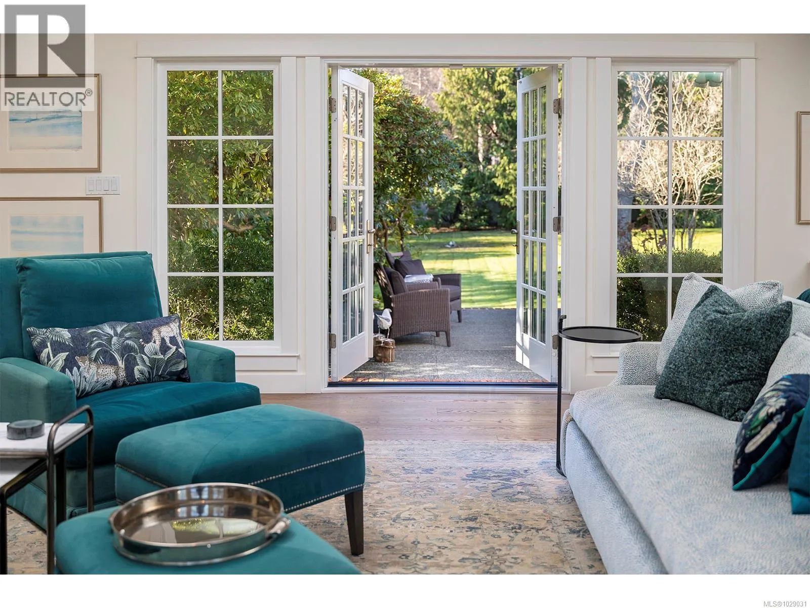 A gracious entry hall welcomes you and 5 sets of French doors invite the beauty of the gardens inside to all the main areas of this exquisitely renovated home. The 4 bedrooms plus den & 4 bath home sits on a huge level lot with a delightful W-facing & exceptionally private, manicured back garden. The beautifully appointed interior boasts wide plank white oak flooring and in floor heat throughout. A stunning recent renovation includes a GOURMET KITCHEN with 2 islands, 2 sinks, and an enviable WALK-IN PANTRY and 2nd fridge. This spacious home is ideal for entertaining indoors and out. On the upper level a stunning primary bedroom with a private balcony and 5 pce ensuite and dressing room, two more spacious bedrooms each with walk-in closetâs and access to the ensuite bath and upstairs laundry. The lower level with its own entrance is an ideal NANNY or LIVE-IN caregiver SUITE complete with kitchen, bedroom and bath. Wine storage, home gym room, and games rooms and the potential to add yet another bedroom are also on this level. Situated Close to The Victoria Yacht Club, Golfing, Uplands Park and the very best schools. (id:27476)