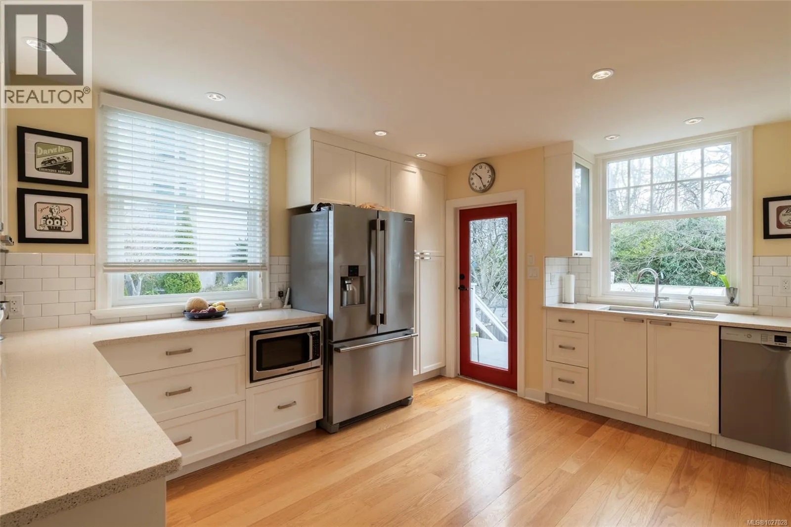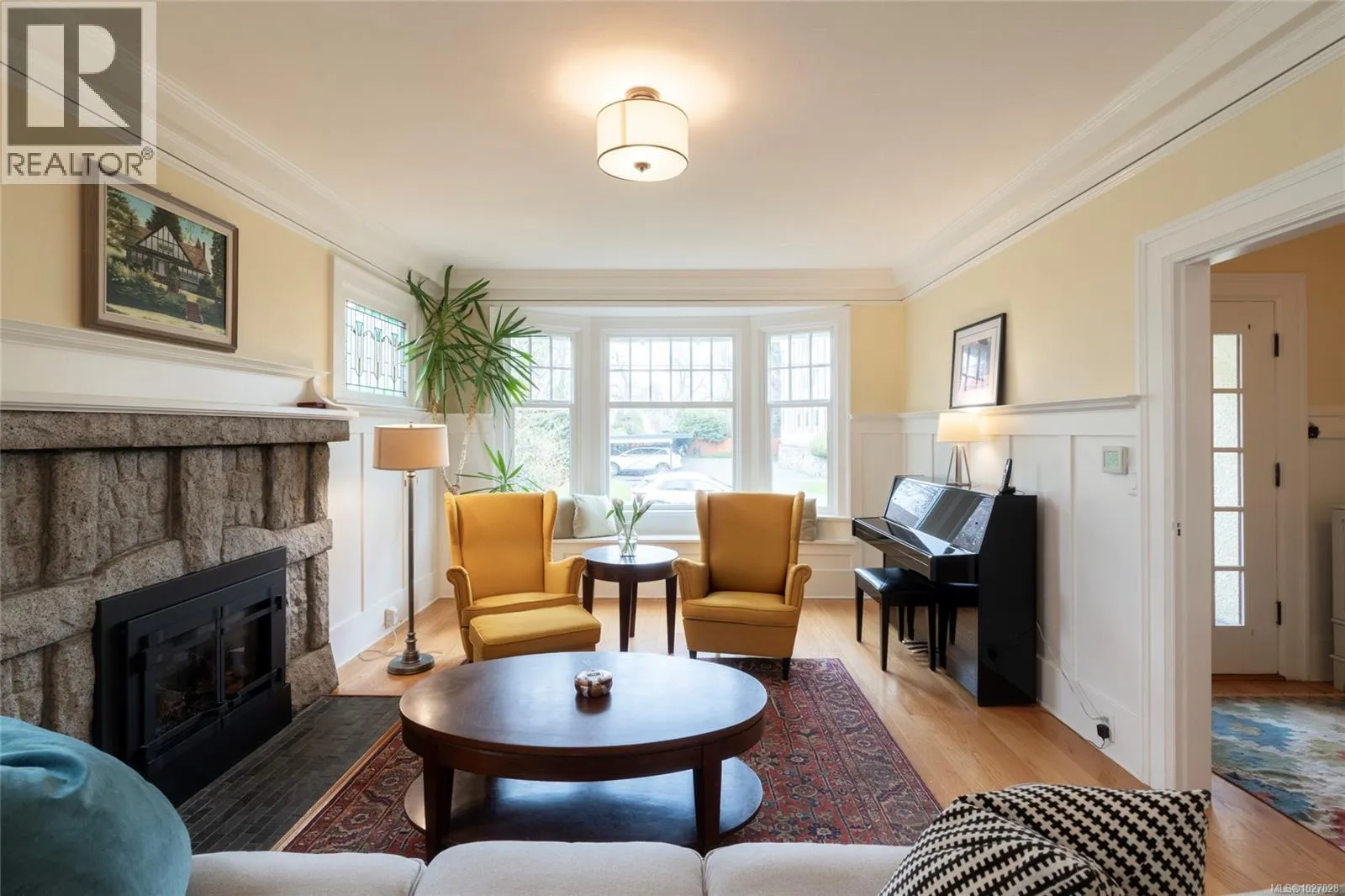Welcome to 2663 Orchard in South Oak Bay and discover the perfect blend of historic elegance and modern versatility. This stunning 2,854 sqft home offers an enviable lifestyle in the heart of Oak Bay, just 40 steps from Oak Bay Marina and swimming/paddling via Orchard Ave beach. With 5 bedrooms and 3 bathrooms, this home is rich in architectural detail, featuring exquisite stained-glass windows, coffered ceilings, and original hardwood floors. The living room serves as a cozy sanctuary with its grand stone fireplace and built-in window seating. Highlights include a flexible layout including 2 kitchens, making it ideal for multi-generational living or premium guest accommodations. Modern comforts with an updated bright, chefâs kitchen with stainless steel appliances. Outdoor living with private, sun-drenched backyard, a brick patio and mature landscaping accompanied by powered shed and EV capability at the carport. Don't miss this rare opportunity to own a piece of Oak Bayâs heritage. (id:27476)