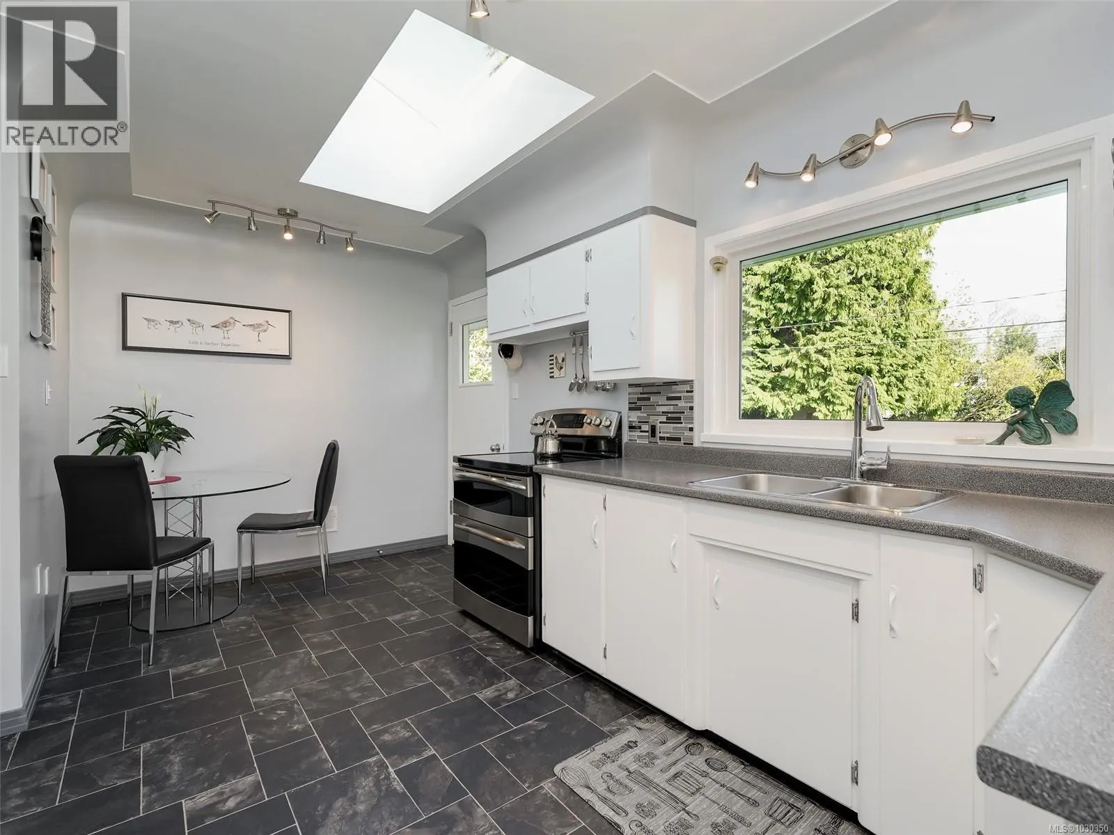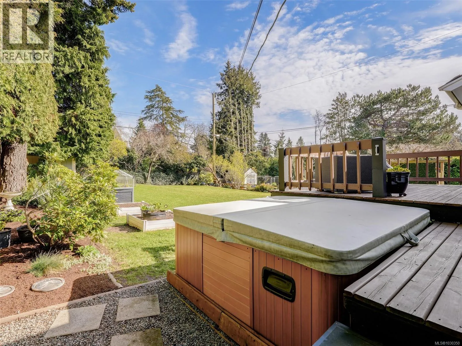 Set on the sought-after Lansdowne Slope, this well-kept 1950s bungalow sits on a sunny, private 9,940 sq. ft. lot with room to breathe and space to enjoy. Inside, warm oak floors, two fireplaces, a new roof, and new skylightsâall just five months oldâplus an efficient heat pump deliver comfort and peace of mind. The bright dining room opens to a large south-facing deck with stunning Olympic Mountain views, ideal for morning coffee and summer entertaining. A separate back deck with a hot tub offers a private spot to unwind. The mostly level yard gives kids and pets plenty of space to roam. Walk two blocks to Carnarvon Park's fun water park, stroll 20 minutes to Willows Beach, or head to Oak Bay Rec Centre, Camosun College, local shops, cafés, and groceriesâall within easy reach. This is a solid, move-in-ready home in a location that rarely lets homes sit. Book your easily arranged showing before someone else does. (id:27476)