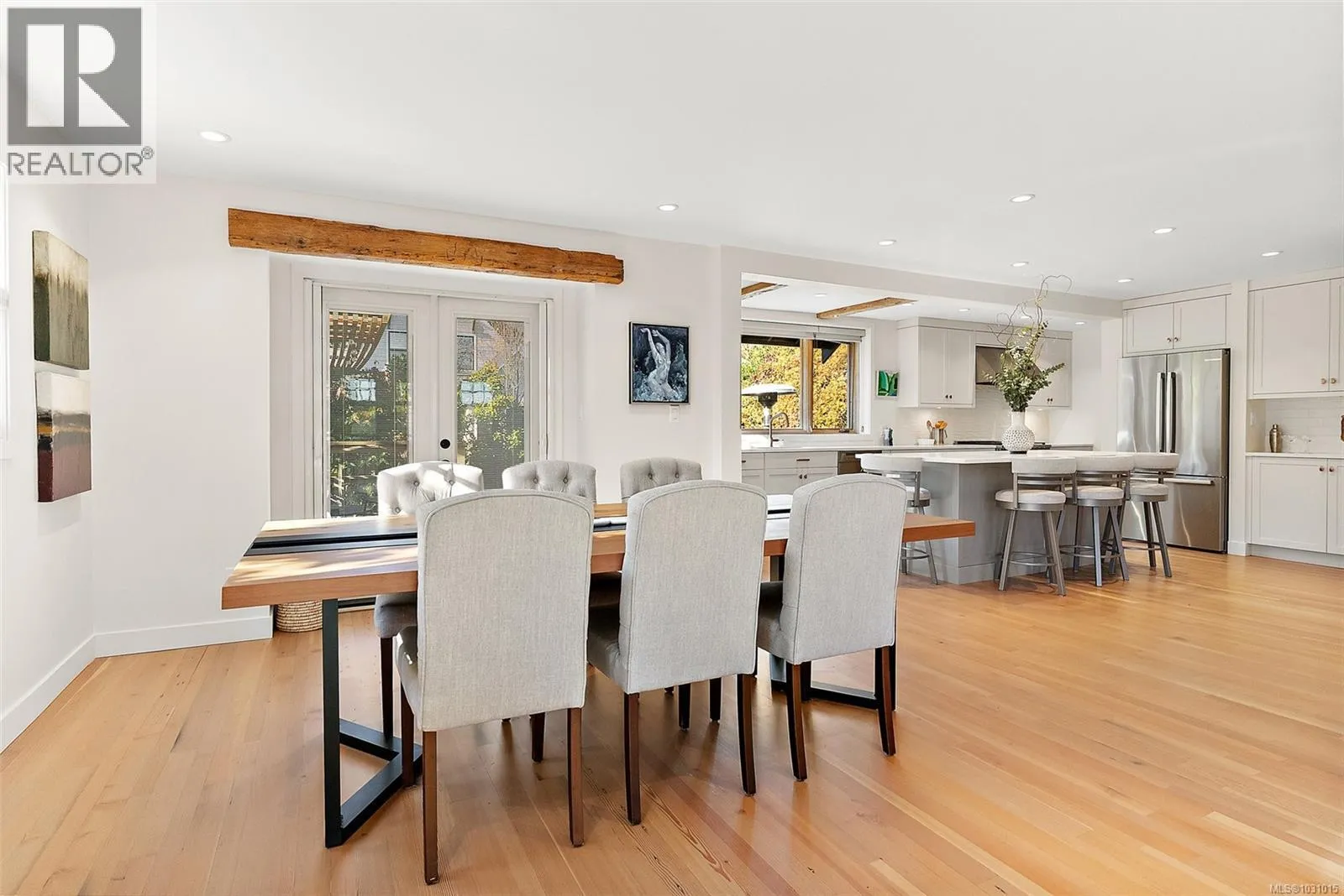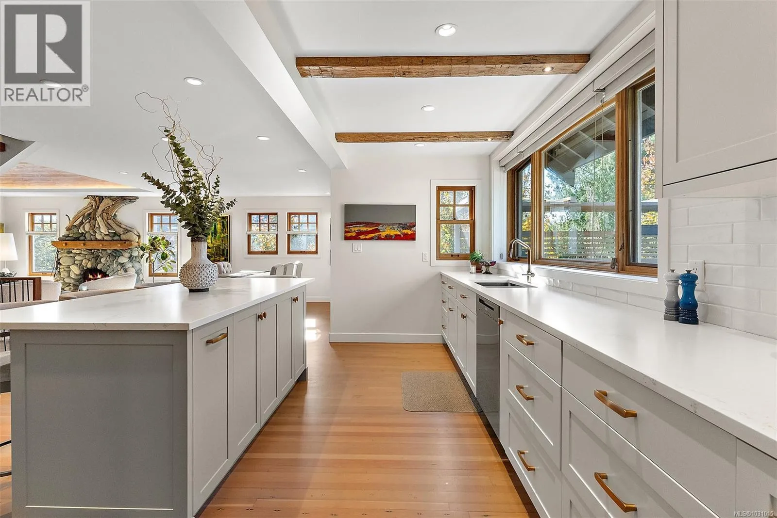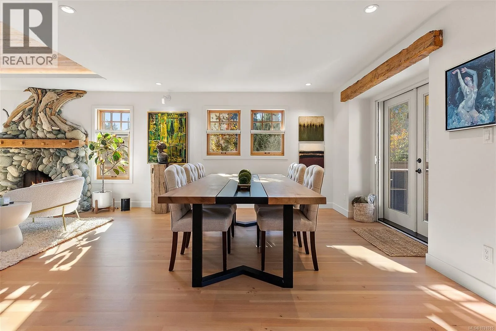 Gorgeous executive home in coveted South Oak Bay, set on a quiet, tree-lined street just steps to the beach. Now offered at a new price, this is exceptional value for the calibre of construction, design, and finishingâtruly a must-see to fully appreciate. Completely reimagined with a no-expense-spared approach, the home showcases remarkable craftsmanship and curated detail throughout. Standout features include a custom fireplace by Eckerman Studios, 200-year-old Pennsylvania oak beams, a barrel-vaulted ceiling, and a striking staircase crafted from Haida Gwaii cedar. Designed for refined living and effortless entertaining, the main level offers bright, open spaces and a chefâs kitchen with premium Miele appliances, flowing seamlessly to a west-facing backyard. The outdoor setting is equally impressive, with a heated dining area, beautifully landscaped gardens just coming into bloom for spring, a spacious deck, and private hot tubâyour own tranquil retreat. Extensive 2022 upgrades include electrical, hot water on demand, radiant in-floor heating, and A/C in the primary suite. The serene top-floor primary retreat features a spa-inspired bath, walk-in closet with second laundry, and a private deck. The lower level offers a cozy media room, wind storage and 2 additional bedrooms for family or guests. (id:27476)