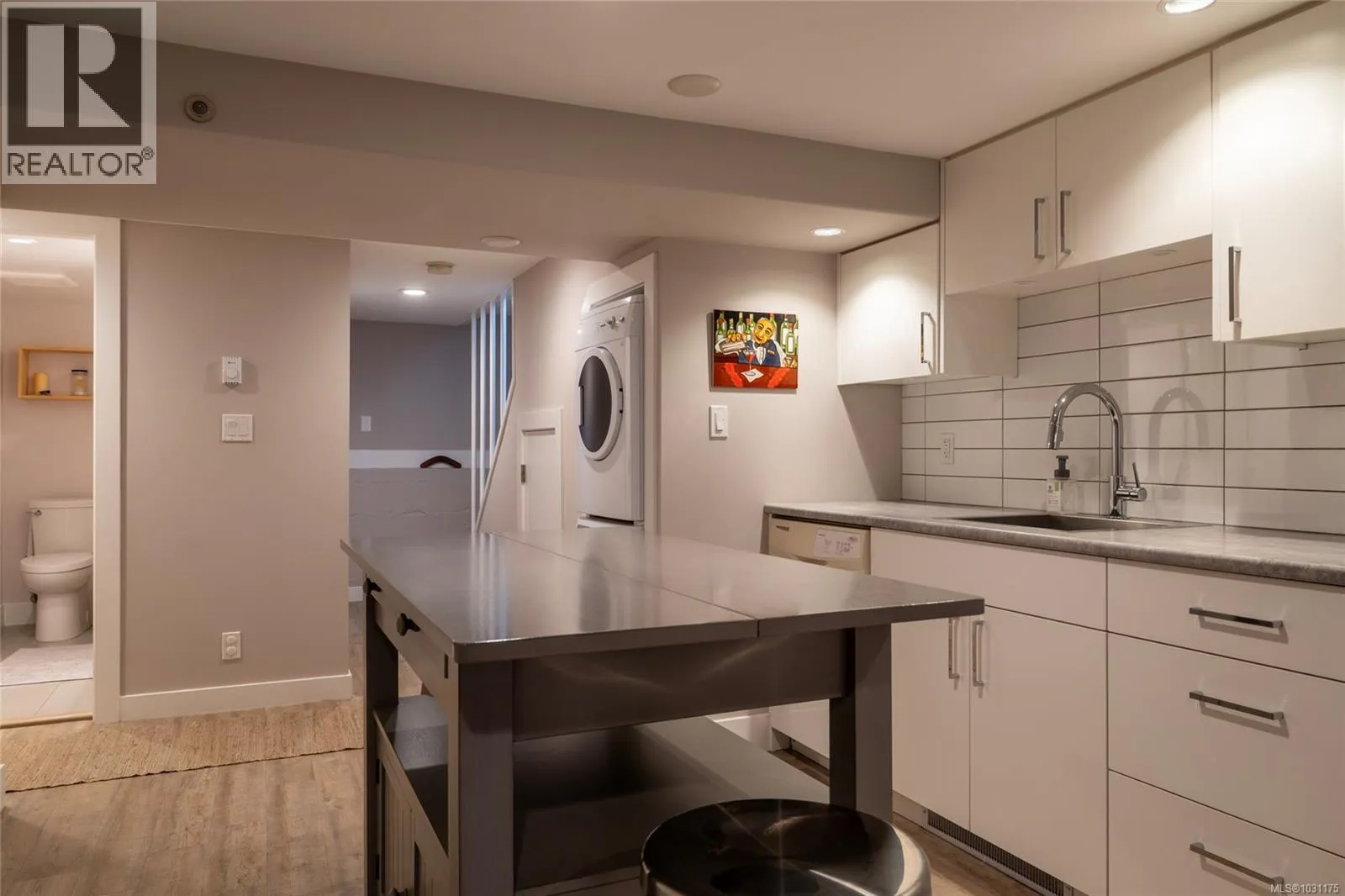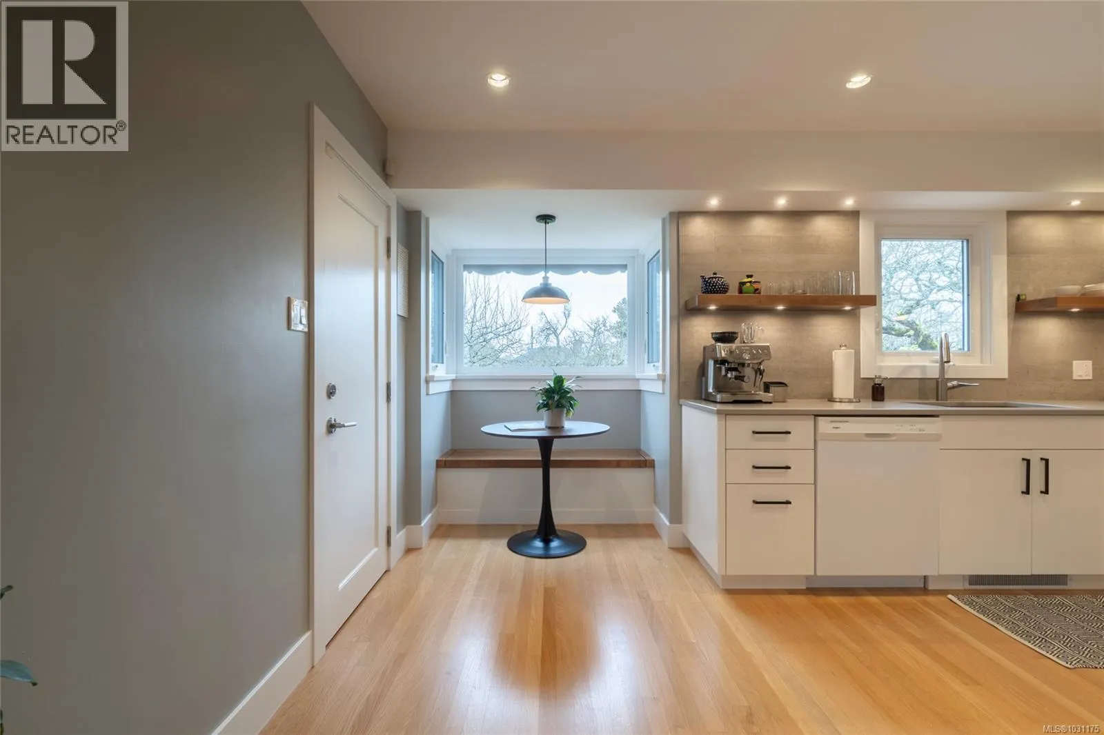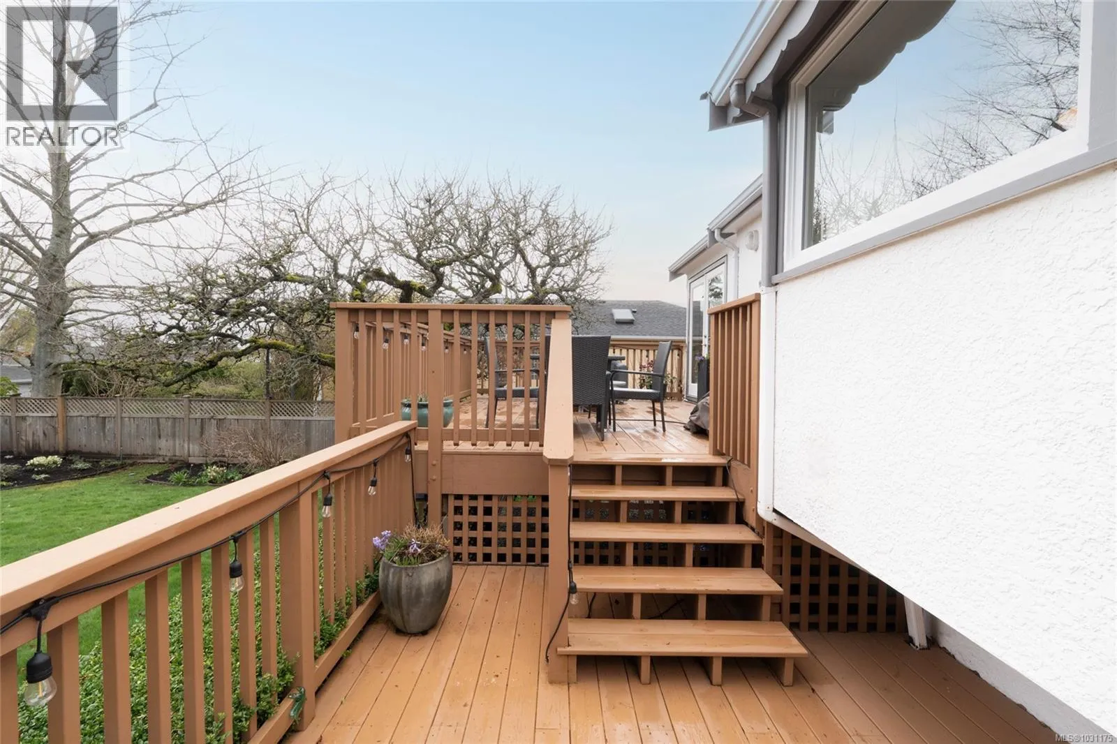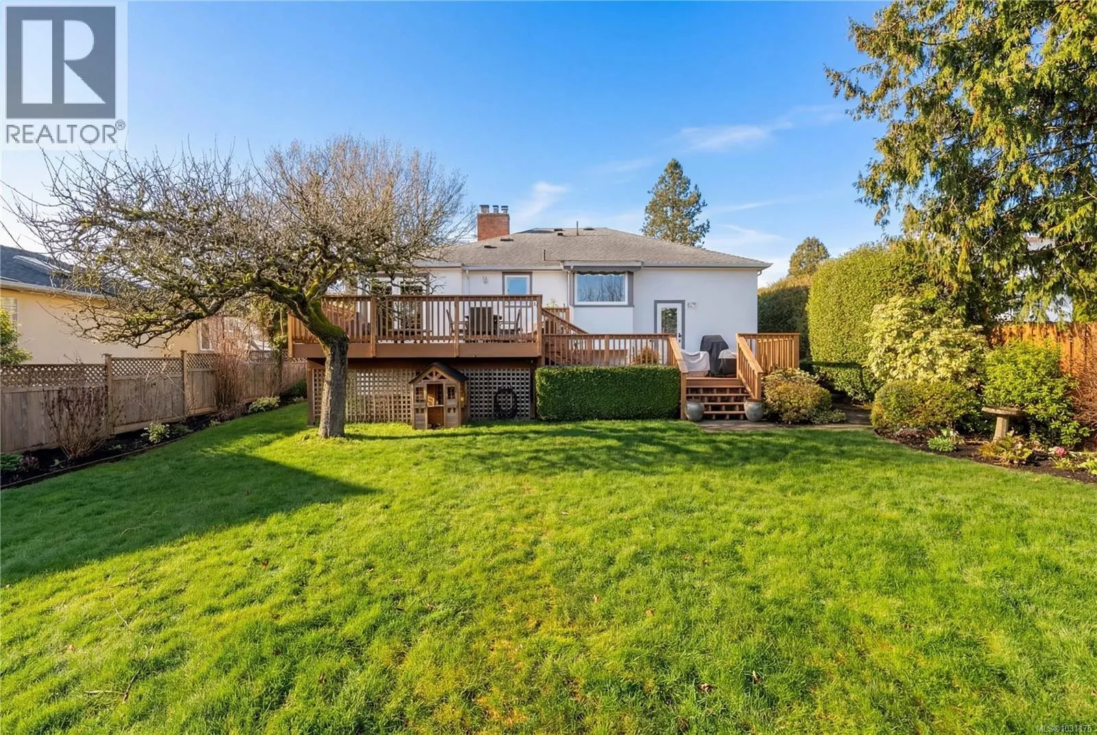 Welcome to 2275 Allenby, the quintessential Oak Bay family home. This updated 3Bed/2Bath (including potential 1-bed in-law suite) home spans 2,021 sqft across two levels of living space. Youâre welcomed to the main floor w/hardwood floors throughout, while large windows fill the home w/natural light. The kitchen features SS appliances, concrete tile backsplash, wood floating shelves & integrated lighting, plus the perfect breakfast nook capturing the garden view. The spacious living room offers gas fireplace, creating the perfect place to relax or entertain. The dining room is ideal for family gatherings and features French doors opening onto the rear deck overlooking the expansive, beautifully landscaped South facing backyard. Retreat to the lower level which includes a 1-bed in-law suite complete w/separate laundry, bathroom, oversized walk-in closet/storage & gas fp. Ideally located just steps to Estevan Village, Carnarvon Park, Willows Beach, all school levels & Uplands Golf Course (id:27476)