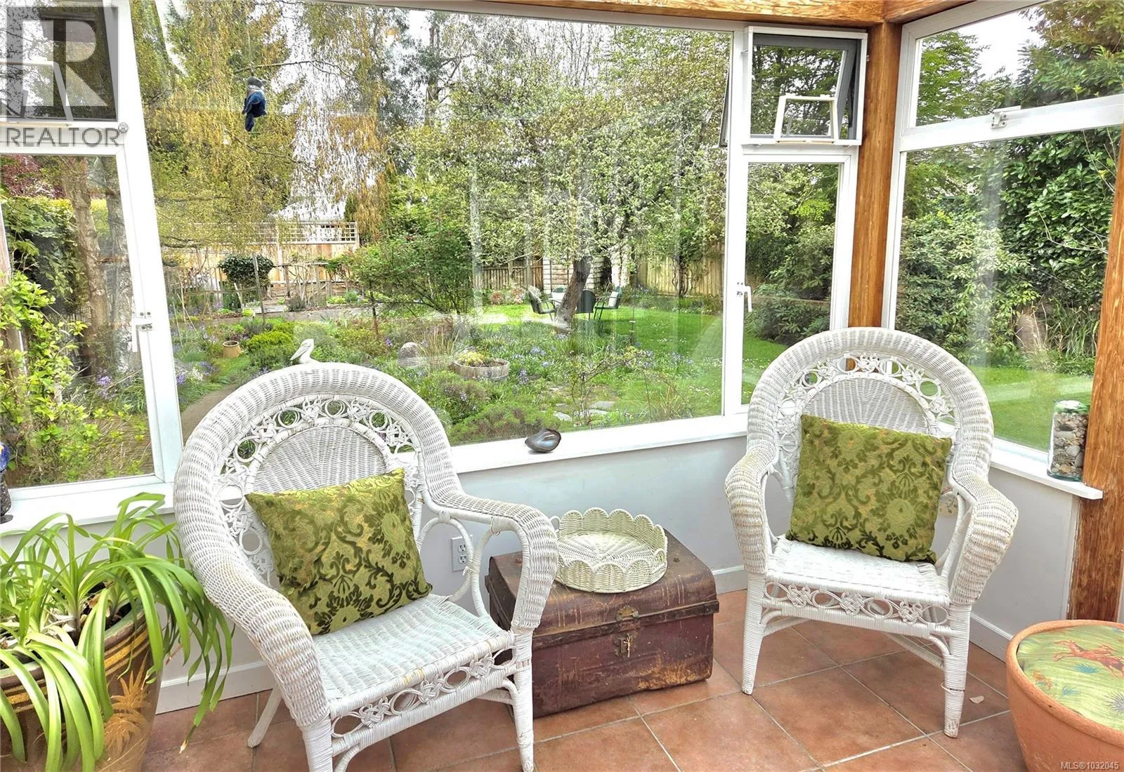 Welcome to 2125 Hall Road, located on a quiet cul de sac in South Oak Bay & steps to McNeill Bay. Built in 1938, this very pretty home was expanded & updated in 1995, & now enjoys 2298 finished sq ft including: 4 bedrooms, 2 full baths, an enormous bright kitchen & 12'x10' sunroom overlooking the gorgeous, fully fenced back garden. Bonus: the wonderful elements of a 30's home remain: hardwood floors, French doors & space-saving built-ins. Lower Level 1184 sq ft, walk-out, unfinished basement (6'8'') adds potential for many options. Set on a 10,000 sq ft lot, this primarily perennial garden was professionally designed to create wonderful, private, outdoor spaces & thoughtfully curated seating areas. Veggie garden, compost station, greenhouse, 2 6x5 sheds! Fabulous lawn for croquet, bocce & Teddy Bear Picnics. A great family home in South Oak Bay, coveted for its walkability to schools, amenities, parks and beaches. Enjoy immediate occupancy! (id:27476)