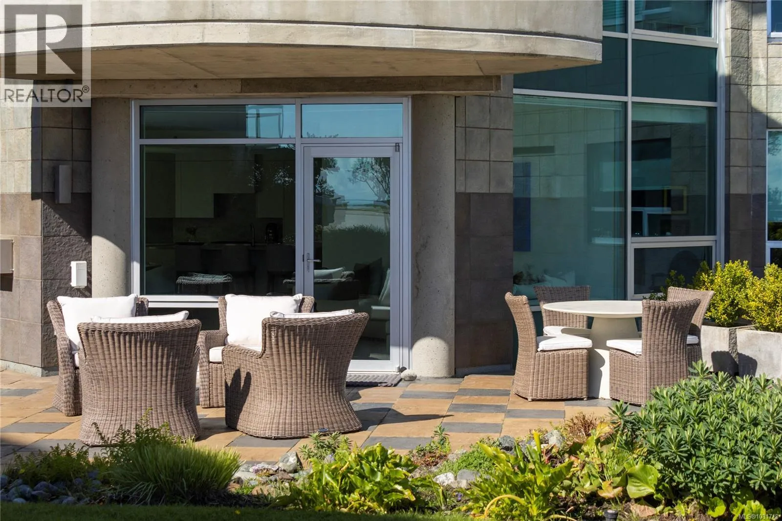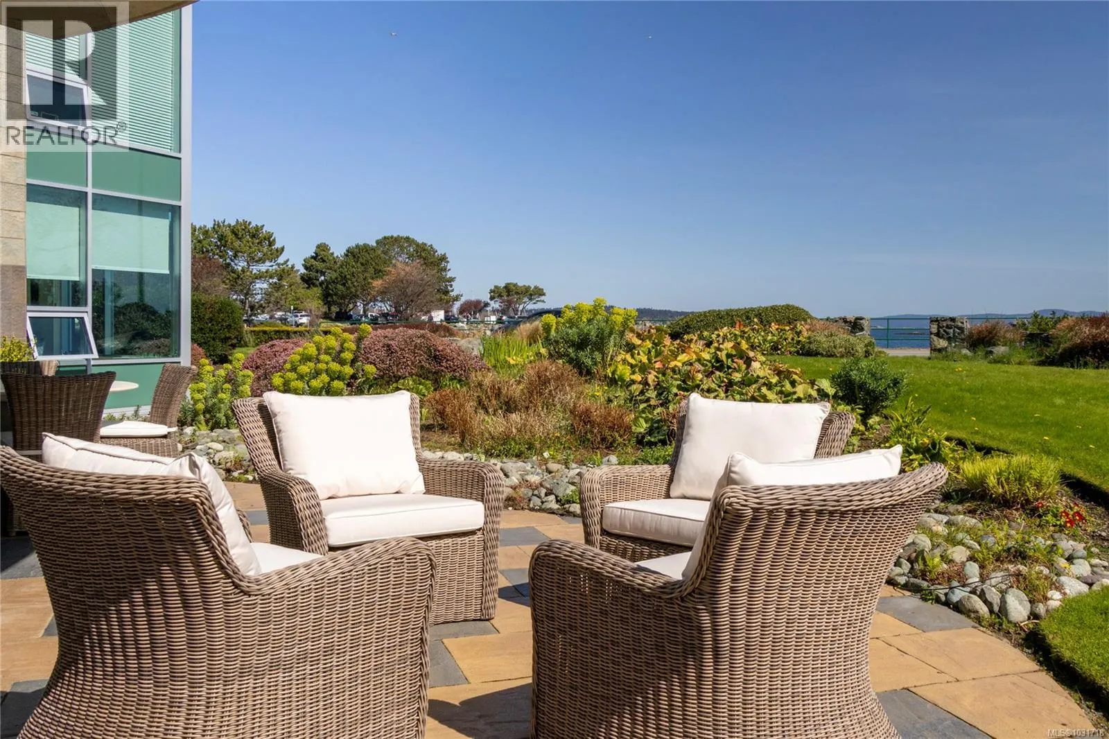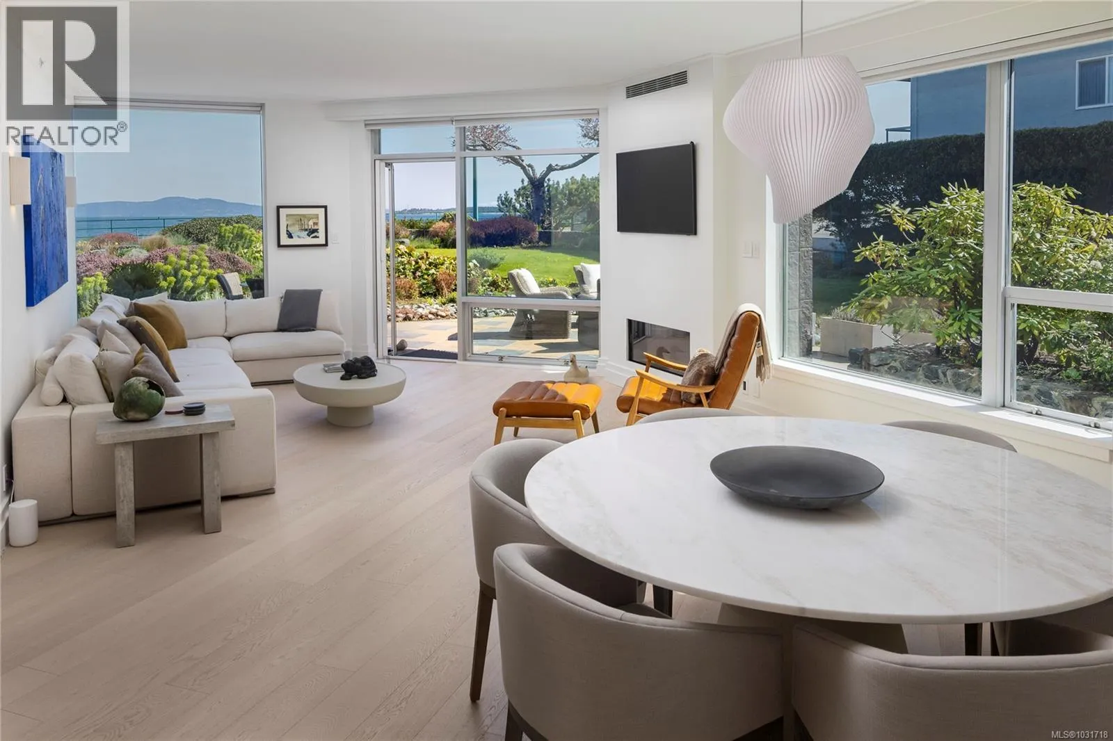Discover this stunning garden-level home situated on the waterfront in Oak Bay offering unobstructed views of the ocean and Mount Baker. This newly renovated home boasts an open floor plan of over 1600 square feet with 9-foot ceilings, natural stone counters, upscale appliances, including subzero, and Wolfe. This layout features beautiful hardwood floors and two large bedrooms with ensuite washrooms. The building is concrete with a slate tile exterior, concrete, party walls, and a floor in floor radiant hot water heating. Visit Marcâs website for more photos and floor plan or email marc@owen-flood.com (id:27476)